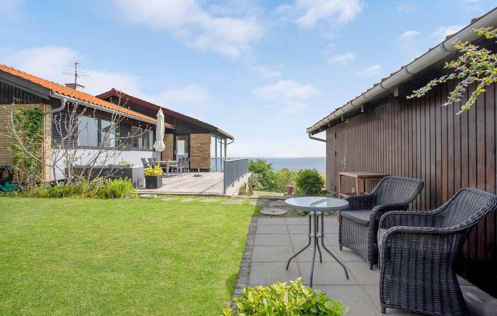 Til huset hører en stor altan med morgensol og havudsigt - det perfekte sted til morgenmaden og dagens første kop kaffe. Derudover har I glæde af en stor træterrasse med havemøbler, en grill til hyggelige grillaftener og selvfølgelig masser af havudsigt. Den dejlige, store have byder på masser af plads til leg og aktivitet.