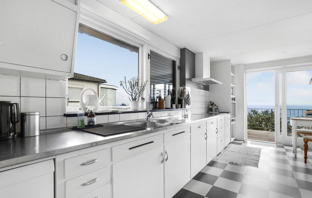 Husets hjerte er den meget store og smagfuldt indrettede opholdsstue. Her kan I flade ud i komfortable møbler, se film, høre musik eller radio og sidde ved spisepladsen og nyde jeres feriemåltider - alt sammen med en storslået havudsigt gennem de store vinduer. I det flotte køkken med gulvvarme og havudsigt er der rigeligt med plads til, at mange gæster kan være i gang med madlavningen samtidigt. Der er også gulvvarme på badeværelset. I finder en vaskemaskine i kælderen. Huset er miljøvenligt opvarmet med jordvarme.