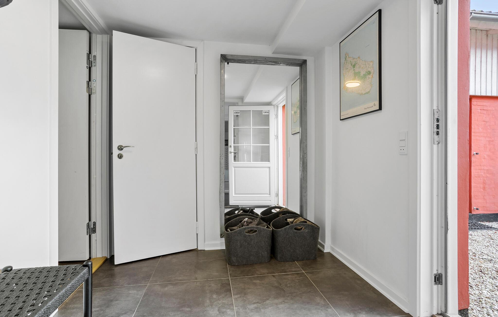 Fra stuen er der også udgang til den hyggelige, grønne grund, hvor I har jeres egen overdækkede terrasse med havemøbler og grill. Her kan I få mange timer til at gå med at slappe dag oven på dagens mange oplevelser, læse en god krimi eller nyde solnedgangen over et glas rødvin. Fra huset kan I gå direkte ned til et kendt sted for havørredfiskeri, som er i sæson i vinterhalvåret.