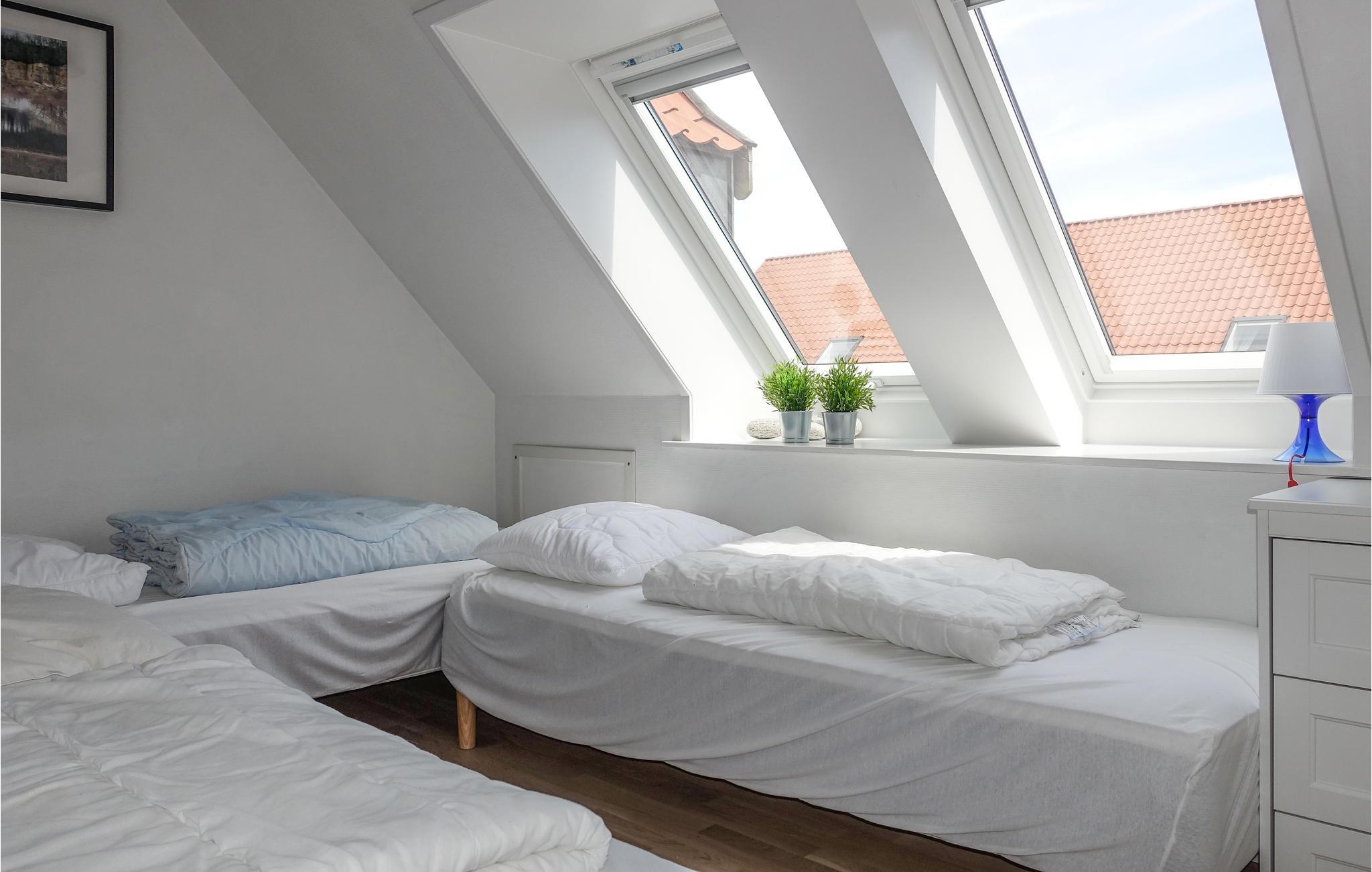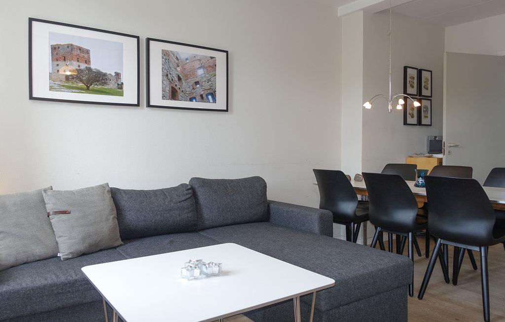 Flot ferielejlighed i Købmandsgården, hvor I får en høj beliggenhed i hjertet af Gudhjem samt adgang til fælles udendørspool.