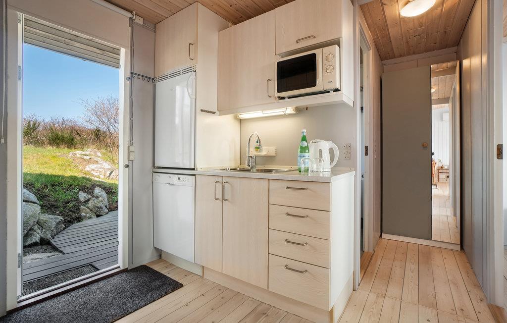 I det idylliske 'Mølleparken' med flere feriehuse og lejligheder tilknyttet, ligger dette hyggelige og godt beliggende feriehus med udsigt til grønne områder, Gudhjems tage og Østersøen. Huset indeholder bl.a. en hyggelig kombineret spise- og opholdsstue samt en god terrasse, hvor mange feriestunder kan nydes i fredelige omgivelser. Det maleriske Gudhjem med de mange småbutikker, caféer samt stejle gader og stræder ligger indenfor gåafstand, ligesom havnen og klippekysten også giver mulighed for både vandreture og en sejltur til Christiansø.