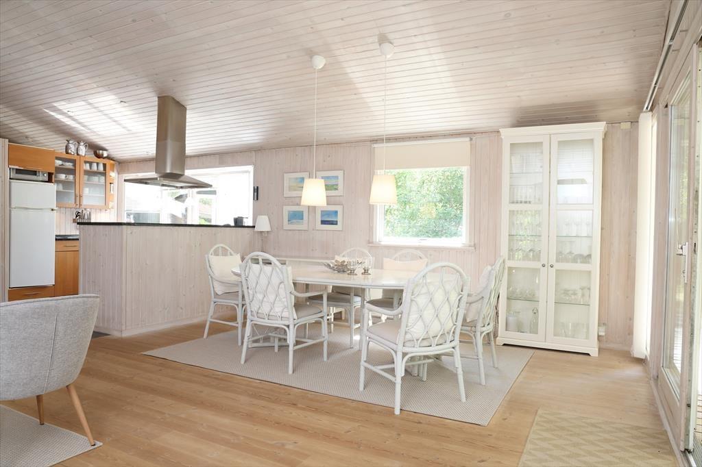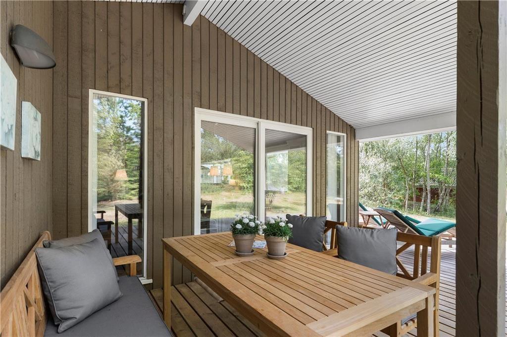 Åbent køkken med plads til hyggeligt samvær over madlavningen. Stue med brændeovn og udgang til terrasse, der dels er overdækket og dels har en skøn solrig åben afdeling. Stort badeværelse med brus og 3 dejlige soveværelser og et dejligt anneks. Vaskemaskinen er placeret i udhuset.
