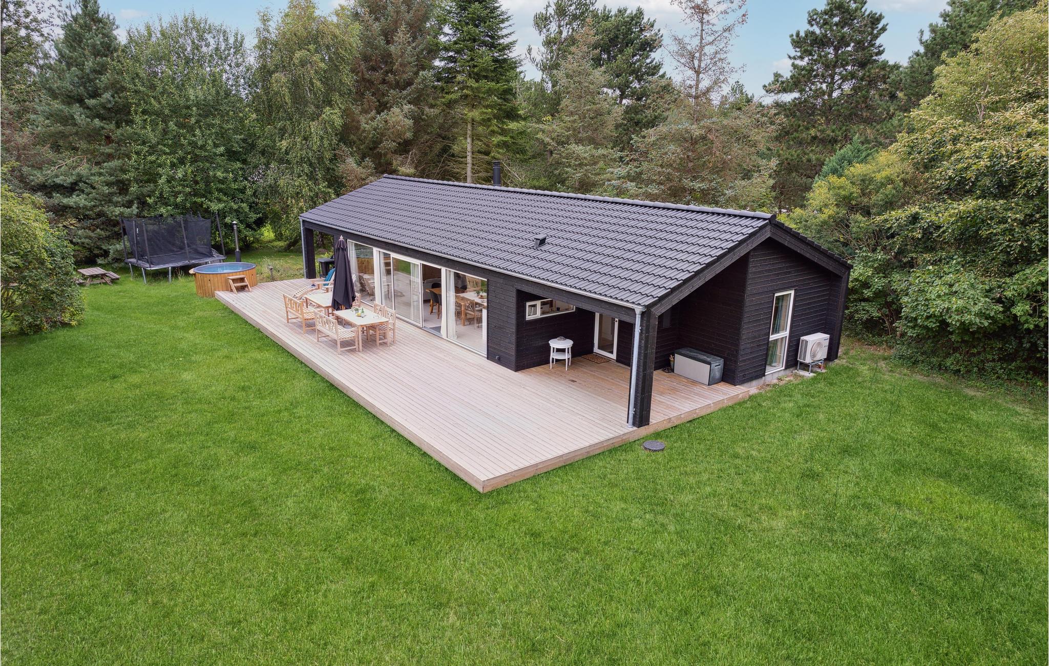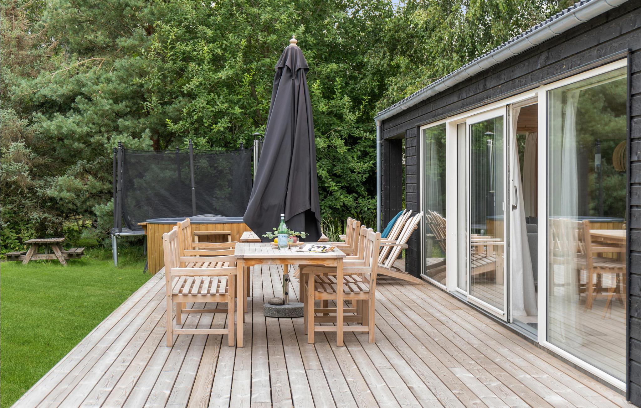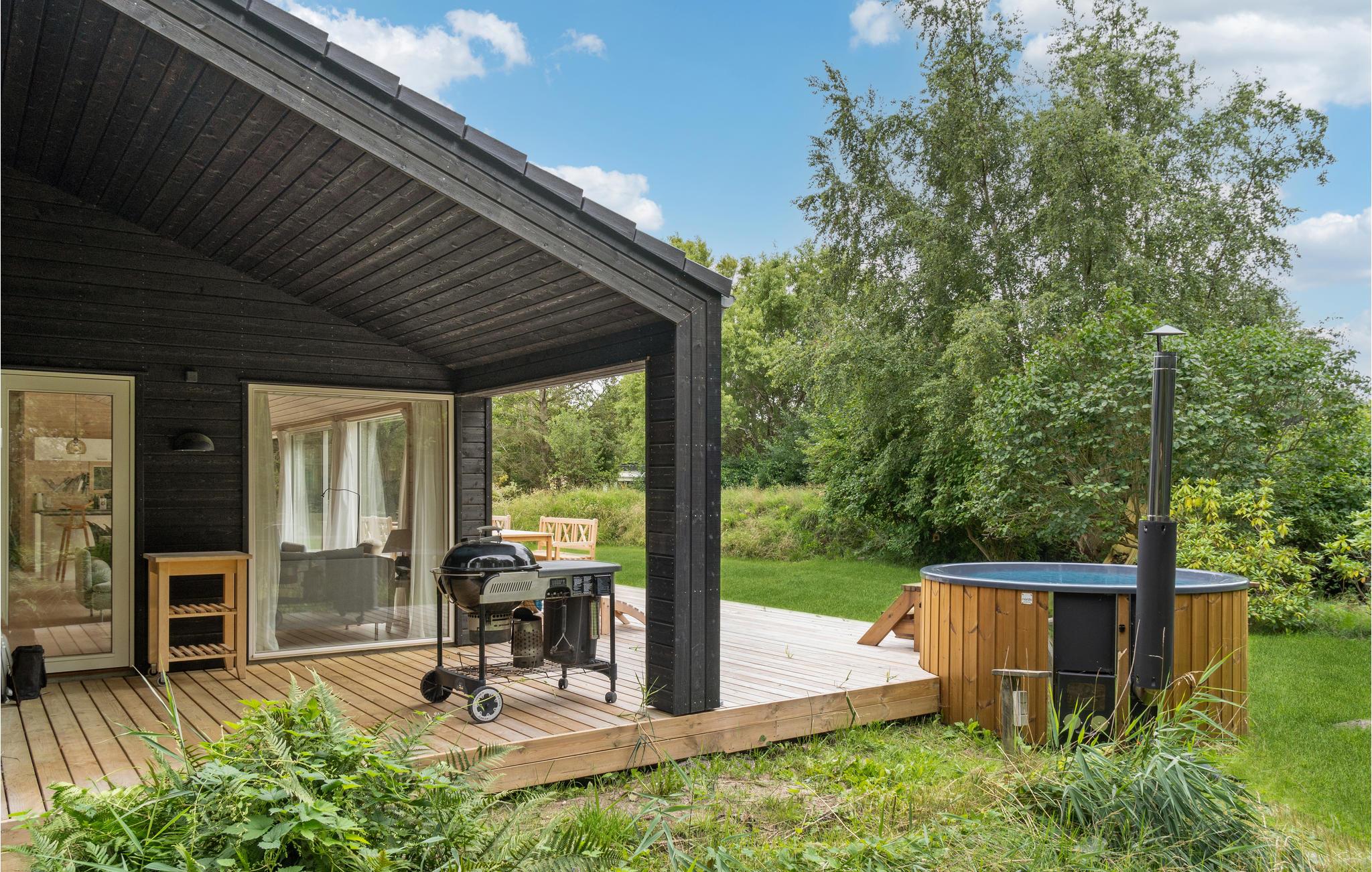 Moderne feriehus nær Sejerøbugten med sauna, boblebad og stor terrasse for afslapning og samvær.
