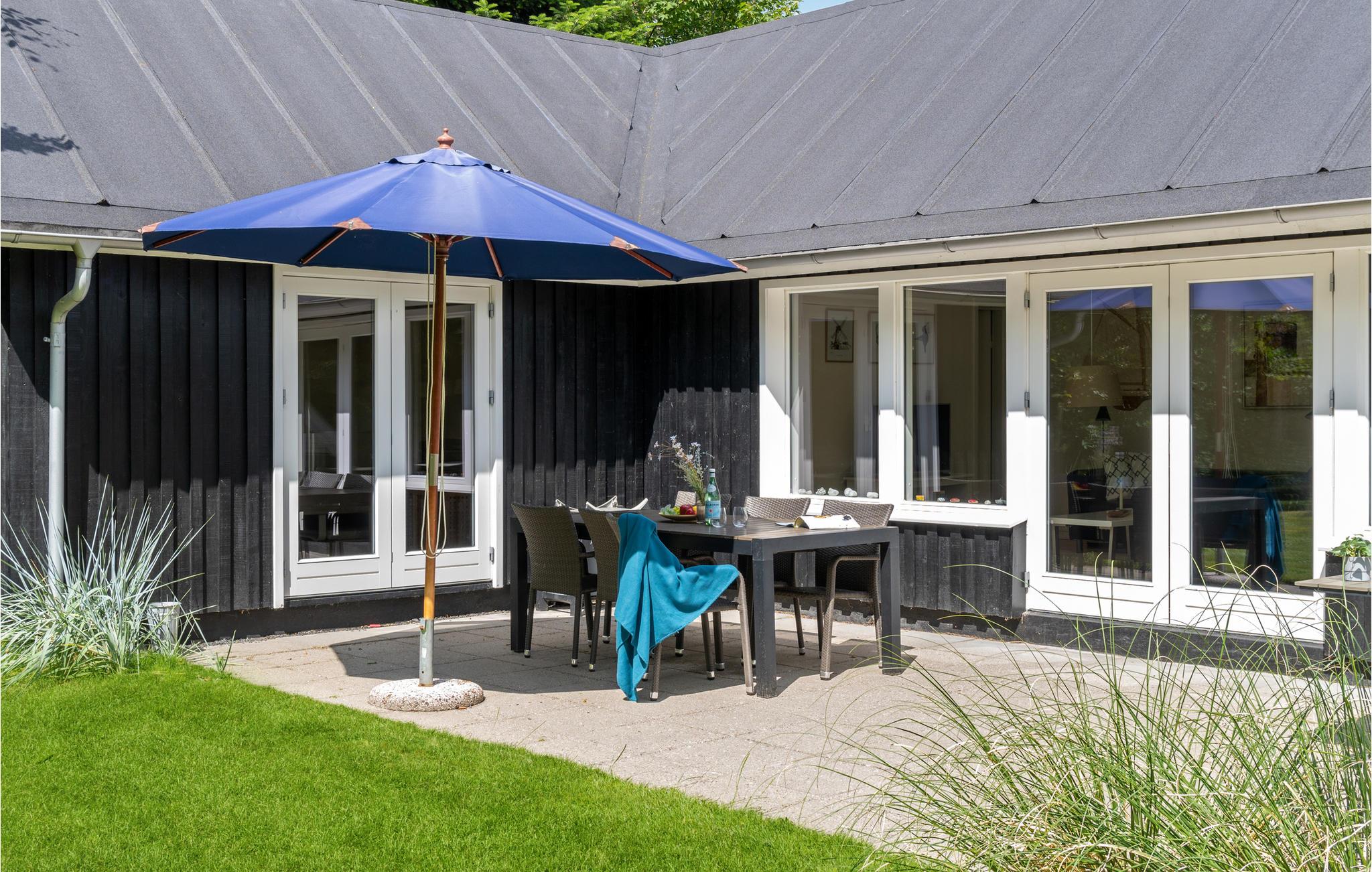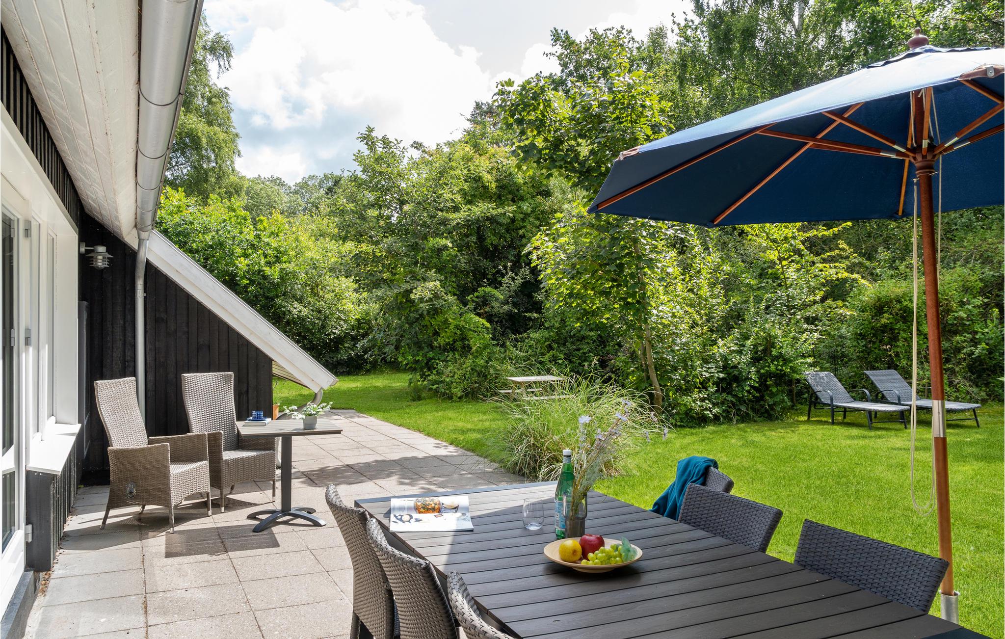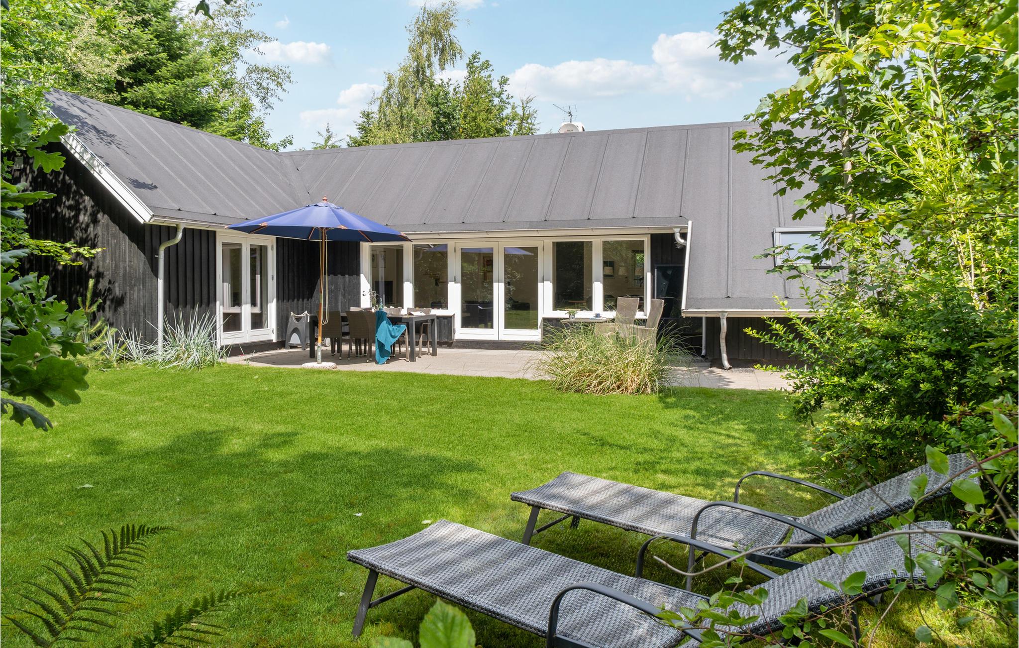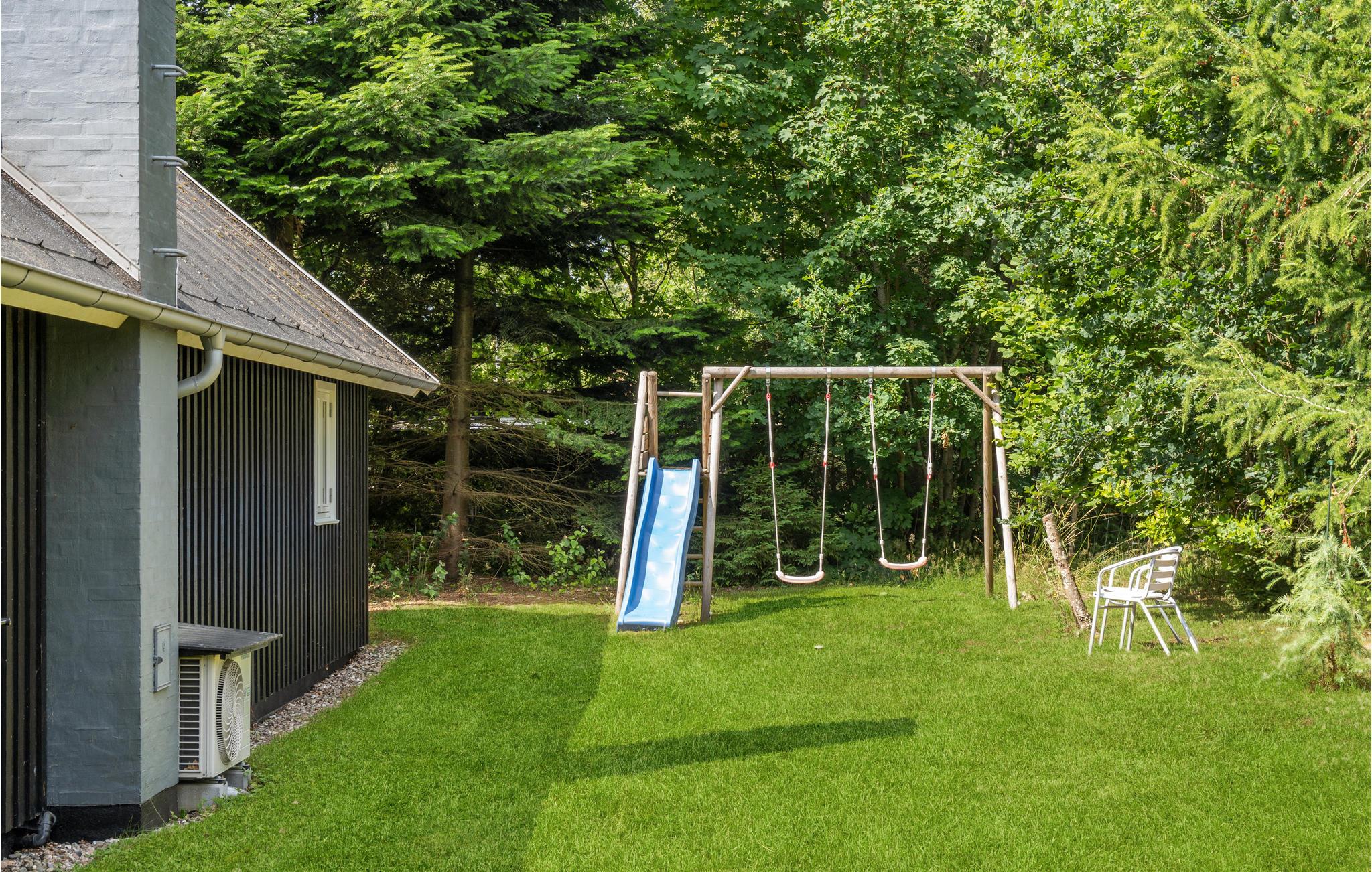 Læn jer tilbage på terrassen, hvor I sidder dejligt ud til den grønne grund, som er omkranset af høje træer. Børnene kan have det sjovt på gyngerne og rutsjebanen. Tænd op i grillen på de lune sommerdage og dæk op til en dejlig middag udendørs.