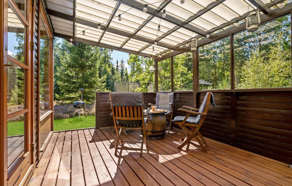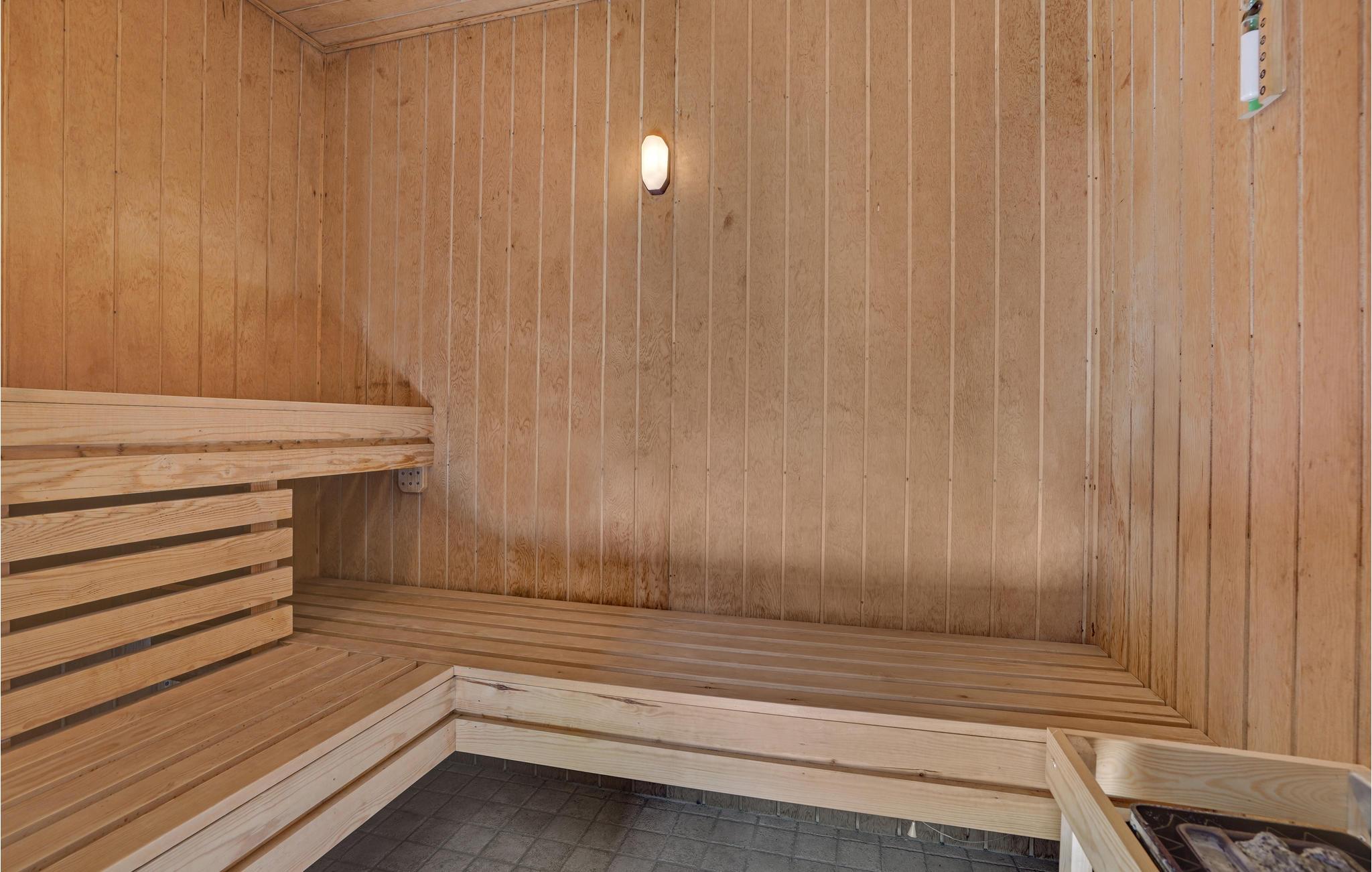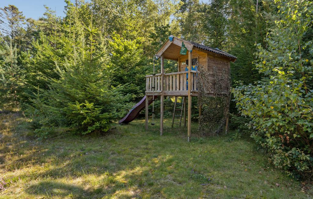 Træd ind i det hyggelige træhus, hvor I straks vil føle jer hjemme. Her kan I slappe af og nyde ferien. I den åbne stue kan I slænge jer i sofaen og lade brændeovnen varme jer, mens I ser en sjov film. I kan også lave mad, spise og lege sammen. En sauna fuldender husets tilbud, og byder på ren afslapning. Tilbring også mange skønne timer i haven. Nyd en kølig drink på den overdækkede terrasse, eller grill skumfiduser over bålfadet. Jeres børn kan også slå sig løs på trampolinen og de andre legeredskaber på legepladsen.