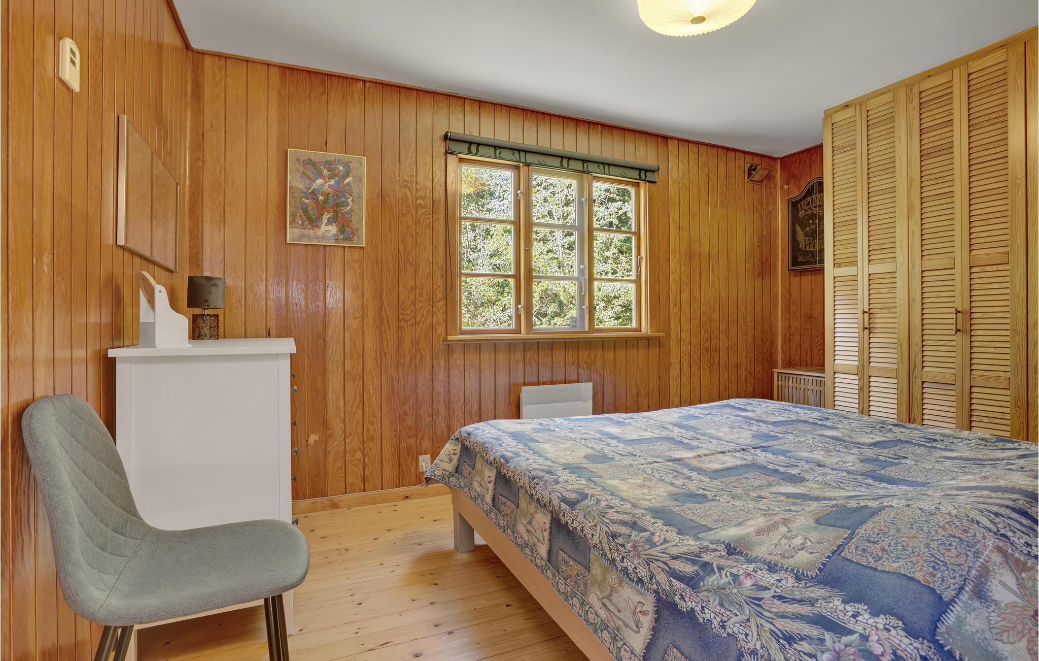 Hyggeligt træhus med sauna, tæt på børnevenlig strand, legeplads og naturskønne omgivelser i Gudmindrup.