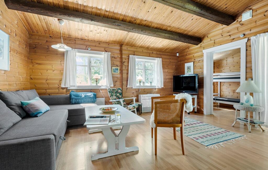 Velkommen til et varmt og charmerende sommerhus, som tilmed er barrierefrit. Boligen er indrettet med træfarvede vægge, hvilket skaber en helt særlig ro. Opholdsområdet består af et komfortabelt sofahjørne, hvor der hersker en hyggelig atmosfære. Den nordiske stil, lysindfaldet og stemningen gør, at alle nemt kommer ned i gear. Dæk op til måltiderne i det åbne spiseområde, som er direkte forbundet med det moderne køkken, hvor I kan tilberede dagens retter i ro og mag.