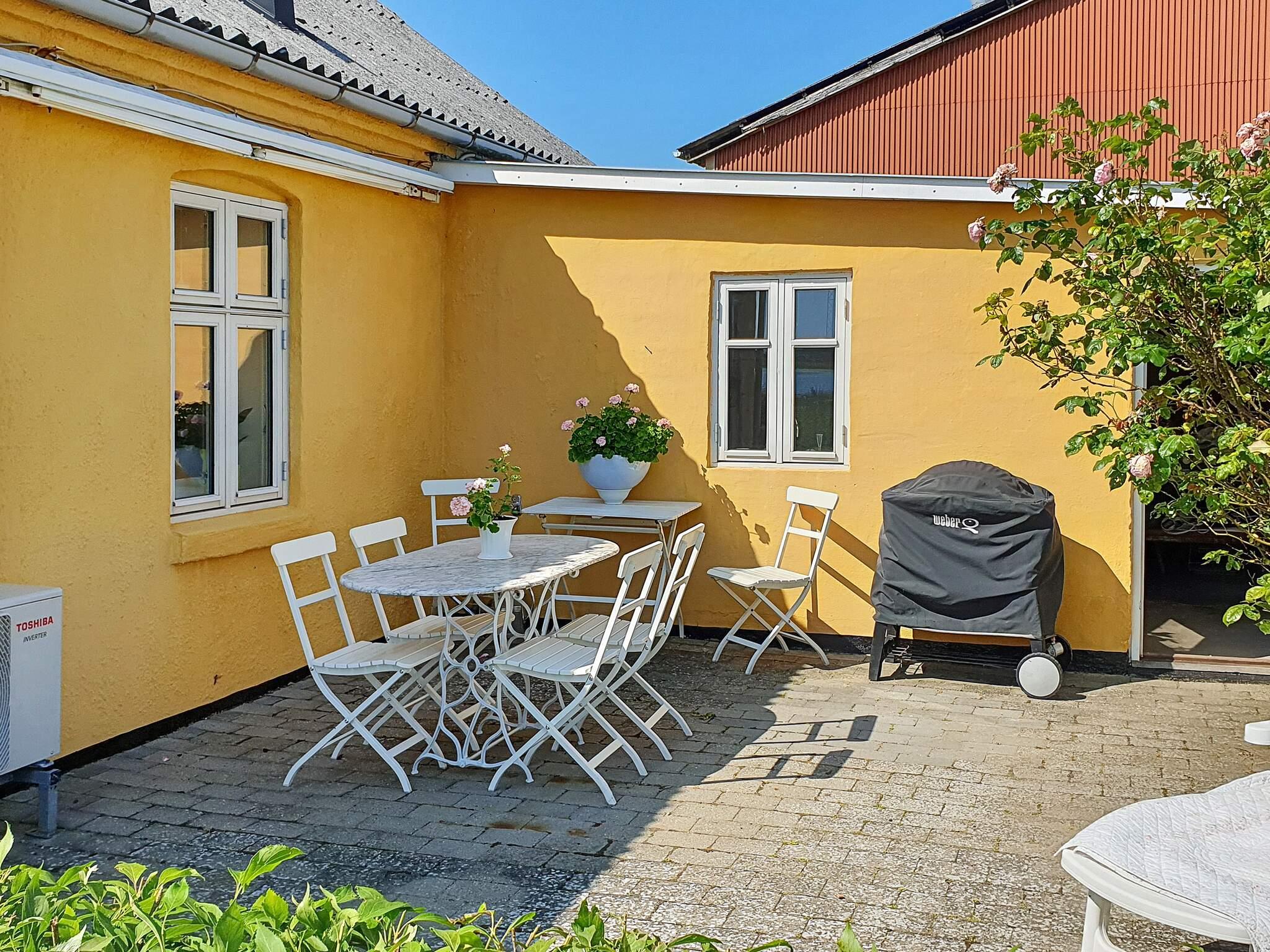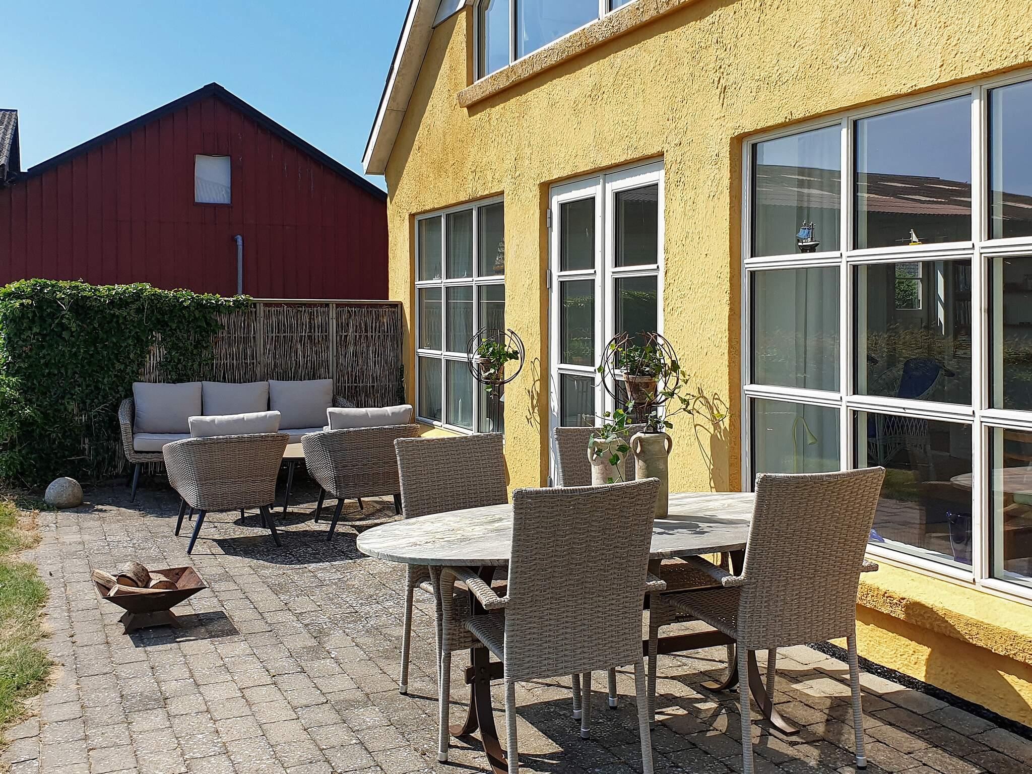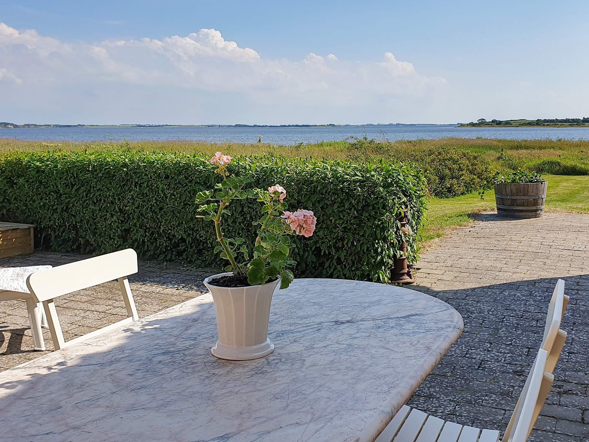 Udendørs er der flere gode kroge til afslapning og udsigt til fjorden. Der er opsat markise og lys, så du kan nyde det gode uderum hele dagen. Til de mindste findes sandkasse ved terrassen, barneseng og barnestol.