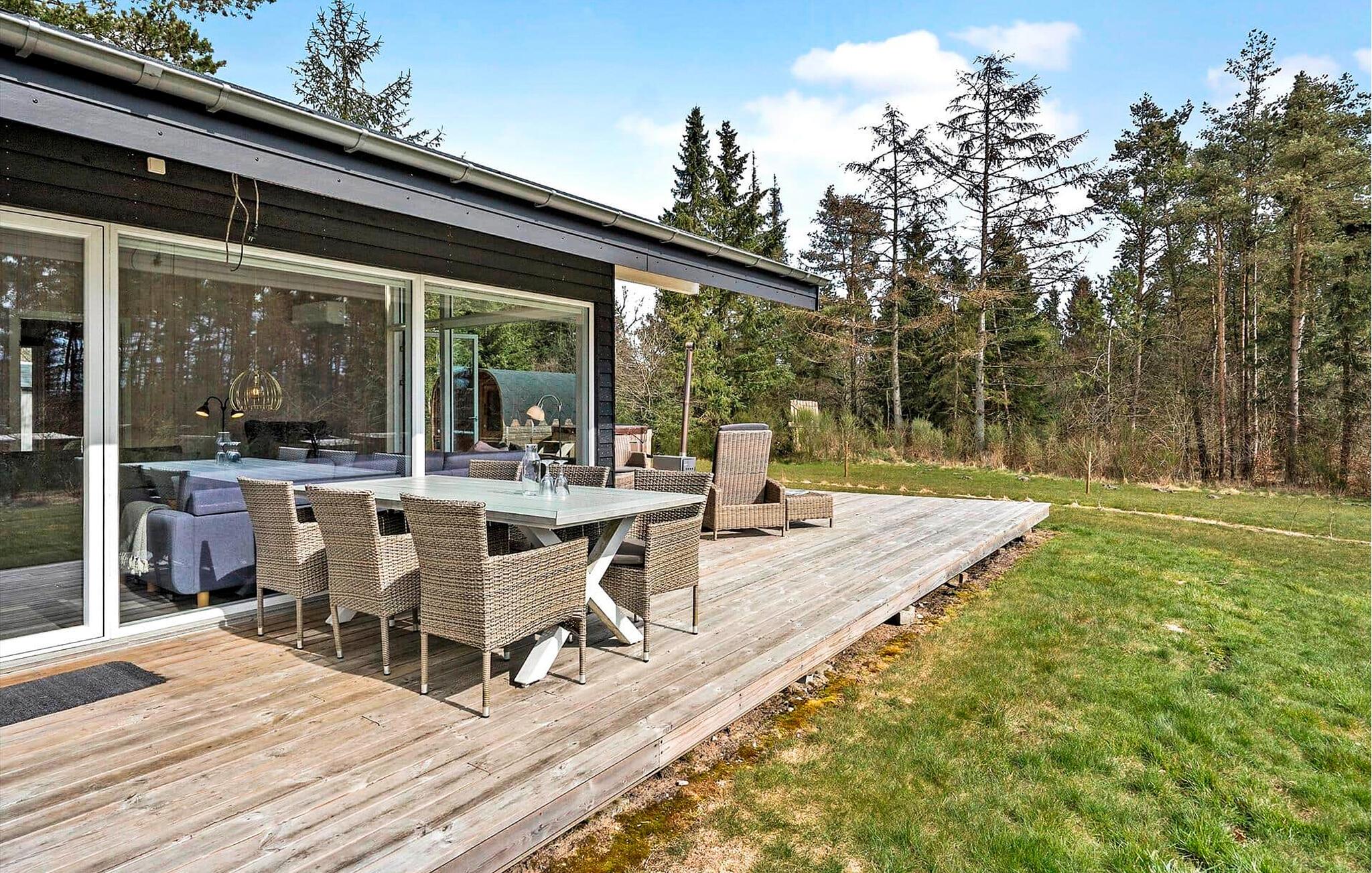 Glæd jer til wellness og komfort i dette moderne sommerhus med en smuk beliggenhed.