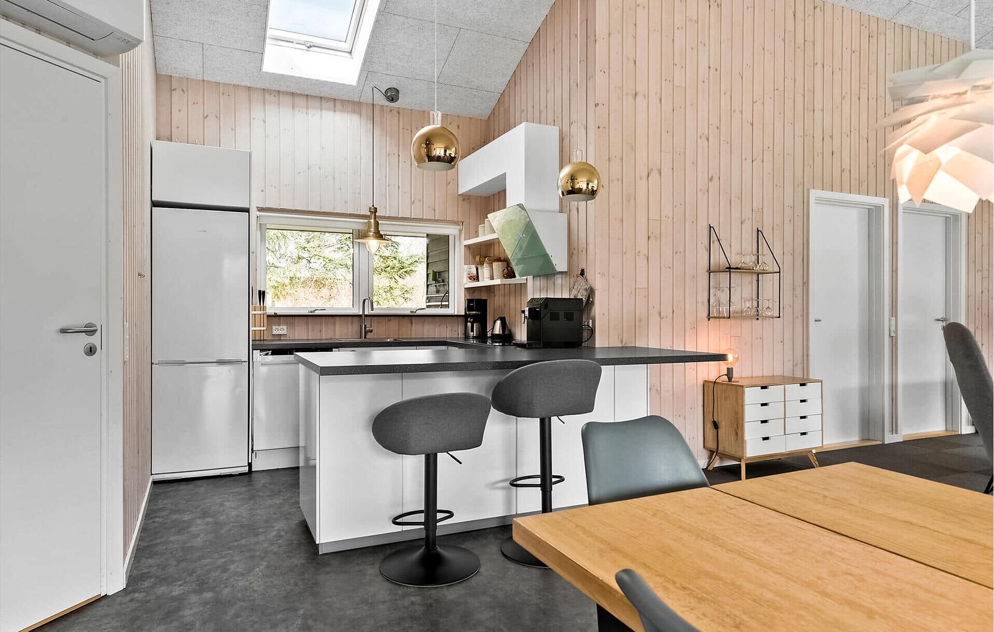 Oplev ren afslapning i de lyse værelser i dette smagfuldt indrettede sommerhus. Tilbered jeres livretter i det åbne køkken og nyd dem i den stilfulde atmosfære ved det store spisebord. Afslut dagen i den hyggelige opholdsstue med et glas vin eller spændende brætspil.