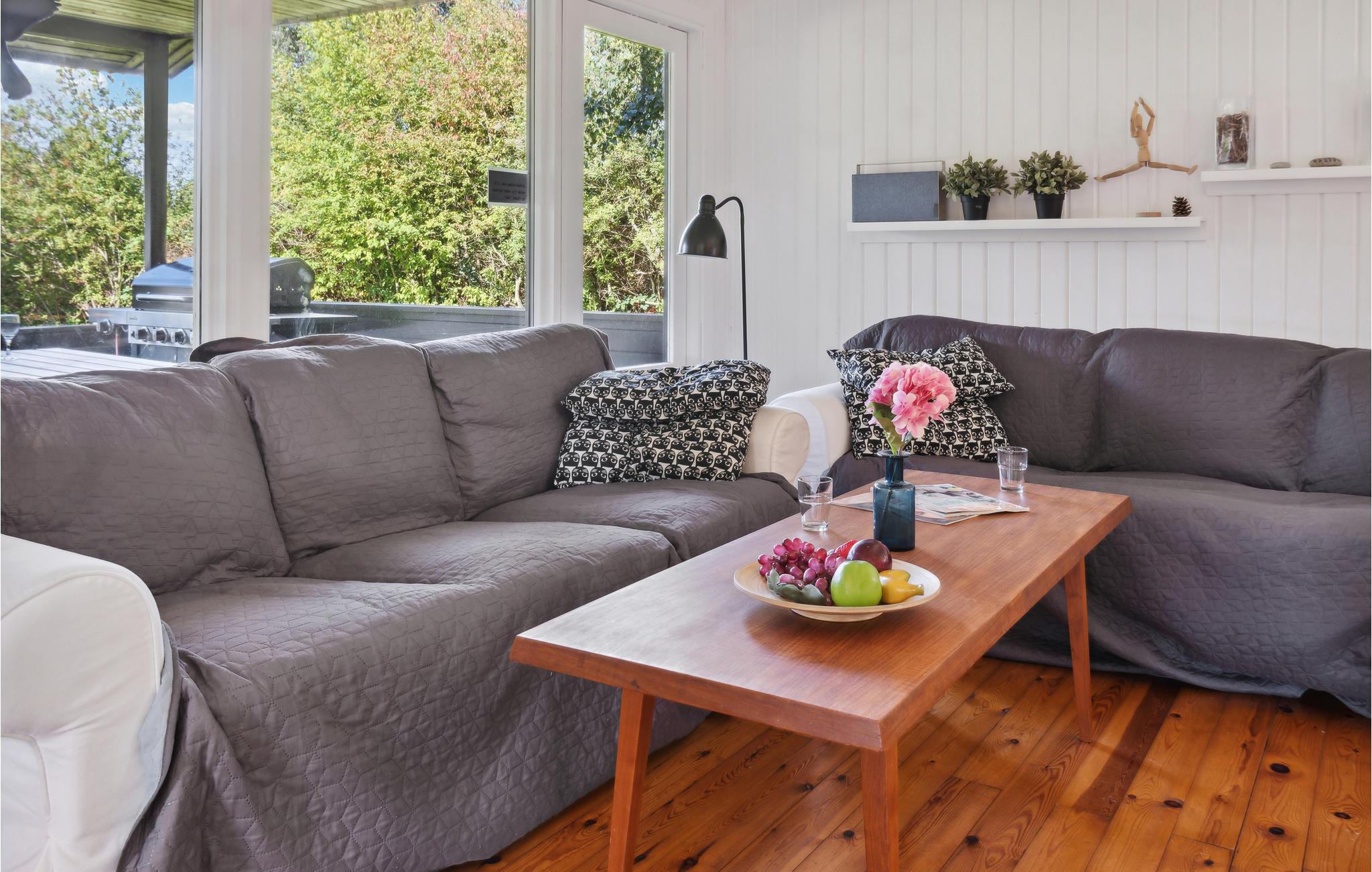 Velkommen til en ferie med landidyl, smuk natur, badedage, fisketure og spændende udflugter. Her kan I få jeres udgangpunkt i dette dejlige hus, som ligger på en smuk, velholdt grund. Huset er hjemligt og emmer af feriestemning og charmerende detaljer. Fra sofagruppen har I en skøn udsigt over haven.