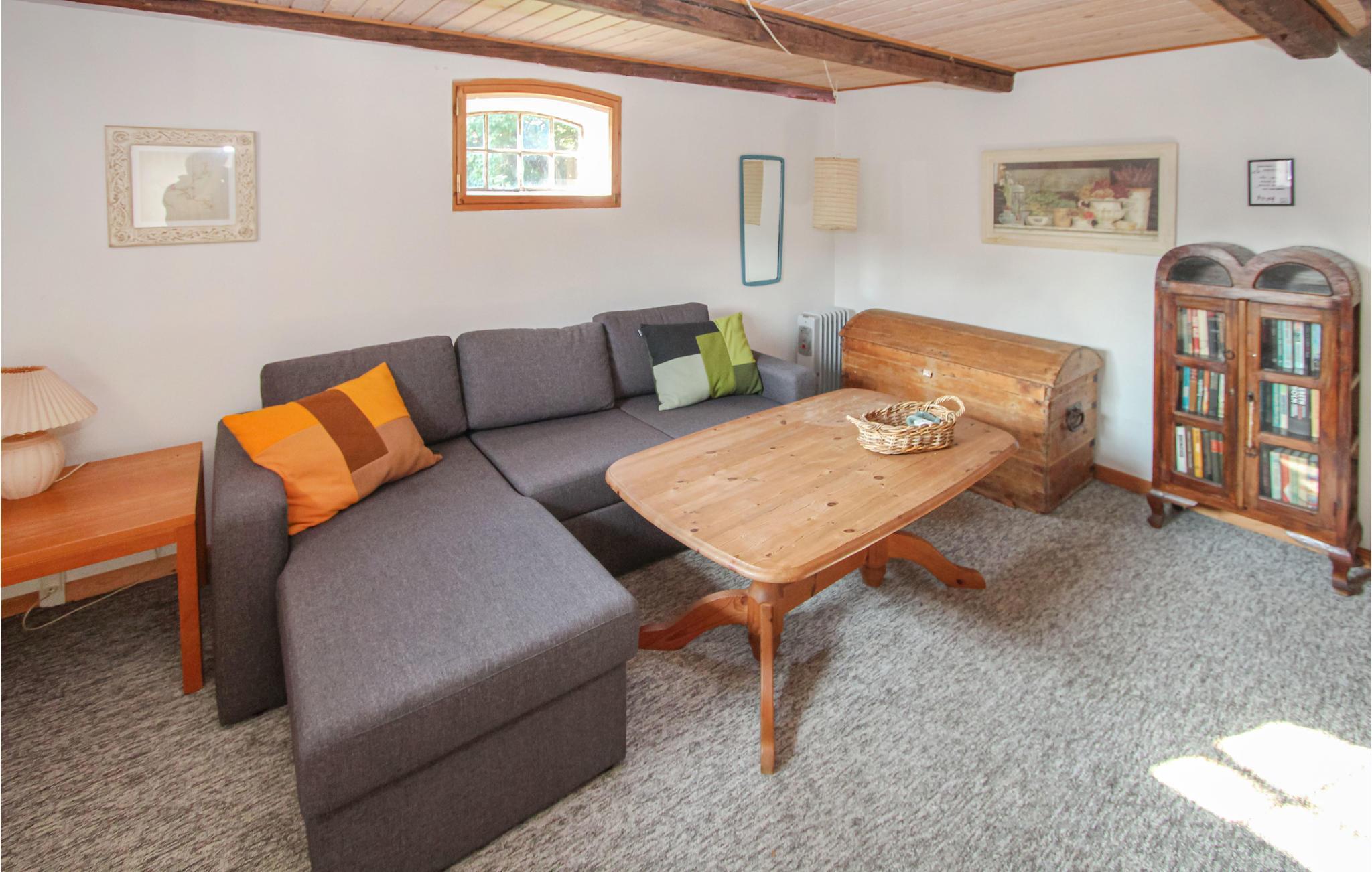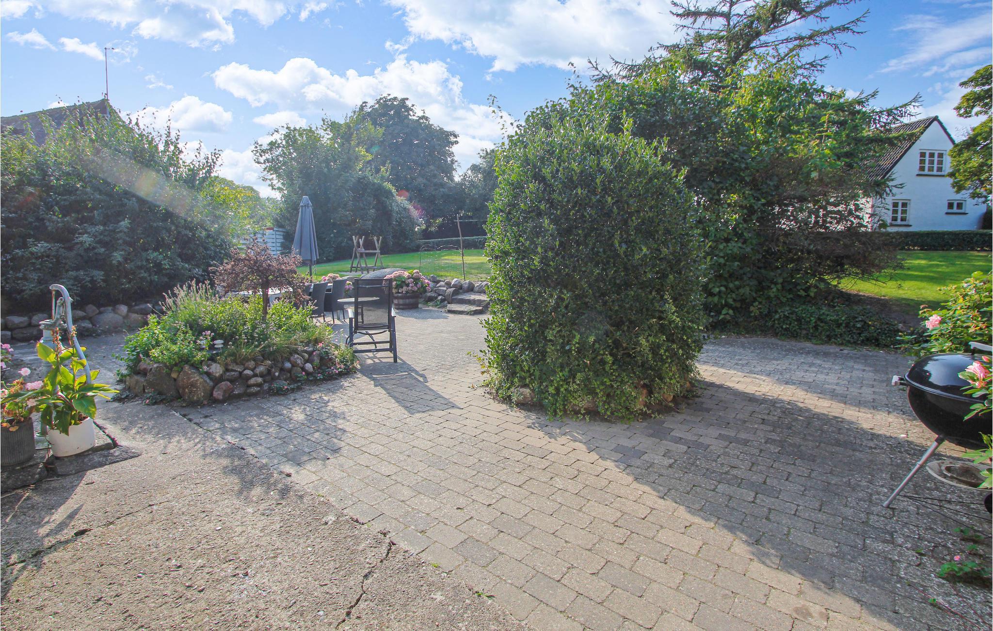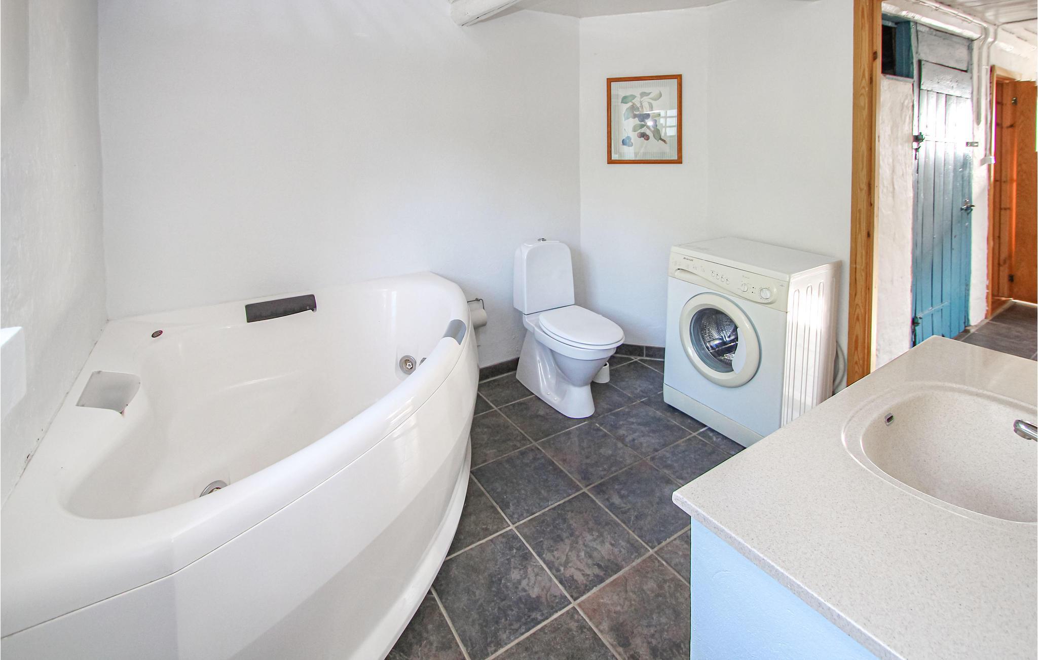 Det indbydende sommerhus med stråtag byder jer velkommen på en smuk beliggenhed ved landsbyens dam. Husets er indrettet med smagfuldt design, hvor moderne og traditionelle elementer indgår i en vellykket blanding. En familie med børn vil føle sig hjemme her, og jeres firbenede ven kan også komme med på ferie. Nyd måltiderne sammen og de dejlige aftener med de knitrende flammer i brændeovnen.