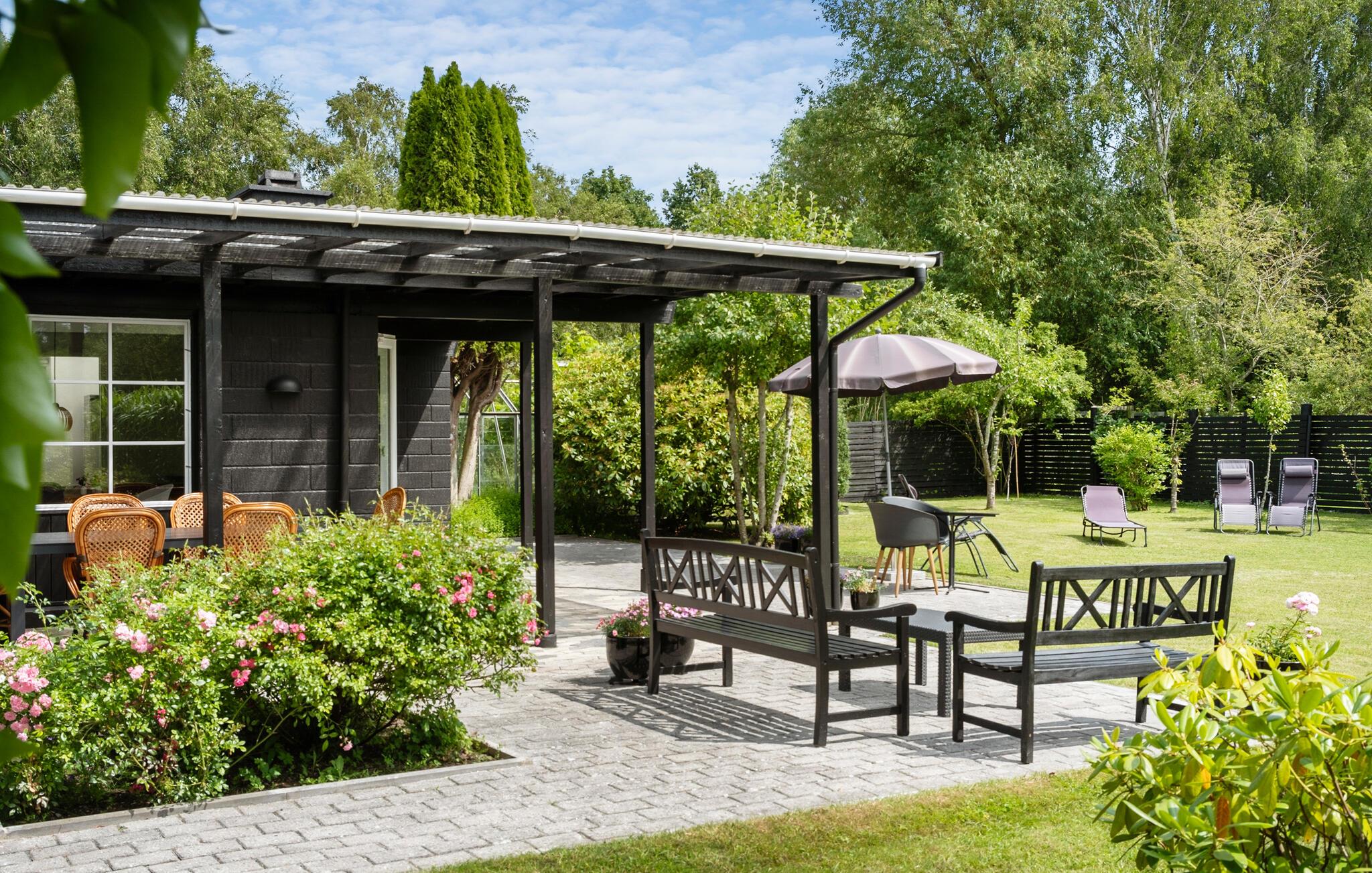 En sjælden perle venter jer udenfor: en smuk, stor og fuldt indhegnet have, som skaber trygge rammer for alle. Her kan I slappe af i solen, spise under den overdækkede terrasse, grille og nyde de lange lyse sommeraftener. Uanset om I søger sol, skygge eller leg udenfor, giver haven mulighed for at trække sig tilbage eller være aktiv i det fri.