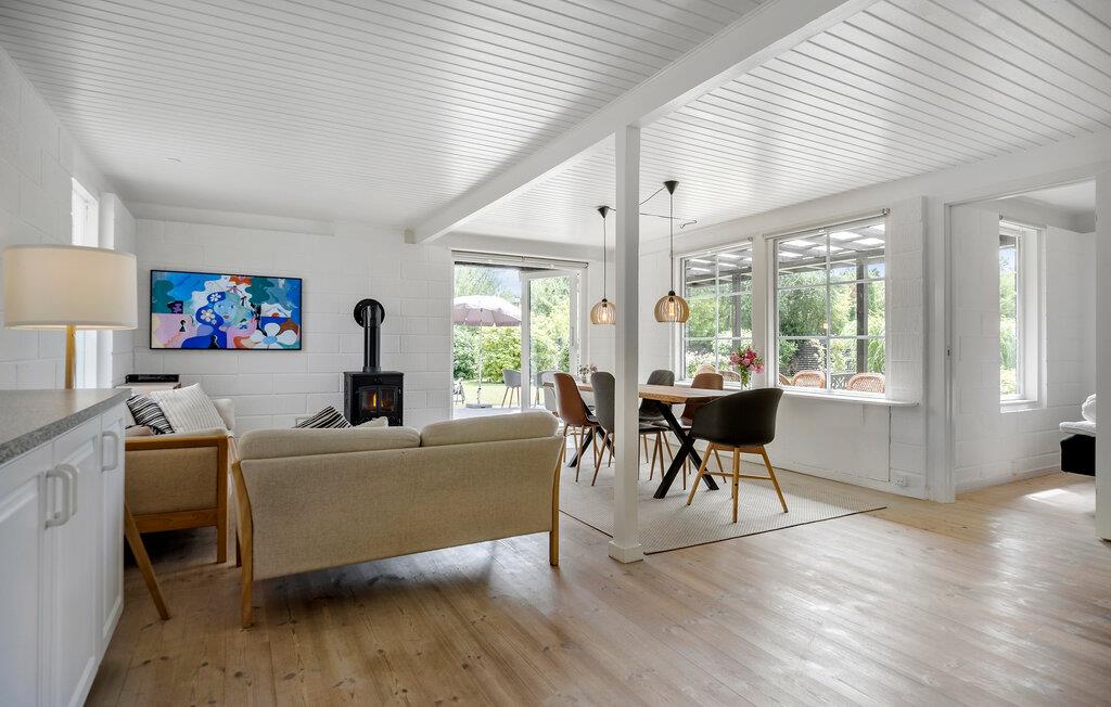 Dette feriehus er ideelt for både familier, vennegrupper og flere generationer, der ønsker at nyde ferien sammen uden at gå på kompromis med privatliv og komfort. Det lyst og smagfuldt indrettede hus byder på en afslappet og indbydende stemning med god plads til samvær og fordybelse. Den rummelige stue med brændeovn indbyder til lange aftener med spil, gode samtaler eller en god bog i ro og mag. Køkkenet er fuldt udstyret og fungerer som husets naturlige samlingspunkt, hvor I kan lave mad sammen eller lade en af jer forkæle resten af selskabet. Husets indretning gør det nemt at dele ferieboligen med flere voksne, hvad end det er bedsteforældre og børnebørn, tre vennepar eller en lille gruppe, der ønsker en base tæt på natur og oplevelser.