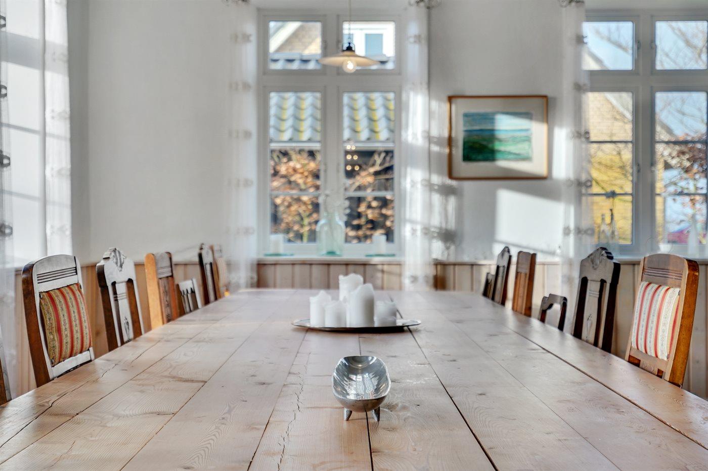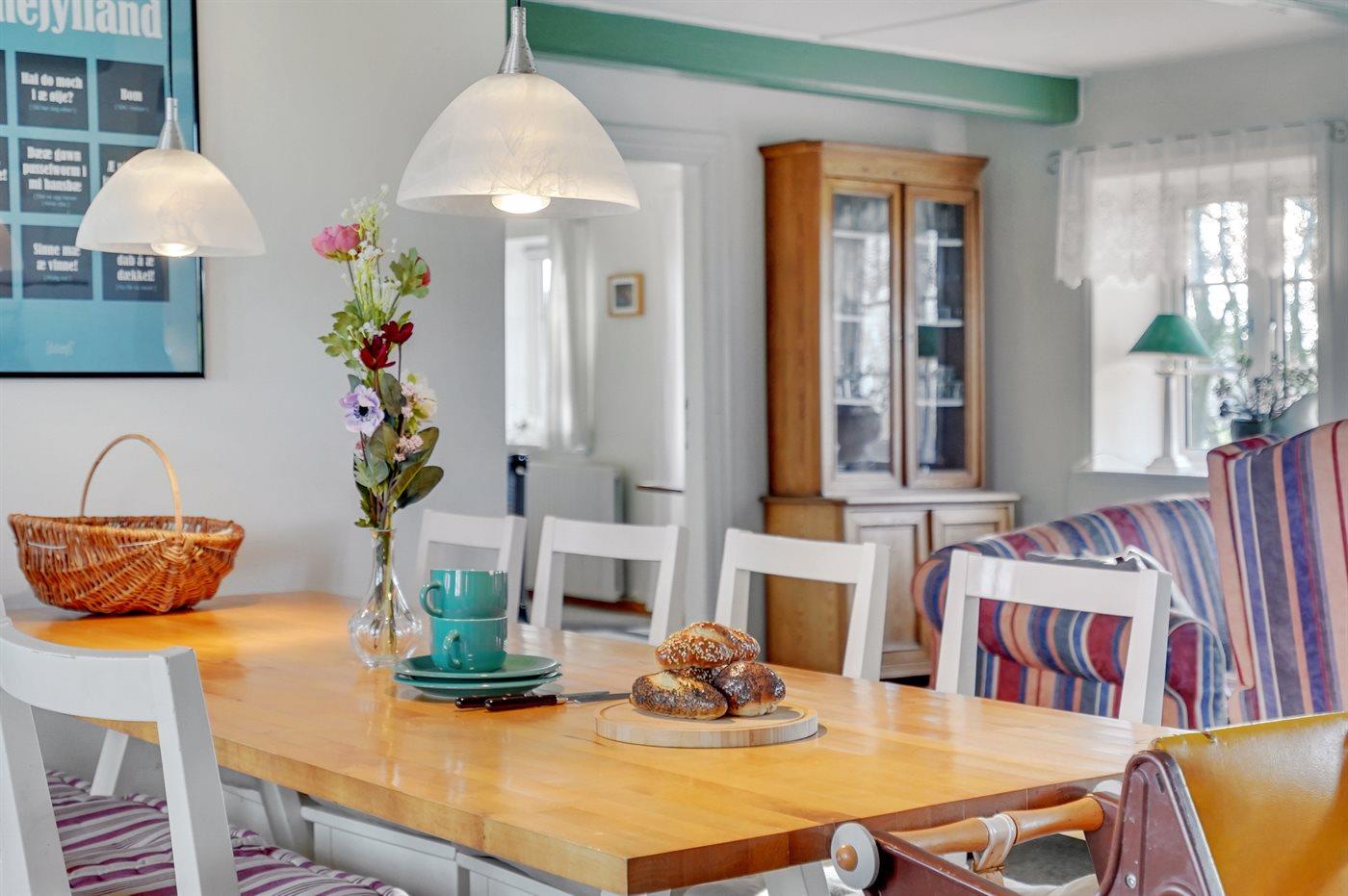 Ferieboligen er på 240 m², er i 2 plan, og er bygget i 1863. Det er tilladt at medbringe 2 husdyr. Ferieboligen er udstyret med energibesparende varmepumpe. Der er gulvvarme i entréen. Der er gulvvarme i gangen. Ferieboligen har vaskemaskine. Tørretumbler. Frysekapacitet på 30 liter. Der er desuden brændeovn. Til de små er der 3 stk. barnestole. Puslebord.