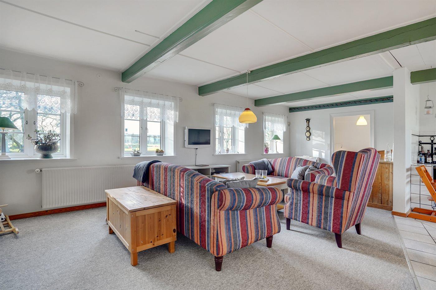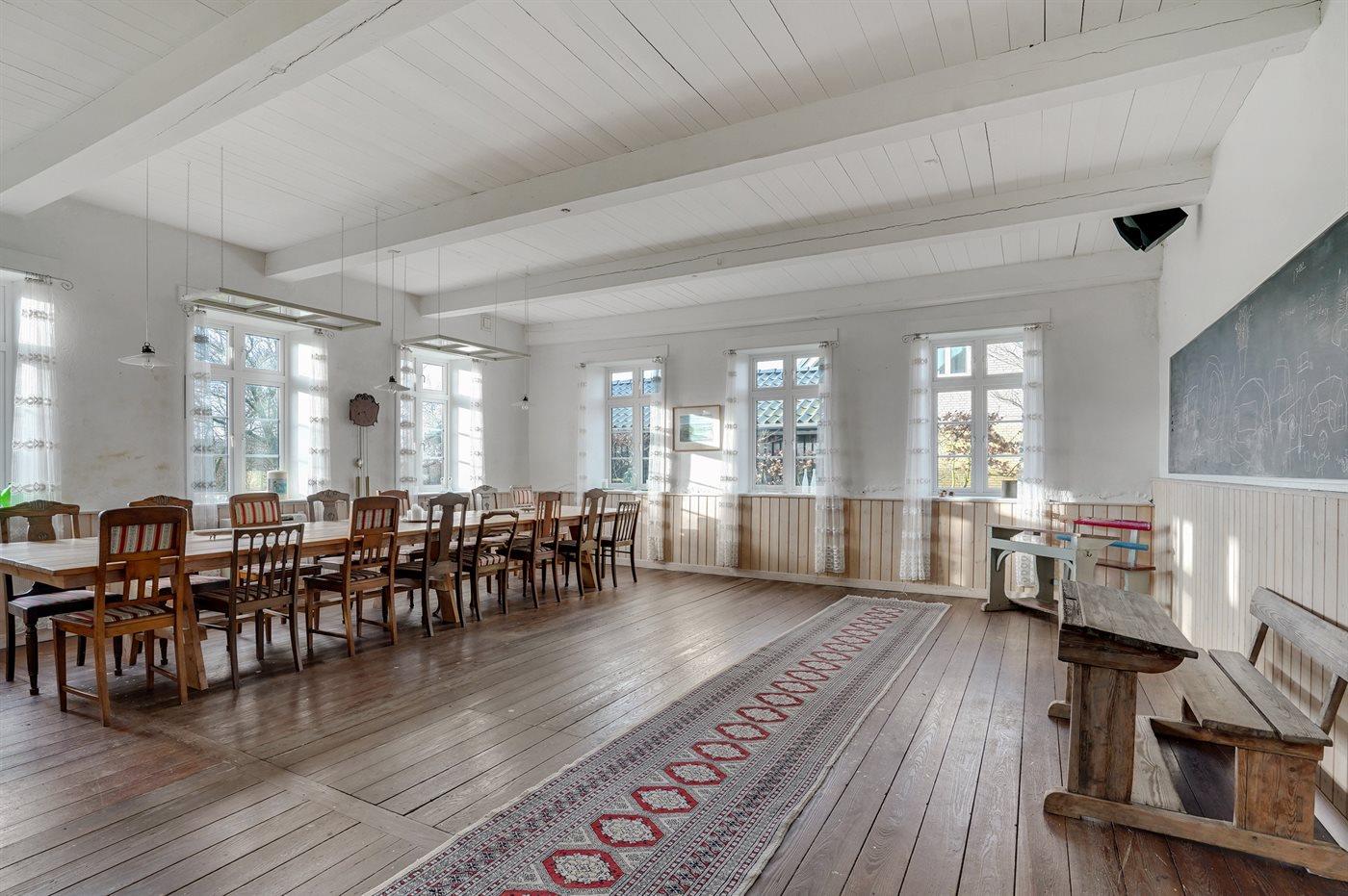 Skønt og rummeligt sommerhus beliggende i landlige og naturskønne omgivelser nær vandet. Huset har tidligere fungeret som skole, og omklædningsrummet og klasselokalet er bevaret og kan bruges.