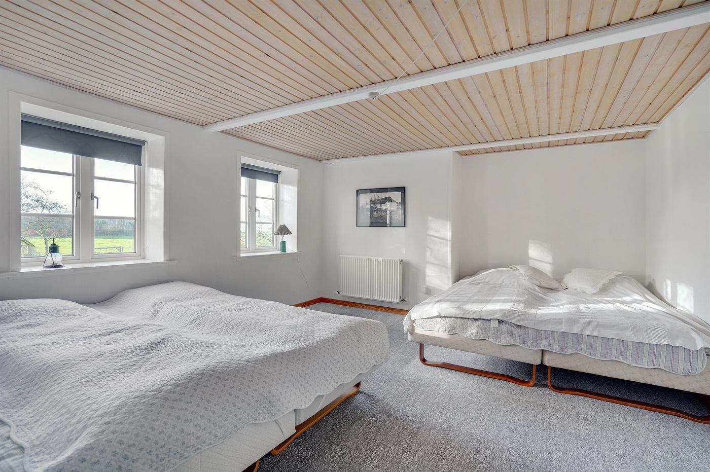 Der er i alt 3 soveværelser. Sovepladserne fordeler sig på: 8 sovepladser i dobbeltsenge. 4 sovepladser i køjesenge (junior). Derudover er der 1 stk. barneseng.