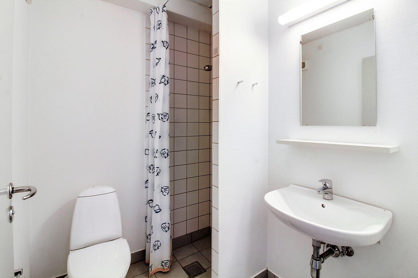 Der er 2 badeværelser med bruser og 2 toiletter. Der er gulvvarme på 1 badeværelse.