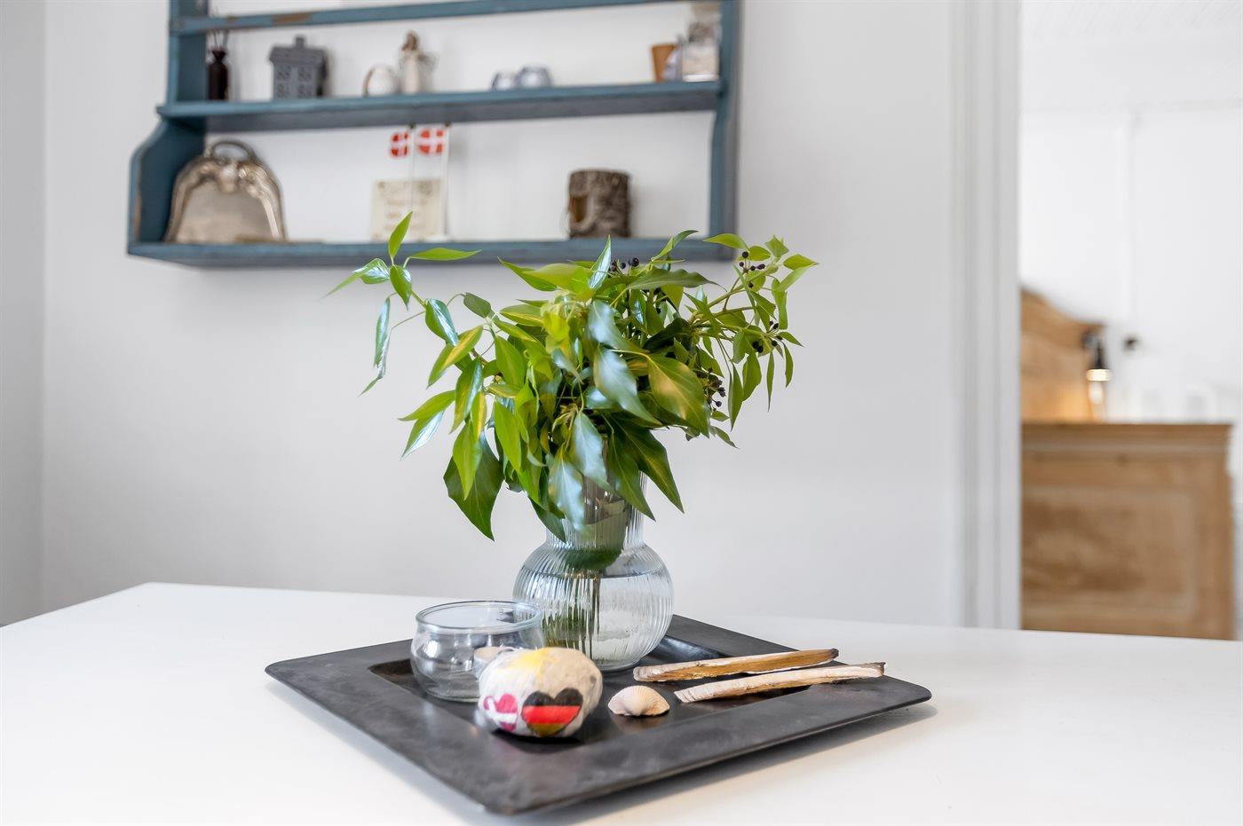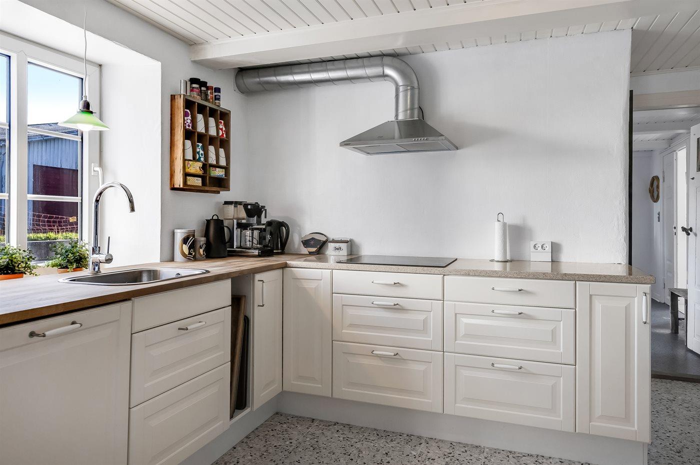 Køkkenet er udstyret med 1 køleskab. Der er 4 induktionskogeplader, varmluftovn, mikrobølgeovn samt opvaskemaskine.