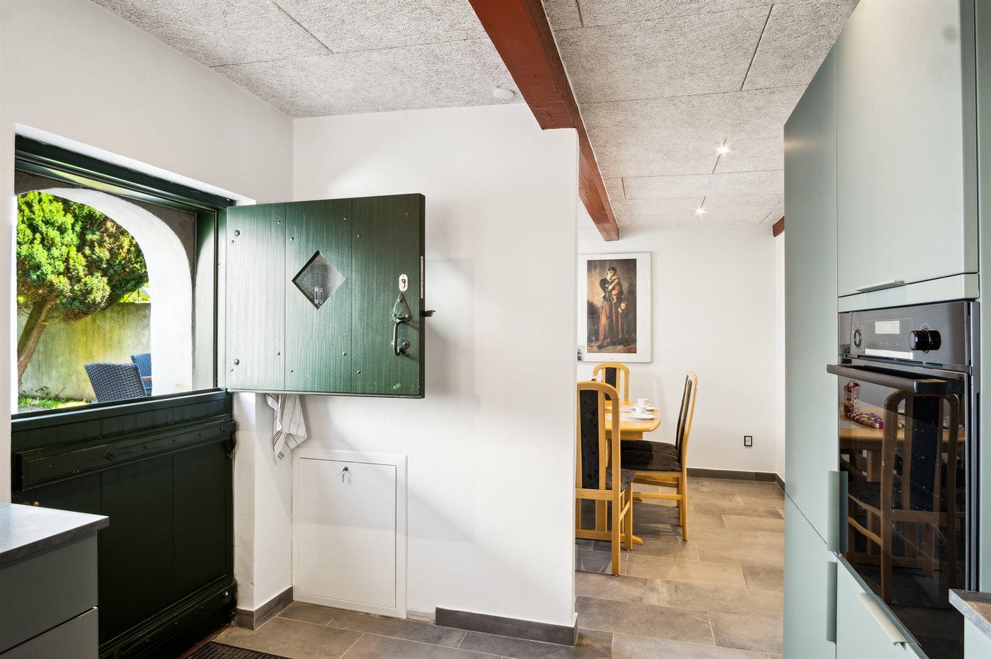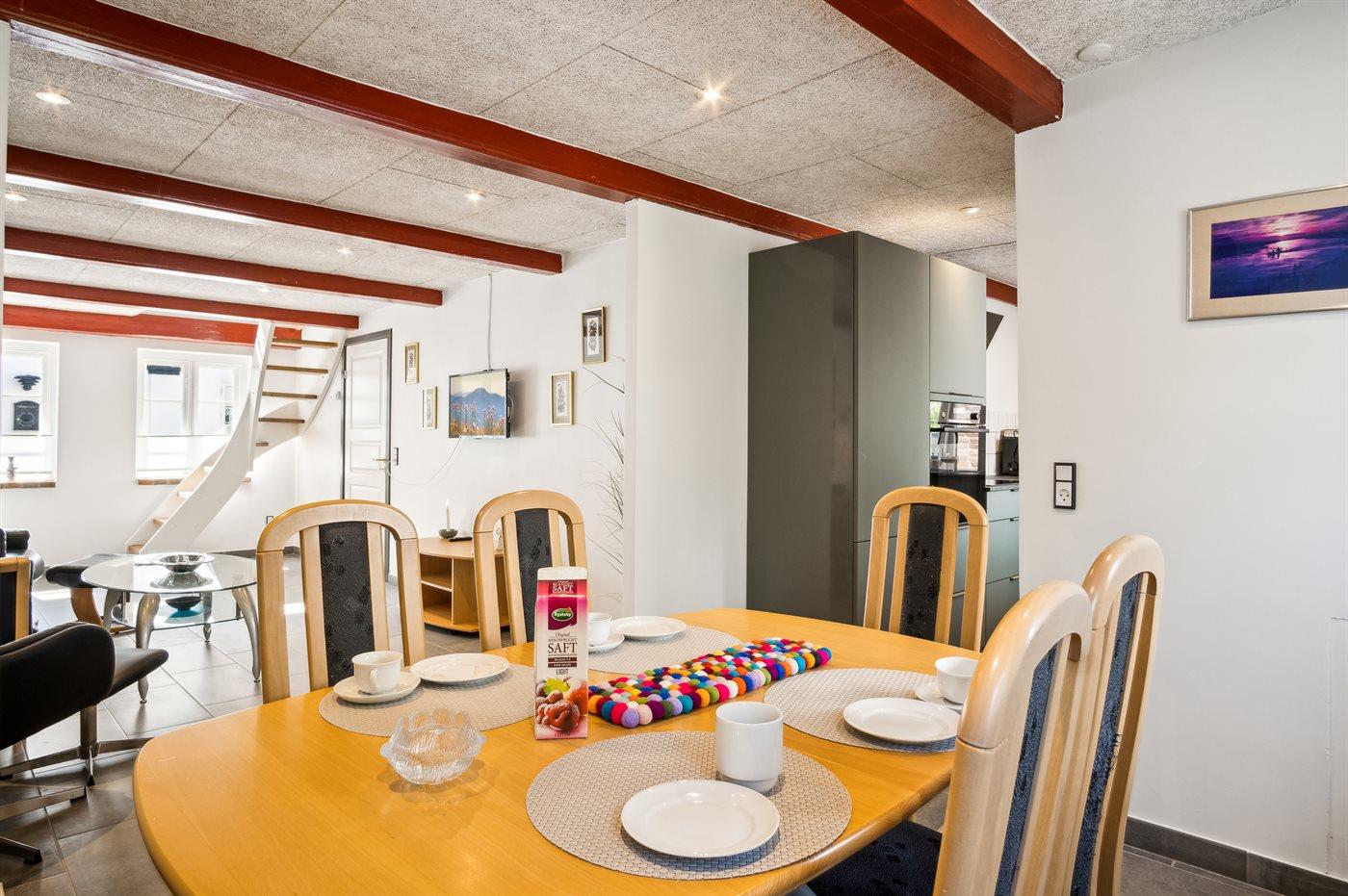 Køkkenet er udstyret med 1 køleskab. Der er 4 induktionskogeplader, varmluftovn samt opvaskemaskine.