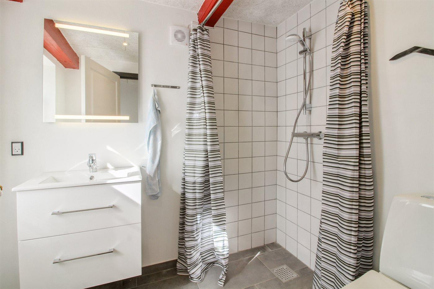 Der er 1 badeværelse med bruseniche og 1 toilet.. Der er gulvvarme på 1 badeværelse.