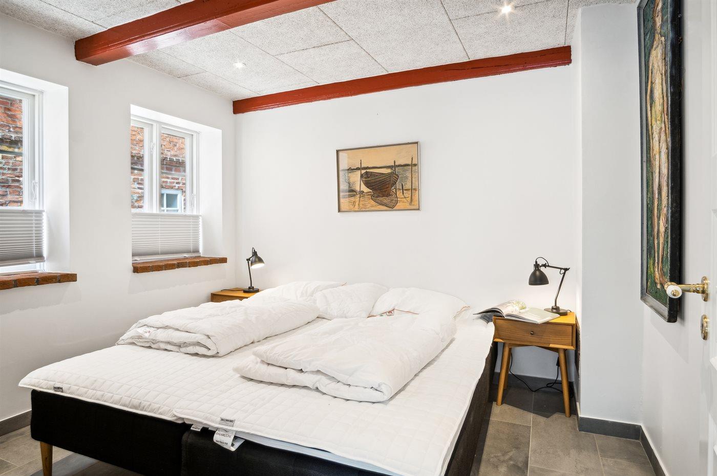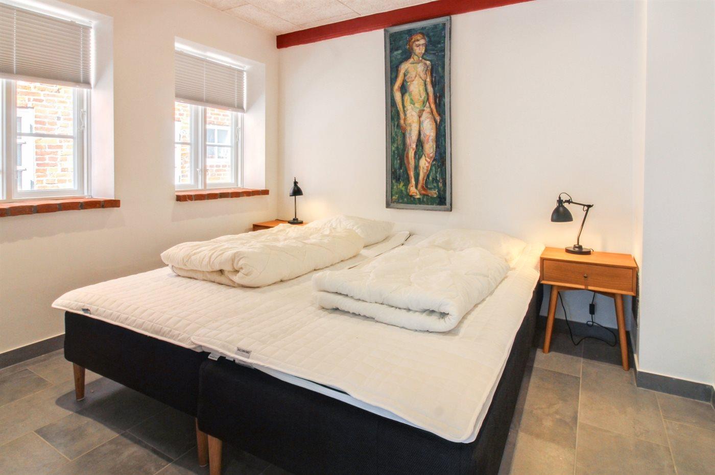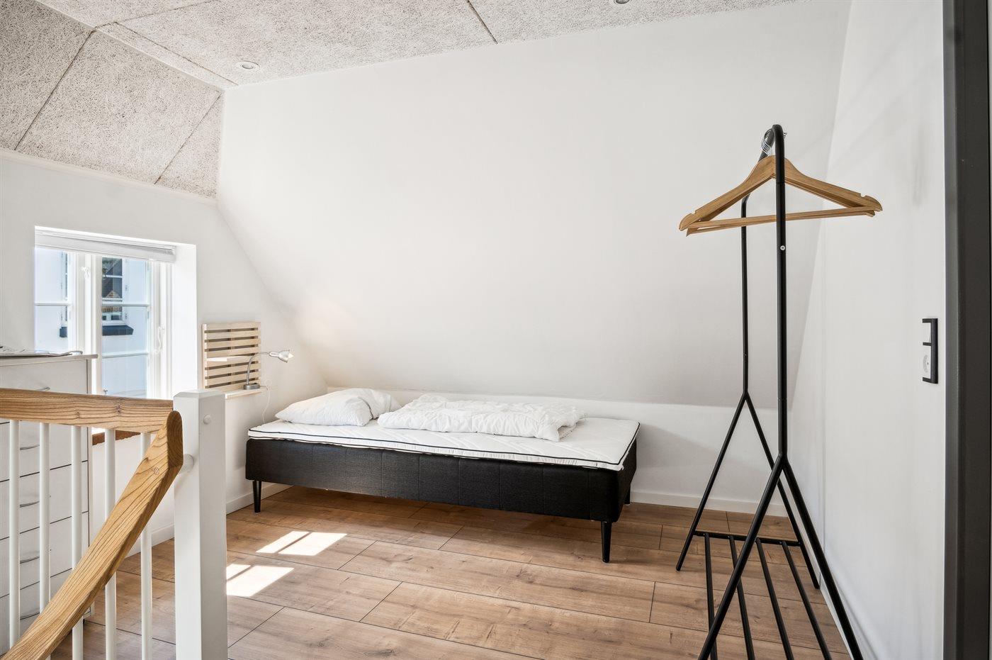 Der er i alt 1 soveværelse. Sovepladserne fordeler sig på: 4 sovepladser i dobbeltsenge. 2 af disse sovepladser befinder sig på husets hems.