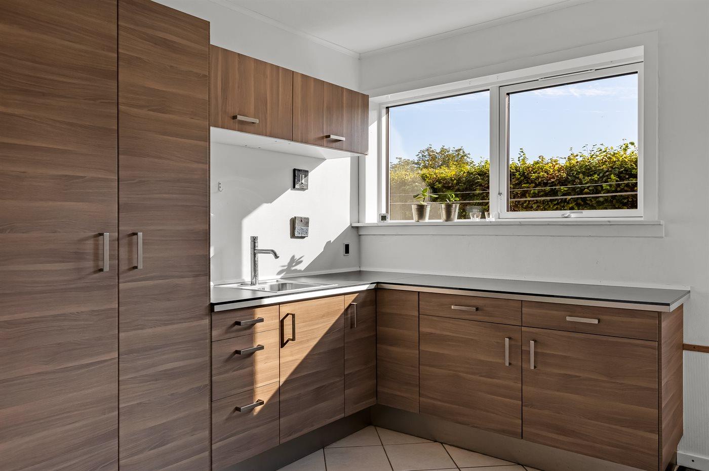Køkkenet er udstyret med 1 køleskab. Der er 4 induktionskogeplader, varmluftovn samt opvaskemaskine.