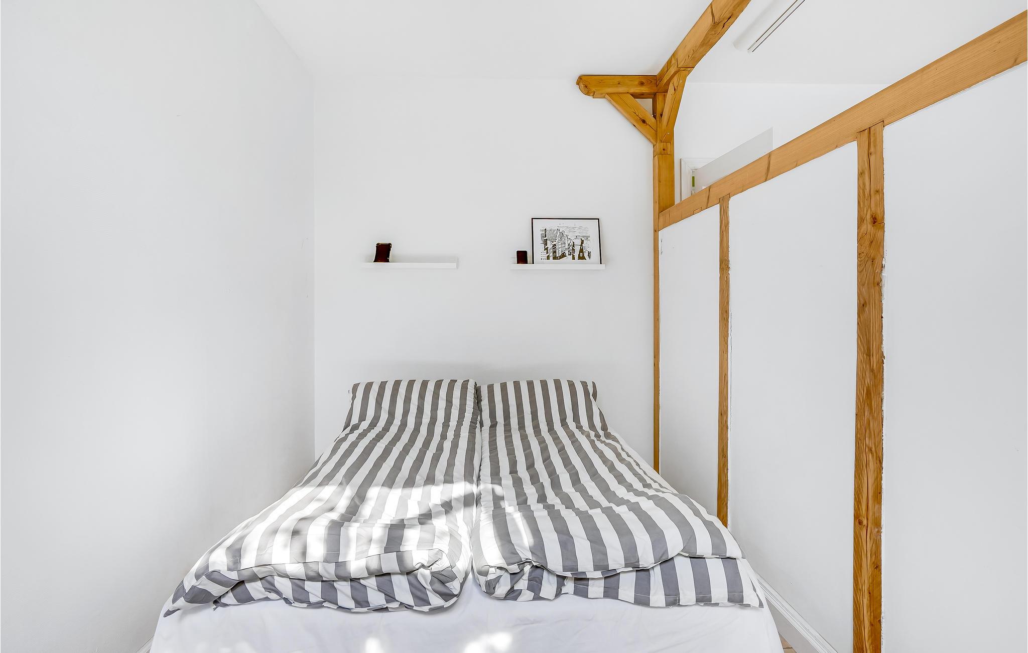 Denne stuelejlighed er lyst og lækkert indrettet, så her får I de ideelle betingelser for en ferie på alle tider af året. Soveværelset har forbindelse til stuen, men er godt afskærmet. Om aftenen kan I slappe ud og nyde varmen fra brændeovnen efter en dag fyldt med aktiviteter.