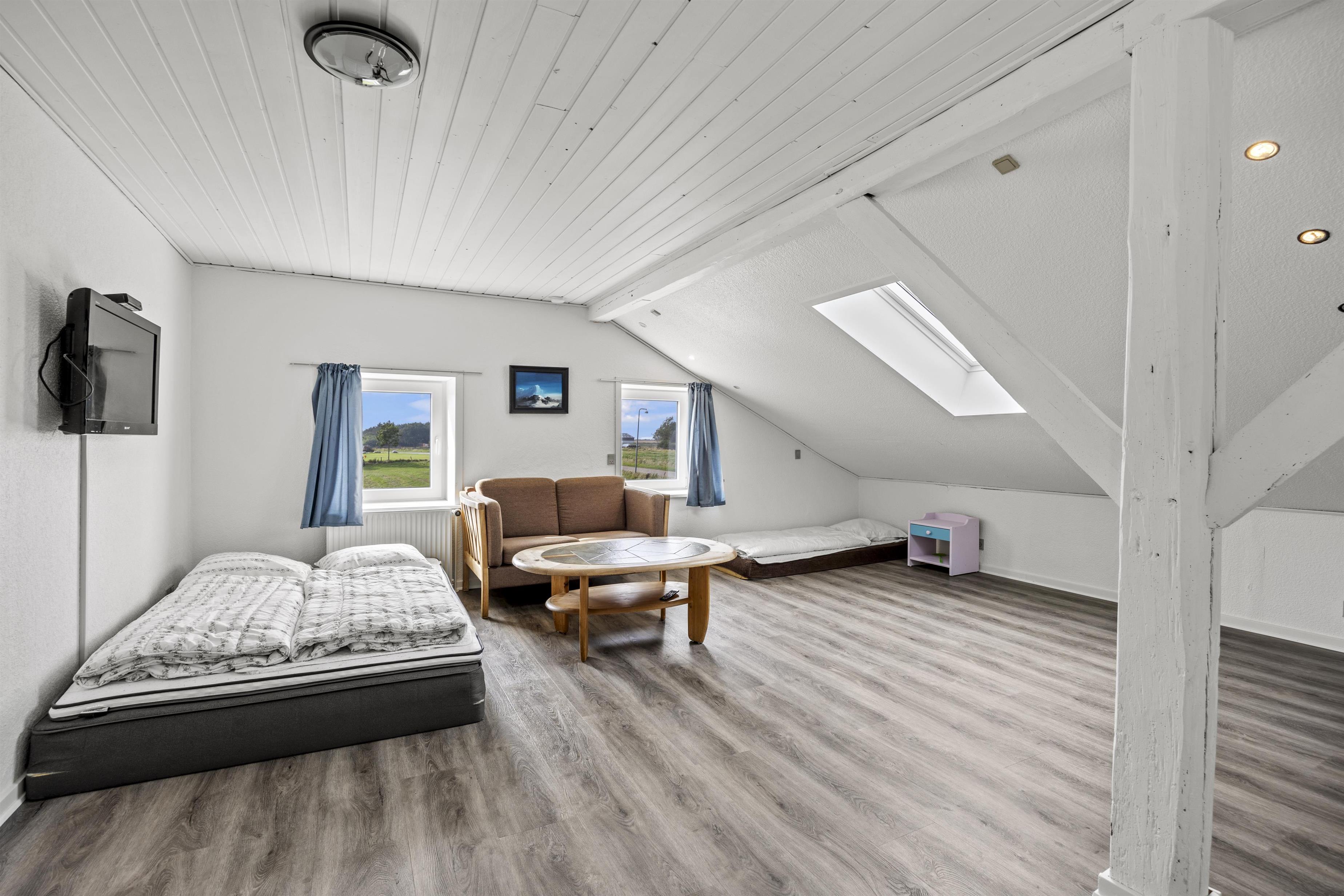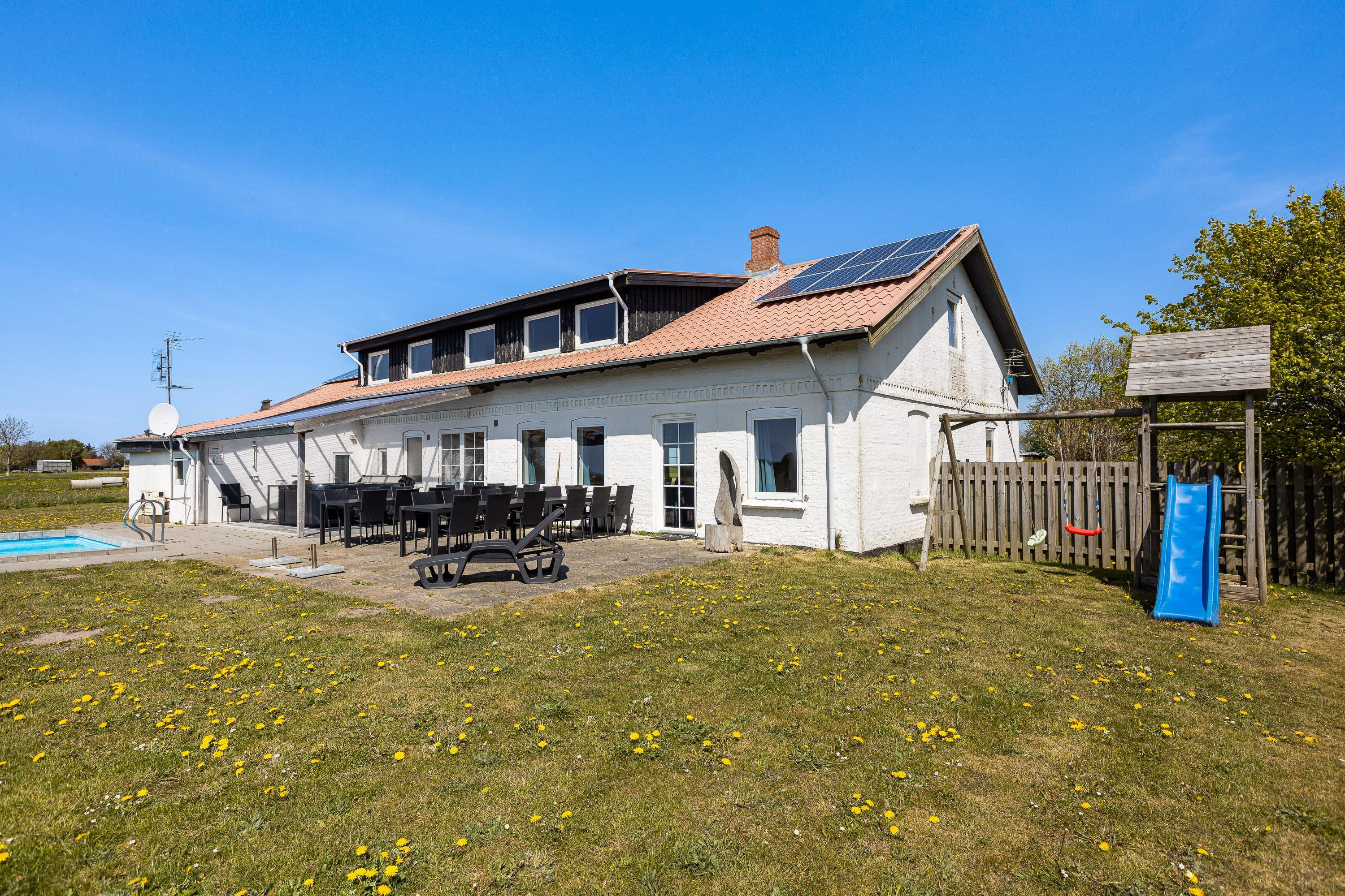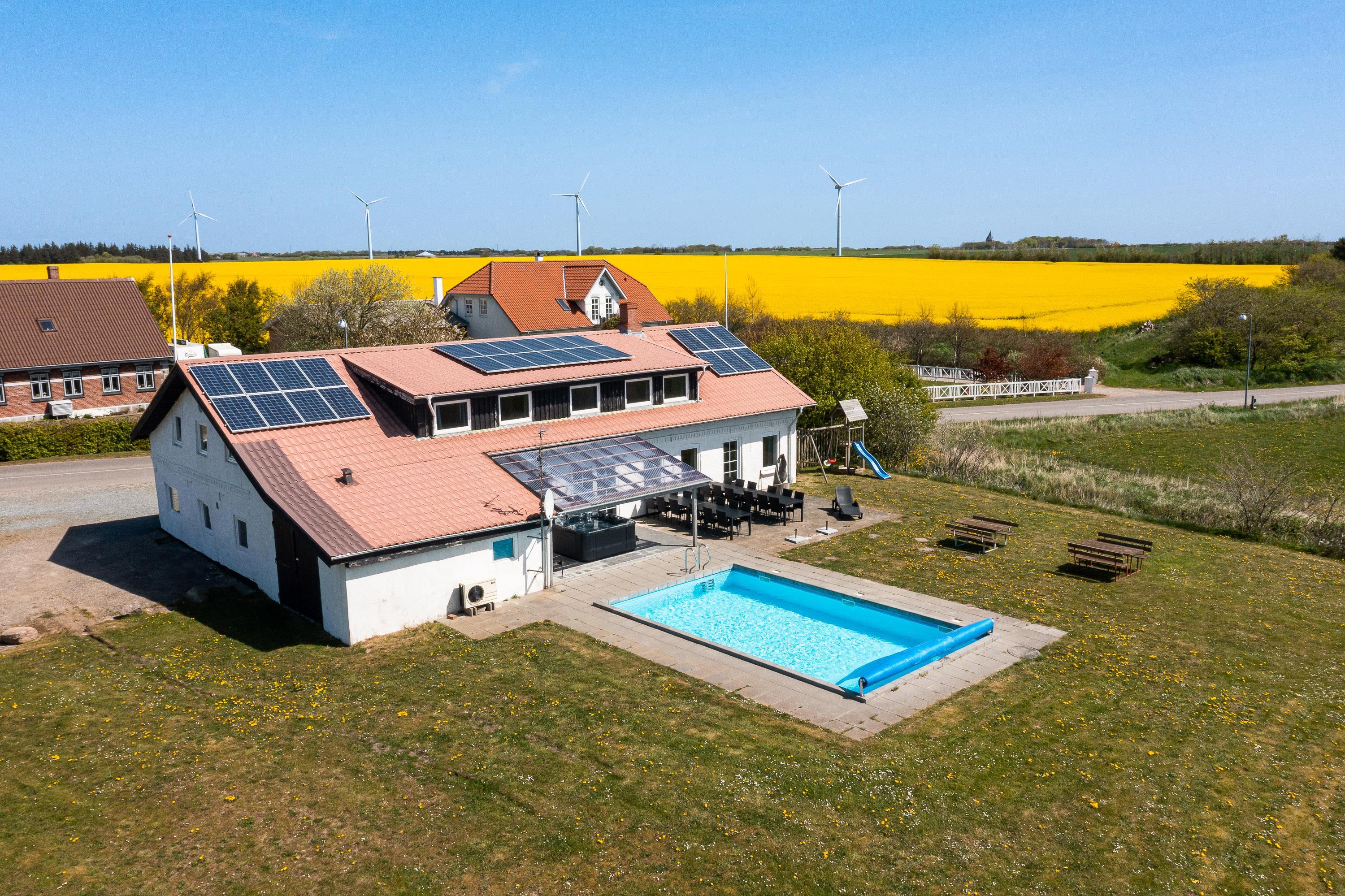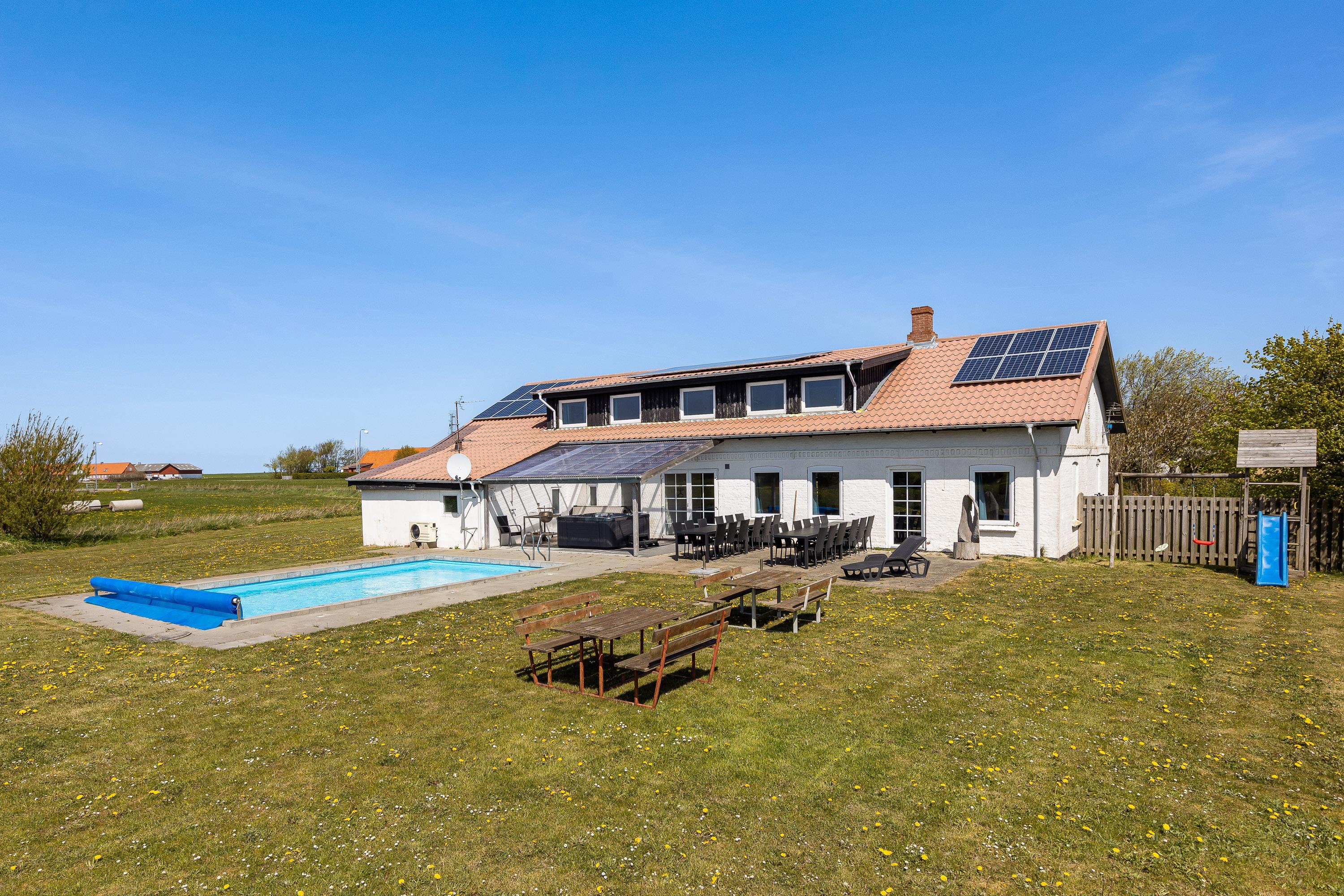Perfekt til den store familie med børn, bedsteforældre, søskende og en hund står det rummelige feriehus, med plads til 24 personer, på Emmerlevvej 37 klar til jer. 300m² fordelt på 2 etager, næsten 2000m² plænegrund med stor terrasse, udendørs pool, en udespa og en udebruser.