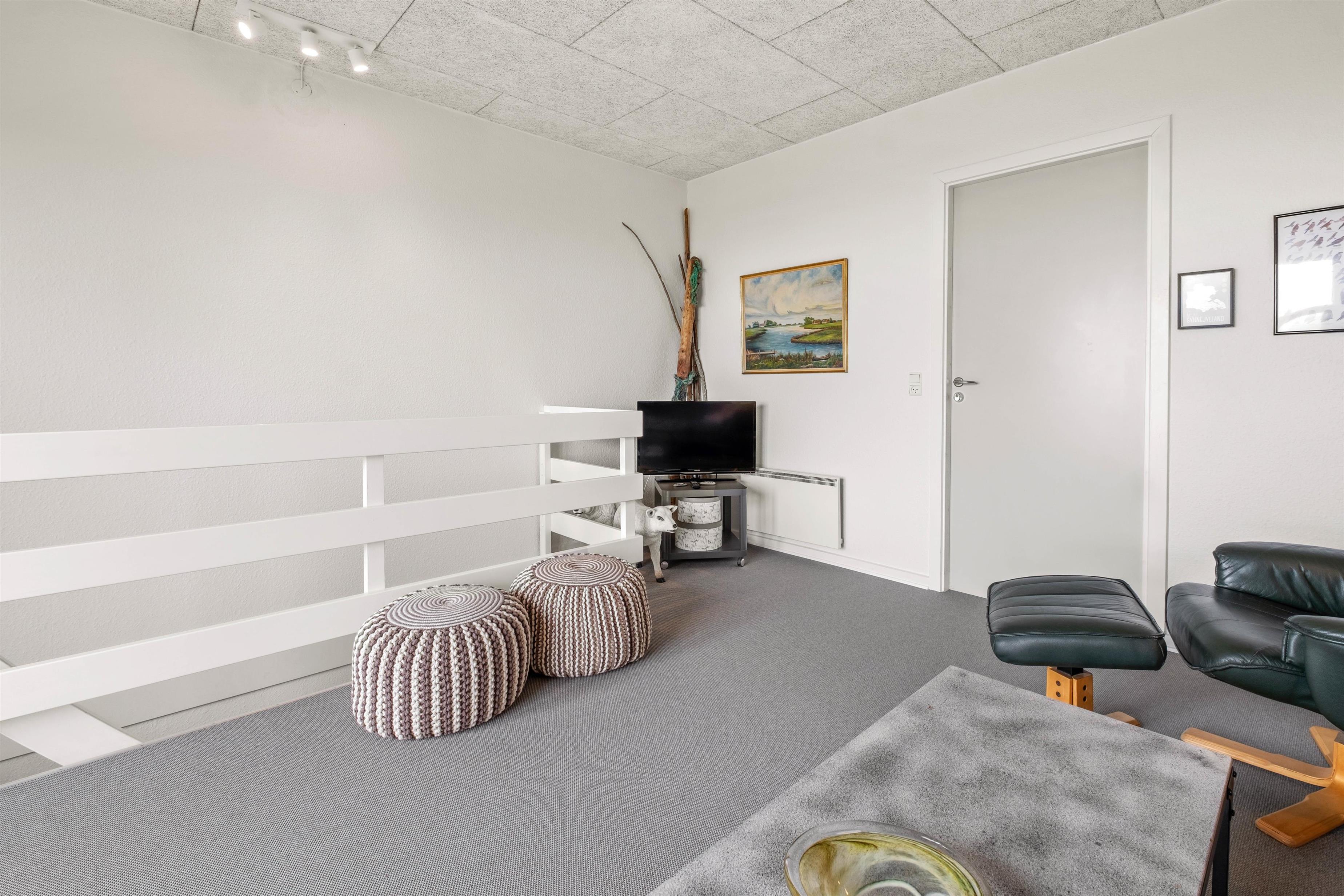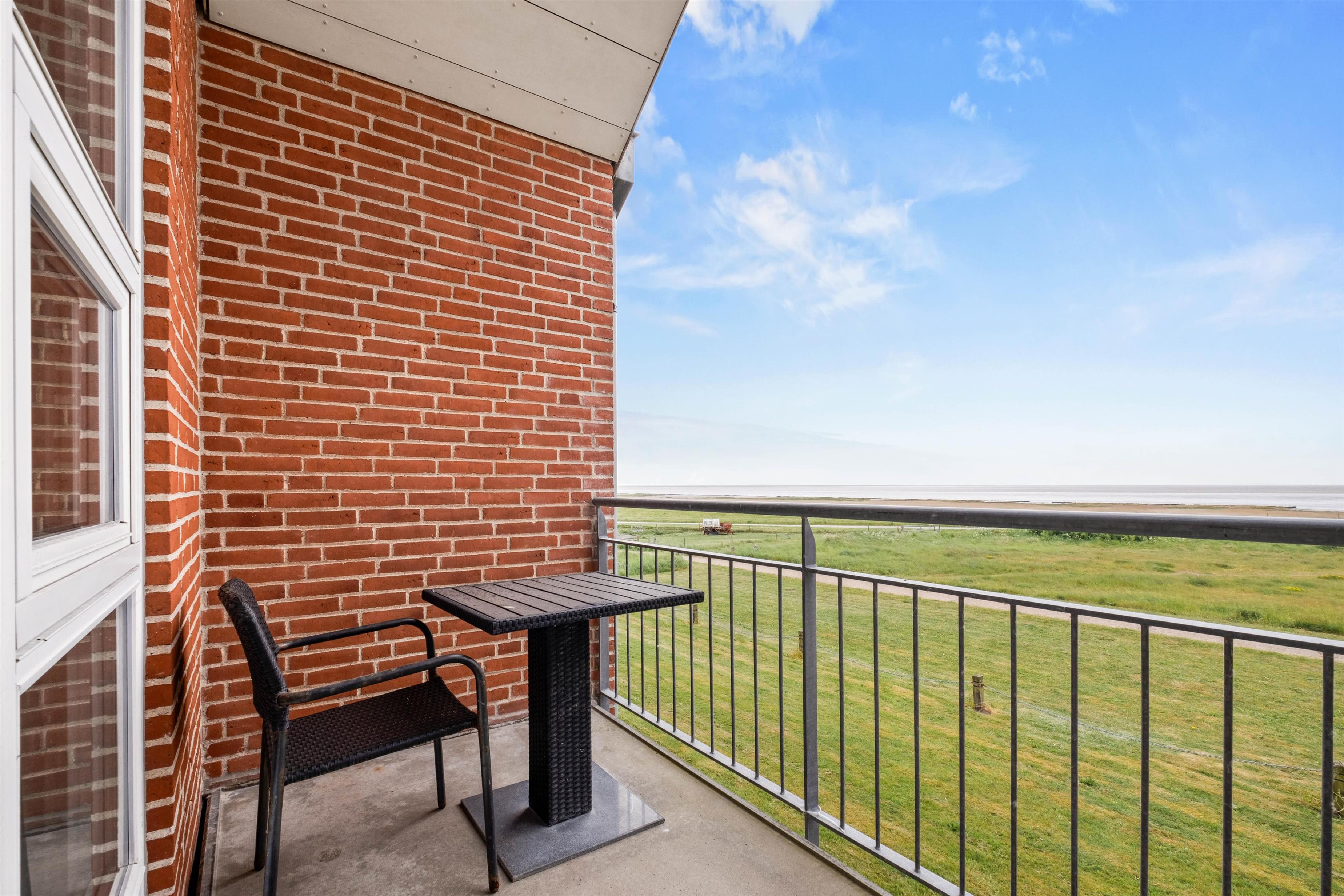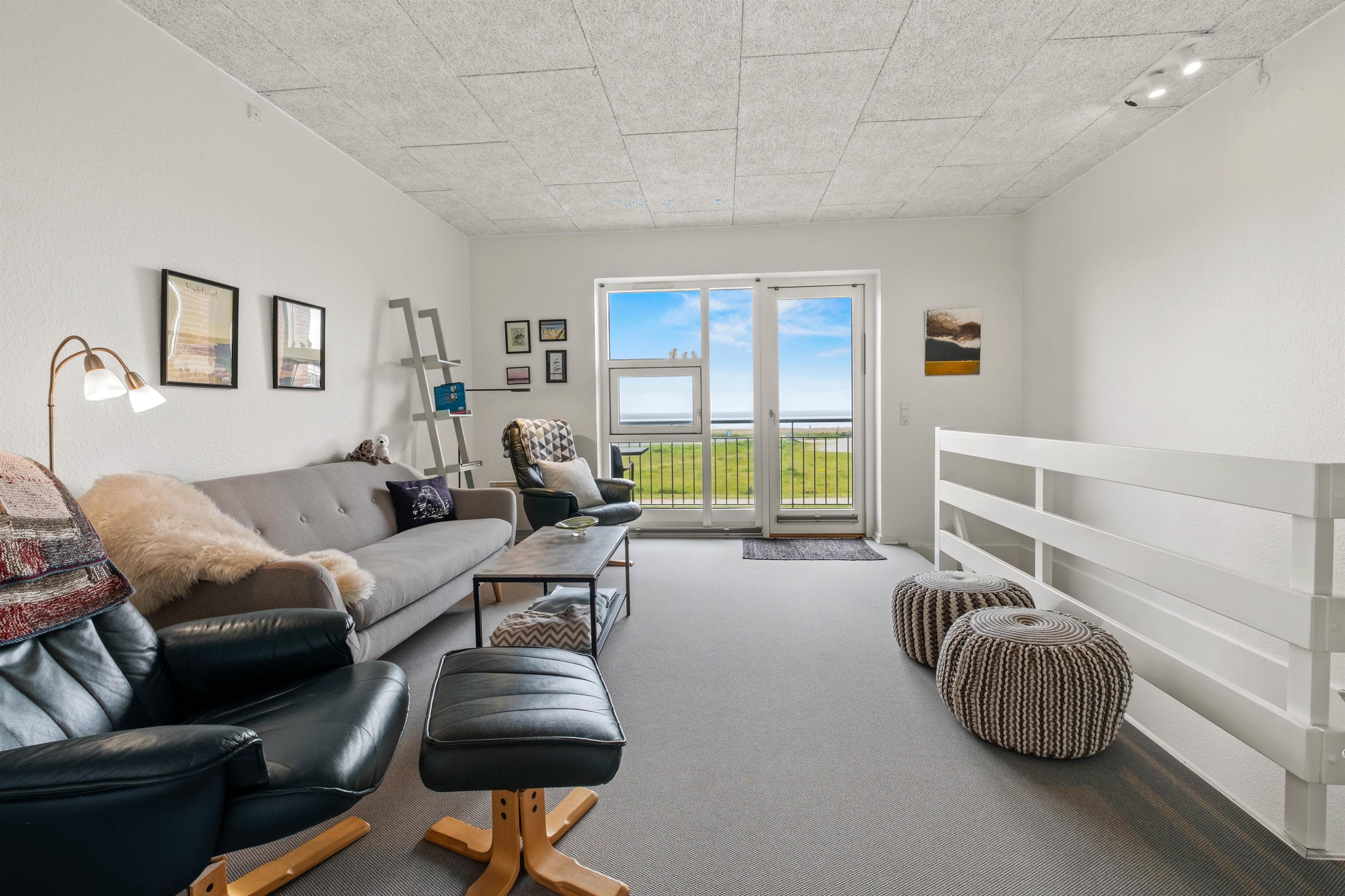 På første sal ligger den hyggelige stue, hvorfra du kan gå ud på altanen. Når du først er på altanen, har du en sensationel udsigt langt ud over Vadehavet.