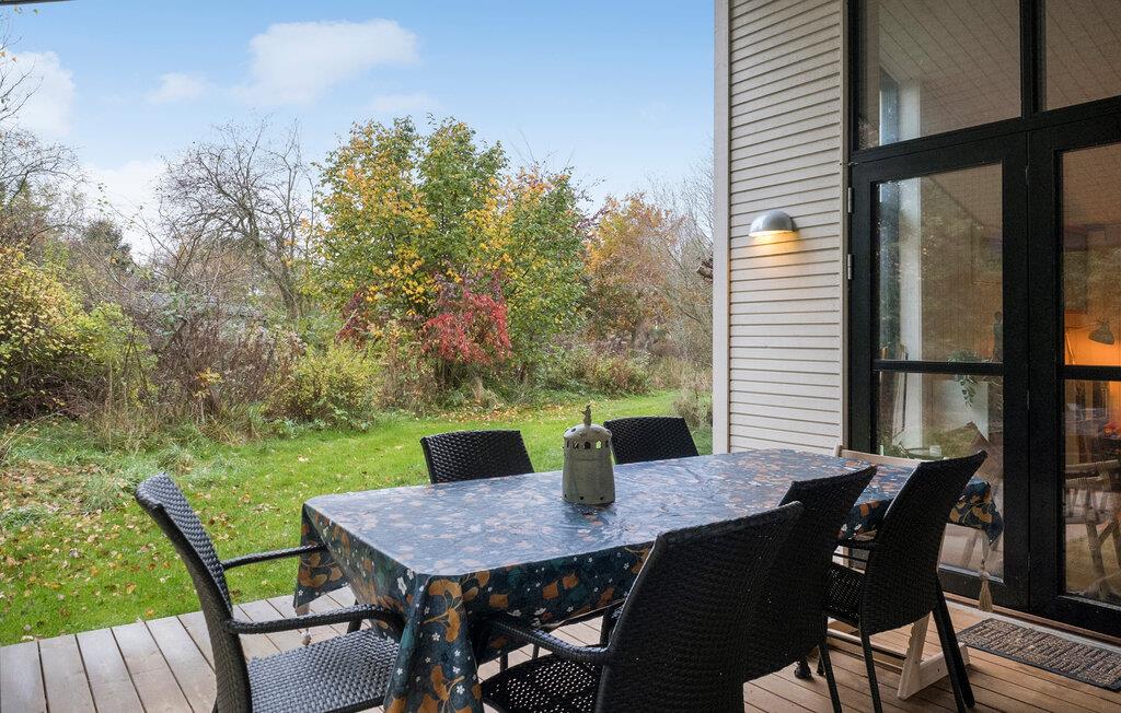 Dette smukke feriehus byder jer og familien på en lys og indbydende atmosfære med kærligt indrettede rum. Indvendigt møder I et moderne design kombineret med hyggelige områder som hemsen og den åbne sovehems – perfekte steder at trække sig tilbage og slappe af. Den familievenlige indretning inviterer også de yngste gæster til at udforske huset. På den rummelige terrasse, delvist overdækket, kan I nyde solens varme i liggestolene, mens børnene leger med havens legeredskaber.