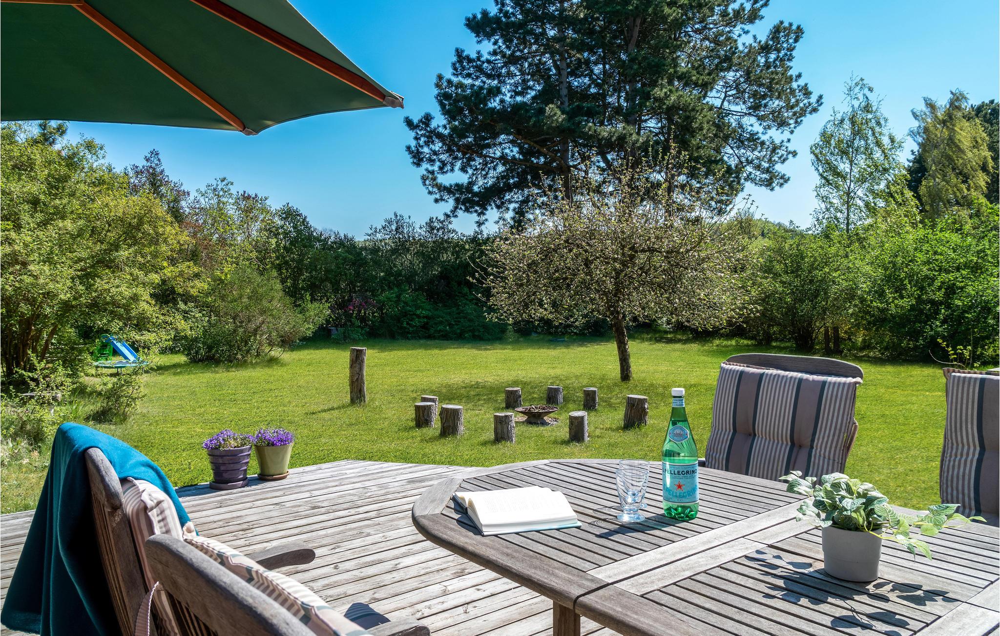 Hyggeligt feriehus med brændeovn, stor terrasse og børnevenlig have nær Høve Strand.