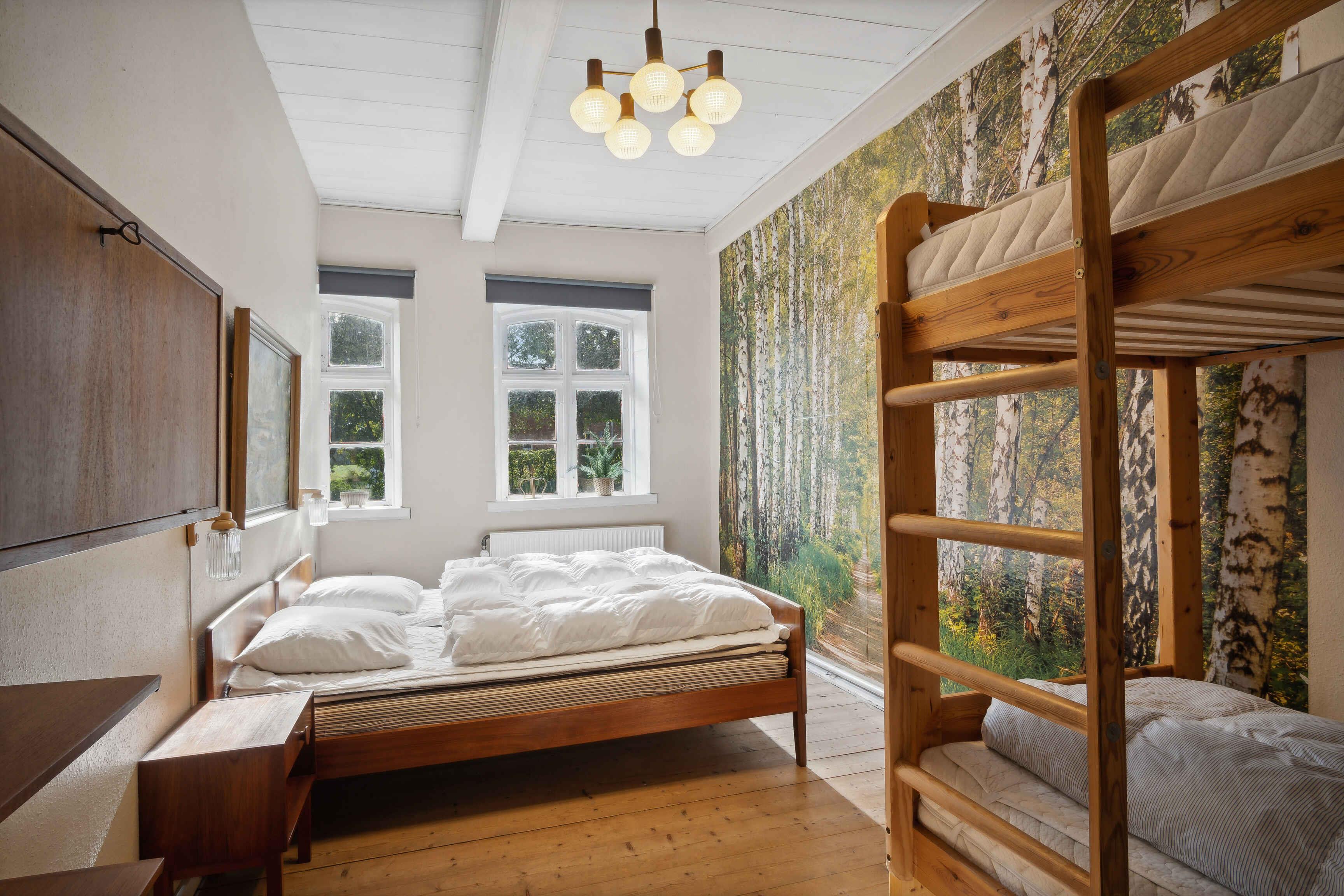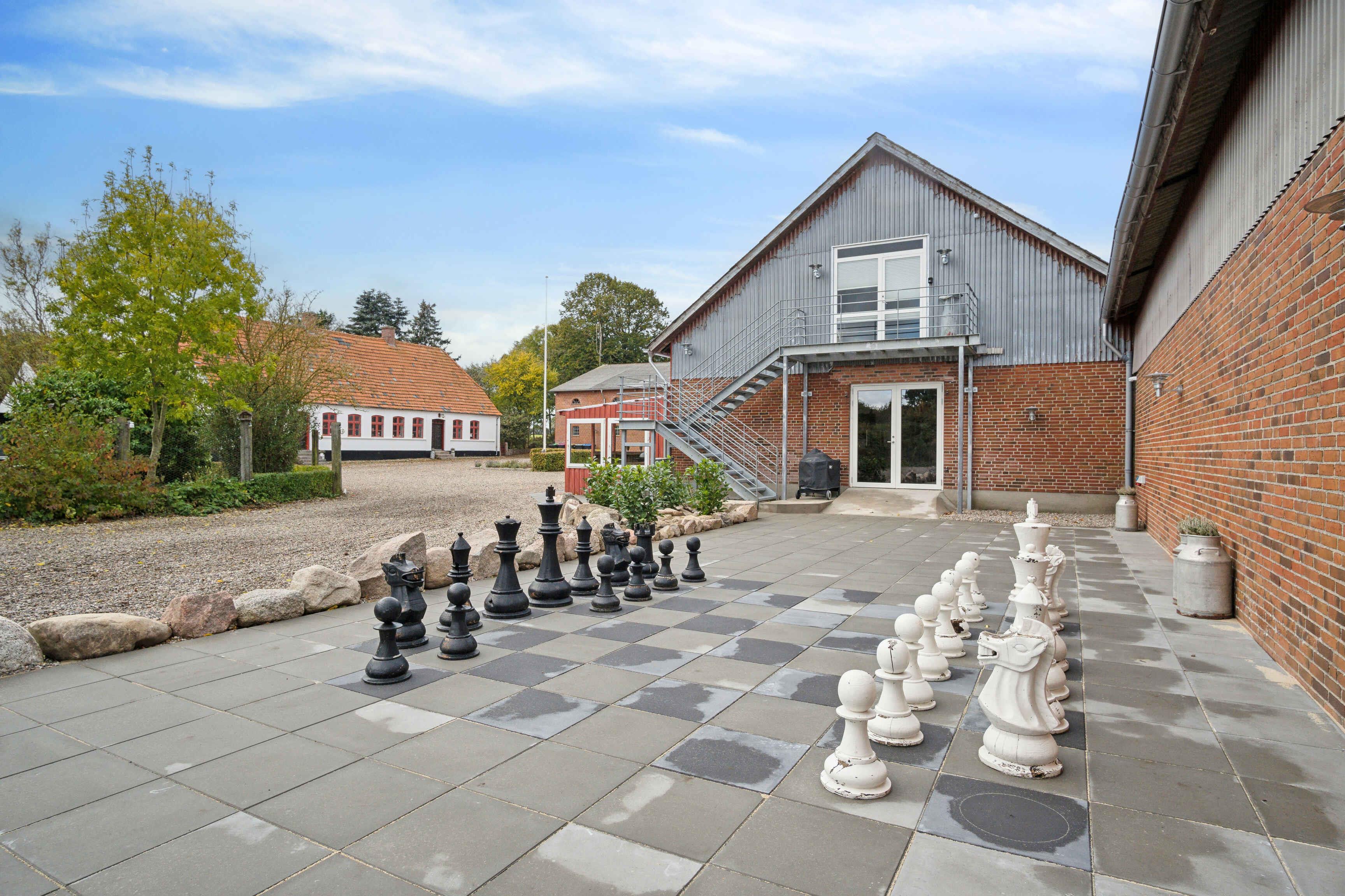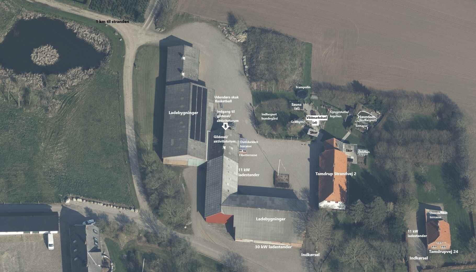 Velbeliggende gård på 230 m2 med tilhørende aftægtsbolig på 120 m2, gildesal/multirum med køkkenfaciliteter og 2 badeværelser på i alt 175 m2 , aktivitetsrum på 100 m2, grusbelagt gårdsplads på 2.700 m2 og have med mange rum incl. særskilt område med vildmarksbad, sauna, shelter og grillhytte på cirka 4.700 m2. Derudover er der 2 x 11 kw AC lader til elbil/hybridbil samt en 30 kw DC hurtiglader til elbil til rådighed. Gårdens store 26 kWp solcelleanlæg, placeret på taget af den ene driftsbygning, bidrager betydeligt til strømproduktionen på en bæredygtig måde. Der er lynhurtigt WIFI på 360 Mbps i boliger, gildesal og aktivitetsrum. Der er også udvendigt WIFI ved stuehusets vestvendte gavl i området omkring havedam, vildmarksbad, sauna, shelter og grillhytte. Stuehuset er på 230 m2 i 1. plan fra oprindeligt 1850. Stuehuset byder på god plads med i alt 16 rum. I får 3 store autentisk indrettede stuer bl.a. tv med Chromecast, 4 soveværelser, 1 legeværelse (med mulighed for opredning på sovesofa), meget veludstyret køkken med bl.a. Sage Barista Pro espresso maskine, Kenwood røremaskine, blender, fondue og meget andet samt 2 store nye badeværelser med gulvvarme (etableret i 2020 og 2022) samt toiletrum. Stuehuset er indrettet i original charmerende stil med tidssvarende møbler og ældre malerier hovedsageligt fra lokalområdet. Gården opvarmes af ny luft-til-vand varmepumpe (etableret i 2021). Udendørs er der masser af plads. Der er en cirka 2.000 m2. stor grusbelagt gårdsplads, overdækket terrasse med 10-12 siddeplader samt terrassevarmer og gas- & kulgrill, ugeneret terrasse (ikke overdækket) med 10-12 siddepladser samt indhegnet bålsted og havedam og en ca. 4.000 m2 stor have opdelt i flere rum. Havens rum indeholder bl.a. frugttræer, bærbuske og drivhus med sæsonens grønsager. Til børnene er der en stor trampolin med sikkerhedsnet (4,30 meter), 2 x fodboldmål, 2 x vippedyr, legehus samt et kæmpe gyngestativ med fem forskellige gynger, klatrereb og rutschebane. Desuden er der diverse børne- og voksencykler samt mooncars, pedaltraktorer mm. til disposition. I haven findes derudover et afgrænset område med et nyt 2,25 meter stort elopvarmet vildmarksbad med termolåg (anno 2023), en 3,5 meter stor elopvarmet saunatønde (anno 2021/2024), udendørsbruser med varmtvandbeholder, shelter samt en stor 12-personers brændefyret grillhytte (anno 2022). En vís mængde brænde er frit til rådighed under opholdet. Aftægtsbolig er på ca. 120 m2. i 2. plan og er opført i 1948. Boligen er gennemrenoveret i 2023/2024 og indeholder entre, bryggers, badeværelse med gulvvarme, veludstyret køkken med KitchenAid kaffemaskine, Dualit espressomaskine, KitchenAid røremaskine, mikrobølgeovn, Liebherr kølefryseskab, spisestue med 8 siddepladser, opholdsstue med TV med Chromecast samt 4 soveværelser heraf 2 værelser på 1. sal og 1 værelse med gulvvarme. Boligen er indrettet i original charmerende stil med tidssvarende møbler og ældre malerier hovedsageligt fra lokalområdet. Opvarming sker via ny luft-til-vand varmepumpe (etableret i 2023). Udendørs forefindes stor terrasse på 70 m2. hvoraf ca. 40 m2. er overdækket med havemøbler til 8 personer samt gas- og kulgrill, gårdsplads på 200 m2. og have på 700 m2. med trampolin (4,3 meter), gyngestativ med 2 gynger og fodboldmål. Lynhurtig 360 Mbps WIFI-forbindelse er tilgængelig. Udvendigt er der en 11 kw AC lader til elbil/hybridbil til rådighed - anvendelse via Monta app. Aktivitetsrummet er på 100 m2. og er etableret i 2023 på gårdens gamle halmloft på 1. sal. Aktivitetsrummet er isoleret og opvarmet med 2 x luft-til-luft varmepumper. Der er følgende faciliteter til rådighed: Poolbord, bordfodbold, airhockey, 2 x dart (almindeligt/elektrisk), shuffleboard, pokerbord (6 siddepladser), krea-bord (4 siddeplader og 1 Trip Trap junior stol) , LEGO, legesager, bræt- og kortspil, 32" tv og projektor med Chromecast, xboks 360 og xboks one med mange spil samt opholdspladser og stor bar i midten af rummet med fadølsanlæg (2 haner), 7 barstole, alverdens drikkeglas, kaffemaskine, blender, køleskab med mere. Lynhurtig 360 Mbps WIFI-forbindelse er tilgængelig. Gildesal/multimum med tilhørende køkken og 2 badeværelser på i alt 175 m2. er etableret i 2024 i gårdens gamle kostald i stueplan. Selve gildesal/multirum er på cirka 100 m2. med plads til ca. 60 gæster. Hertil kommer entre, gang og garderobe på cirka 45 m2, veludstyret anretterkøkken på cirka 15 m2 og 2 badeværelser på i alt 15 m2. De oprindelige detaljer er bevaret bl.a det gamle hvælvingeloft og de gamle stolper. Gulvet er etableret med gulvvarme og behandlet med epoxy. Primær varmekilde er dog luft-til-luft varmepumpe. I rummet er der god bordplads og god opbevarings- og hyldeplads. Der forefindes projektor, whiteboard, anlæg med subwoofer og bluetooth forbindelse, stort flytbart display køleskab, 10 liters industri kaffemaskine samt fadølsanlæg med 3 haner. Der er desuden vask og vandhane med koldt vand. I køkkenet forefindes industri køleskab, køle/fryseskab, DeDietrich ovn, kogeplader, emhætte med ekstern motor, 2 x alm. opvaskemaskiner, pizzaovn med 2 rum, kraftig stor mikrobølgeovn med varmluft, vandhane med mulighed for kogende vand (Taurus), KitchenAid blender, Kenwood køkkenmaskine incl. tilbehør samt vandkølet fadølsanlæg (Celli) med mulighed for tilkobling af 5 fustager. Der er tillige god opbevarings- og hyldeplads samt god bordplads i køkkenet og der er også et stålrullebord til rådighed. Lynhurtig 360 Mbps WIFI-forbindelse er tilgængelig. Badeværelserne er etableret i foråret 2025. Det ene er med badefaciliteter det andet med pusleplads. Der er ved forespørgsel mulighed for at leje borde, stole, service, duge, fadølsfustager, CO2-flasker, popcornmaskine, ScOOp slushicemaskine med 3 kamre mv. Ved ankomst er der altid 4 x 6-personers borde og 20 x polstrede stole samt bestil og service ti