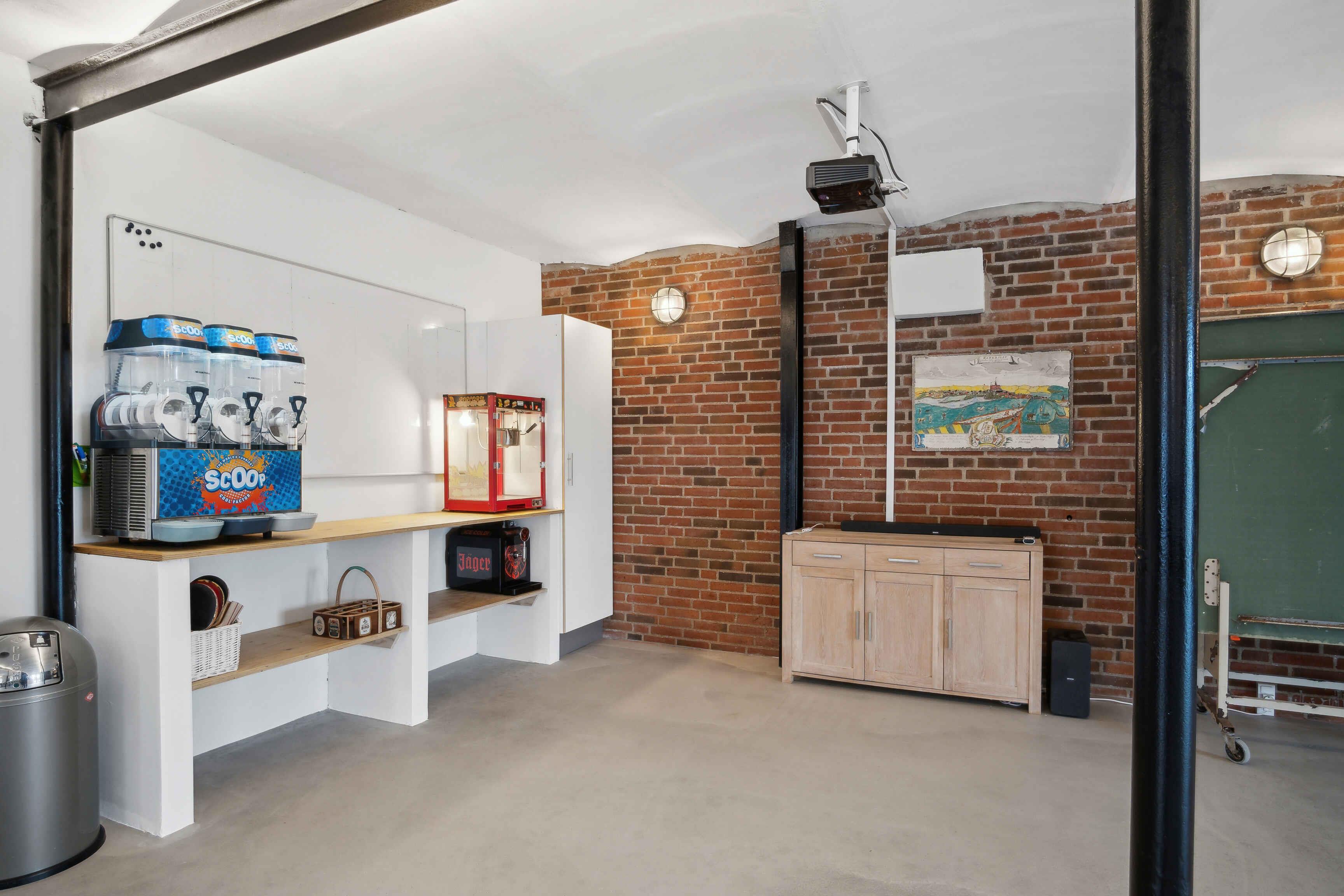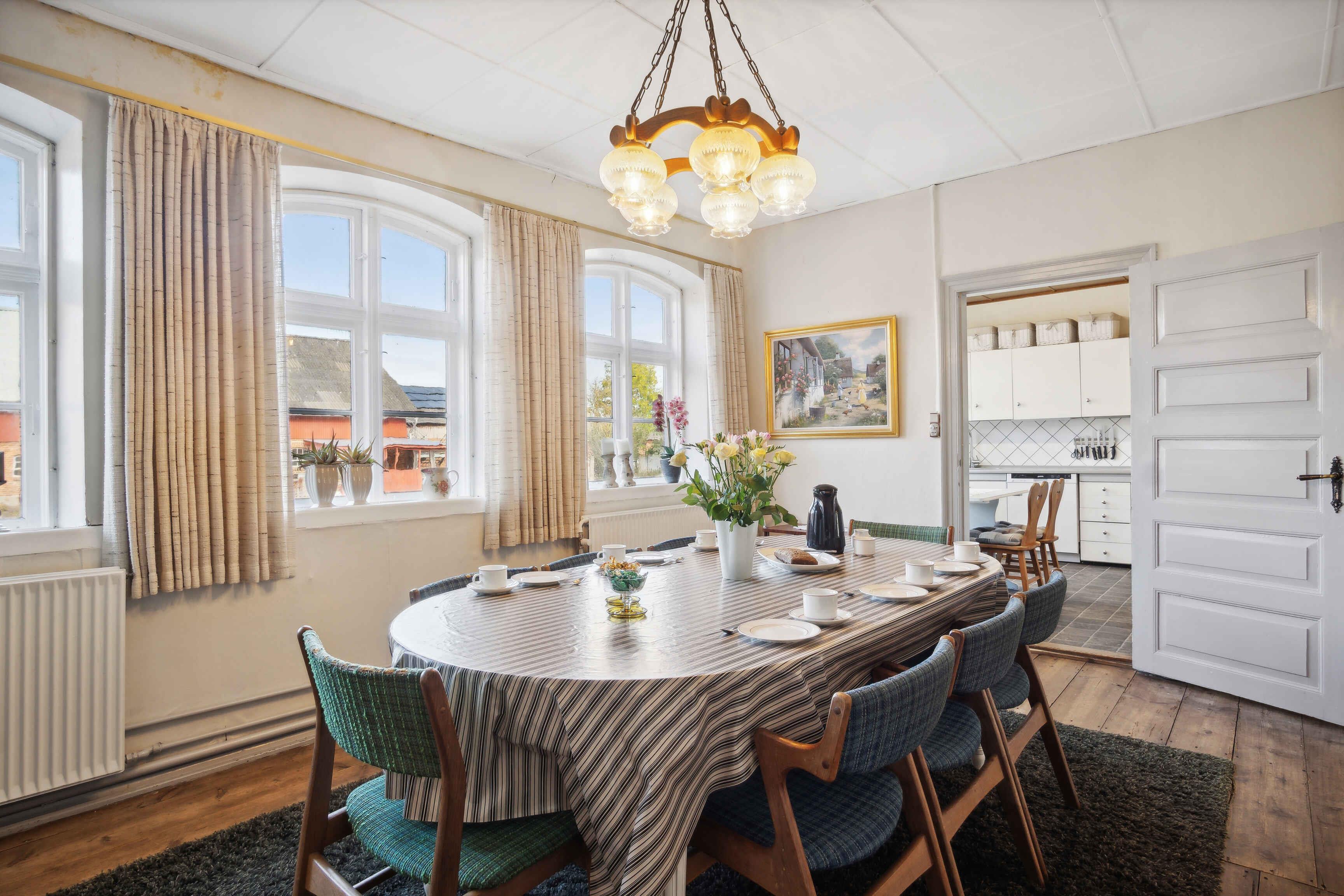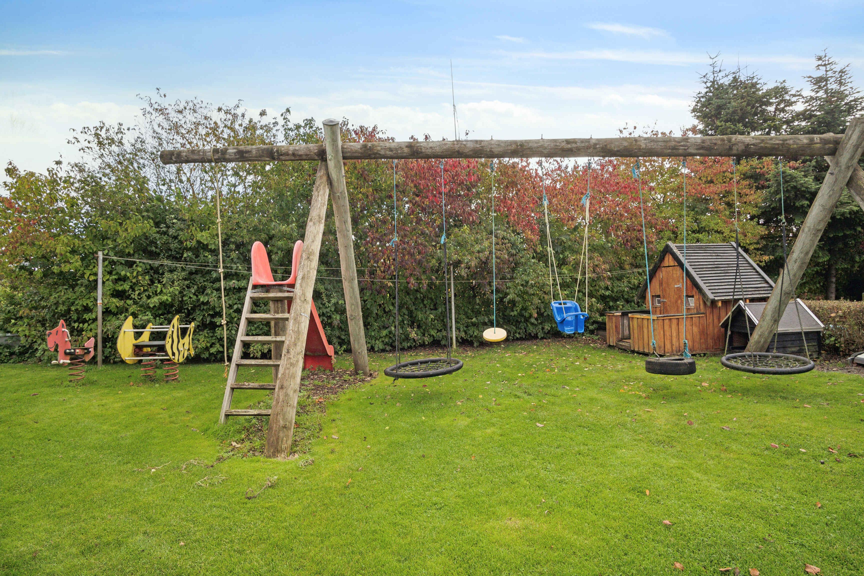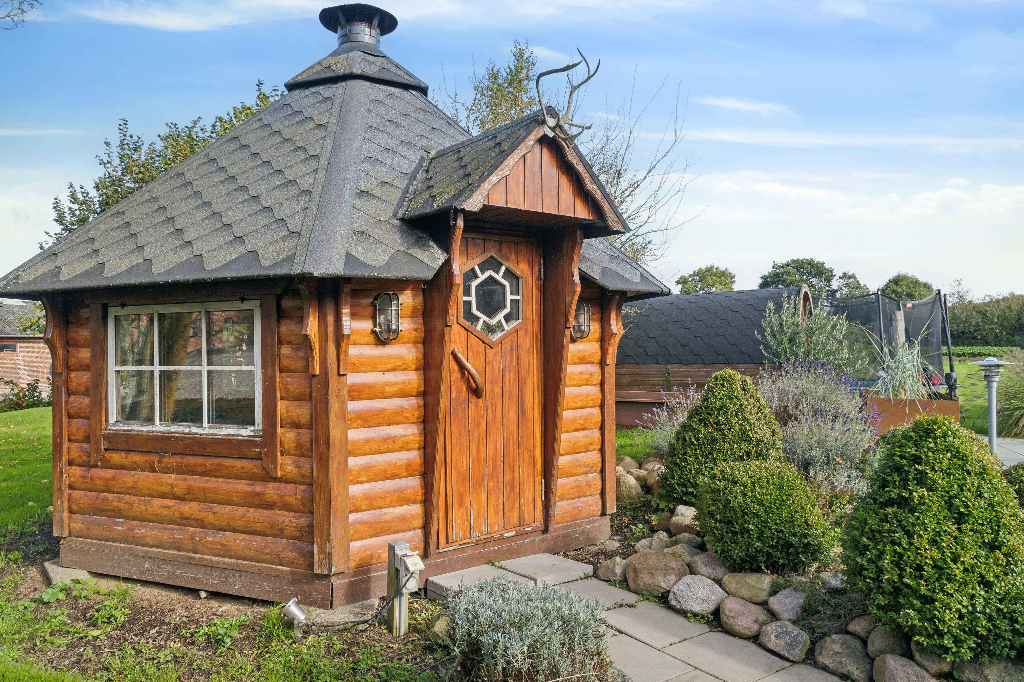 Velbeliggende gård på 230 m2 med tilhørende aftægtsbolig på 120 m2, gildesal/multirum med køkkenfaciliteter og 2 badeværelser på i alt 175 m2 , aktivitetsrum på 100 m2, grusbelagt gårdsplads på 2.700 m2 og have med mange rum incl. særskilt område med vildmarksbad, sauna, shelter og grillhytte på cirka 4.700 m2. Derudover er der 2 x 11 kw AC lader til elbil/hybridbil samt en 30 kw DC hurtiglader til elbil til rådighed. Gårdens store 26 kWp solcelleanlæg, placeret på taget af den ene driftsbygning, bidrager betydeligt til strømproduktionen på en bæredygtig måde. Der er lynhurtigt WIFI på 360 Mbps i boliger, gildesal og aktivitetsrum. Der er også udvendigt WIFI ved stuehusets vestvendte gavl i området omkring havedam, vildmarksbad, sauna, shelter og grillhytte. Stuehuset er på 230 m2 i 1. plan fra oprindeligt 1850. Stuehuset byder på god plads med i alt 16 rum. I får 3 store autentisk indrettede stuer bl.a. tv med Chromecast, 4 soveværelser, 1 legeværelse (med mulighed for opredning på sovesofa), meget veludstyret køkken med bl.a. Sage Barista Pro espresso maskine, Kenwood røremaskine, blender, fondue og meget andet samt 2 store nye badeværelser med gulvvarme (etableret i 2020 og 2022) samt toiletrum. Stuehuset er indrettet i original charmerende stil med tidssvarende møbler og ældre malerier hovedsageligt fra lokalområdet. Gården opvarmes af ny luft-til-vand varmepumpe (etableret i 2021). Udendørs er der masser af plads. Der er en cirka 2.000 m2. stor grusbelagt gårdsplads, overdækket terrasse med 10-12 siddeplader samt terrassevarmer og gas- & kulgrill, ugeneret terrasse (ikke overdækket) med 10-12 siddepladser samt indhegnet bålsted og havedam og en ca. 4.000 m2 stor have opdelt i flere rum. Havens rum indeholder bl.a. frugttræer, bærbuske og drivhus med sæsonens grønsager. Til børnene er der en stor trampolin med sikkerhedsnet (4,30 meter), 2 x fodboldmål, 2 x vippedyr, legehus samt et kæmpe gyngestativ med fem forskellige gynger, klatrereb og rutschebane. Desuden er der diverse børne- og voksencykler samt mooncars, pedaltraktorer mm. til disposition. I haven findes derudover et afgrænset område med et nyt 2,25 meter stort elopvarmet vildmarksbad med termolåg (anno 2023), en 3,5 meter stor elopvarmet saunatønde (anno 2021/2024), udendørsbruser med varmtvandbeholder, shelter samt en stor 12-personers brændefyret grillhytte (anno 2022). En vís mængde brænde er frit til rådighed under opholdet. Aftægtsbolig er på ca. 120 m2. i 2. plan og er opført i 1948. Boligen er gennemrenoveret i 2023/2024 og indeholder entre, bryggers, badeværelse med gulvvarme, veludstyret køkken med KitchenAid kaffemaskine, Dualit espressomaskine, KitchenAid røremaskine, mikrobølgeovn, Liebherr kølefryseskab, spisestue med 8 siddepladser, opholdsstue med TV med Chromecast samt 4 soveværelser heraf 2 værelser på 1. sal og 1 værelse med gulvvarme. Boligen er indrettet i original charmerende stil med tidssvarende møbler og ældre malerier hovedsageligt fra lokalområdet. Opvarming sker via ny luft-til-vand varmepumpe (etableret i 2023). Udendørs forefindes stor terrasse på 70 m2. hvoraf ca. 40 m2. er overdækket med havemøbler til 8 personer samt gas- og kulgrill, gårdsplads på 200 m2. og have på 700 m2. med trampolin (4,3 meter), gyngestativ med 2 gynger og fodboldmål. Lynhurtig 360 Mbps WIFI-forbindelse er tilgængelig. Udvendigt er der en 11 kw AC lader til elbil/hybridbil til rådighed - anvendelse via Monta app. Aktivitetsrummet er på 100 m2. og er etableret i 2023 på gårdens gamle halmloft på 1. sal. Aktivitetsrummet er isoleret og opvarmet med 2 x luft-til-luft varmepumper. Der er følgende faciliteter til rådighed: Poolbord, bordfodbold, airhockey, 2 x dart (almindeligt/elektrisk), shuffleboard, pokerbord (6 siddepladser), krea-bord (4 siddeplader og 1 Trip Trap junior stol) , LEGO, legesager, bræt- og kortspil, 32" tv og projektor med Chromecast, xboks 360 og xboks one med mange spil samt opholdspladser og stor bar i midten af rummet med fadølsanlæg (2 haner), 7 barstole, alverdens drikkeglas, kaffemaskine, blender, køleskab med mere. Lynhurtig 360 Mbps WIFI-forbindelse er tilgængelig. Gildesal/multimum med tilhørende køkken og 2 badeværelser på i alt 175 m2. er etableret i 2024 i gårdens gamle kostald i stueplan. Selve gildesal/multirum er på cirka 100 m2. med plads til ca. 60 gæster. Hertil kommer entre, gang og garderobe på cirka 45 m2, veludstyret anretterkøkken på cirka 15 m2 og 2 badeværelser på i alt 15 m2. De oprindelige detaljer er bevaret bl.a det gamle hvælvingeloft og de gamle stolper. Gulvet er etableret med gulvvarme og behandlet med epoxy. Primær varmekilde er dog luft-til-luft varmepumpe. I rummet er der god bordplads og god opbevarings- og hyldeplads. Der forefindes projektor, whiteboard, anlæg med subwoofer og bluetooth forbindelse, stort flytbart display køleskab, 10 liters industri kaffemaskine samt fadølsanlæg med 3 haner. Der er desuden vask og vandhane med koldt vand. I køkkenet forefindes industri køleskab, køle/fryseskab, DeDietrich ovn, kogeplader, emhætte med ekstern motor, 2 x alm. opvaskemaskiner, pizzaovn med 2 rum, kraftig stor mikrobølgeovn med varmluft, vandhane med mulighed for kogende vand (Taurus), KitchenAid blender, Kenwood køkkenmaskine incl. tilbehør samt vandkølet fadølsanlæg (Celli) med mulighed for tilkobling af 5 fustager. Der er tillige god opbevarings- og hyldeplads samt god bordplads i køkkenet og der er også et stålrullebord til rådighed. Lynhurtig 360 Mbps WIFI-forbindelse er tilgængelig. Badeværelserne er etableret i foråret 2025. Det ene er med badefaciliteter det andet med pusleplads. Der er ved forespørgsel mulighed for at leje borde, stole, service, duge, fadølsfustager, CO2-flasker, popcornmaskine, ScOOp slushicemaskine med 3 kamre mv. Ved ankomst er der altid 4 x 6-personers borde og 20 x polstrede stole samt bestil og service ti