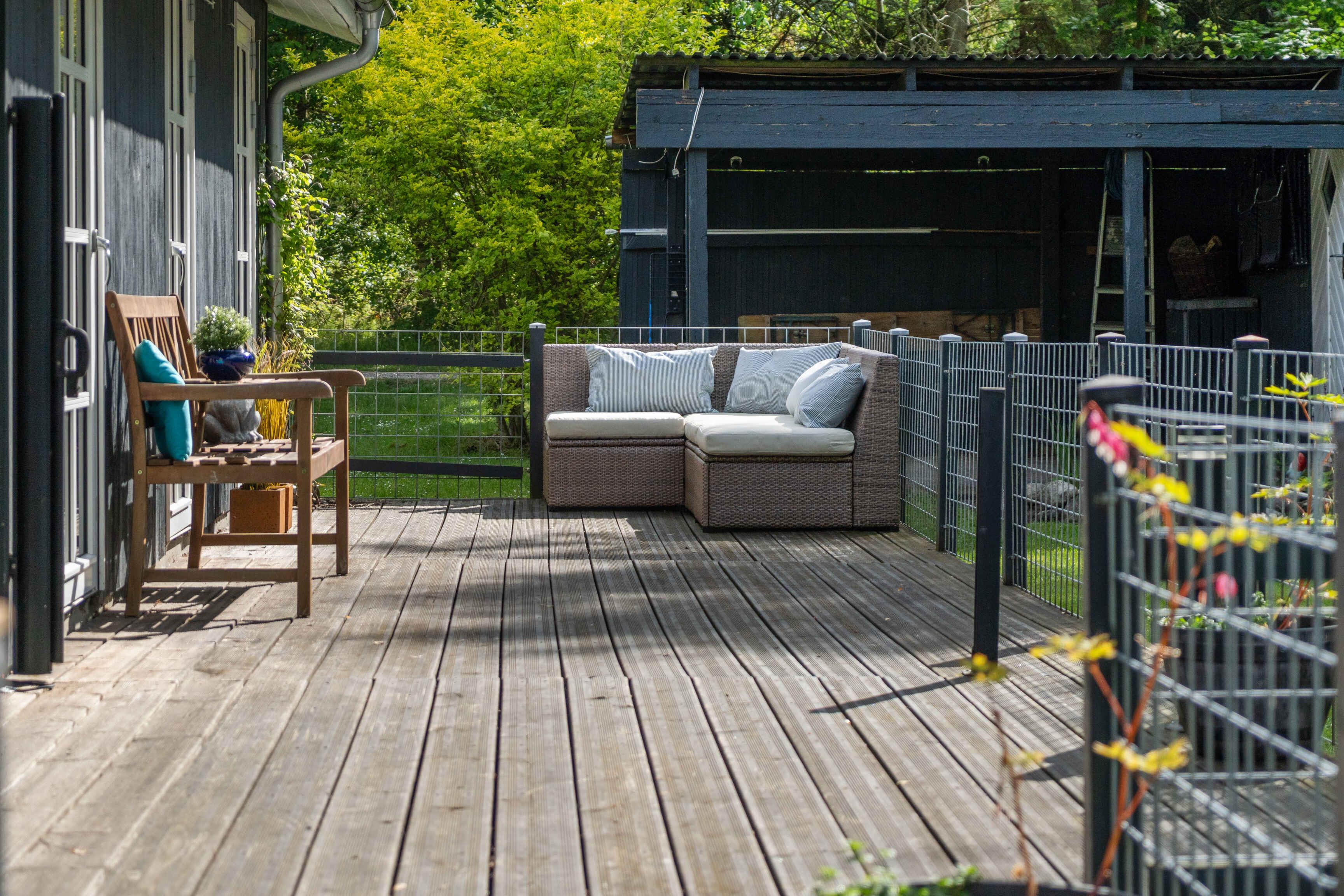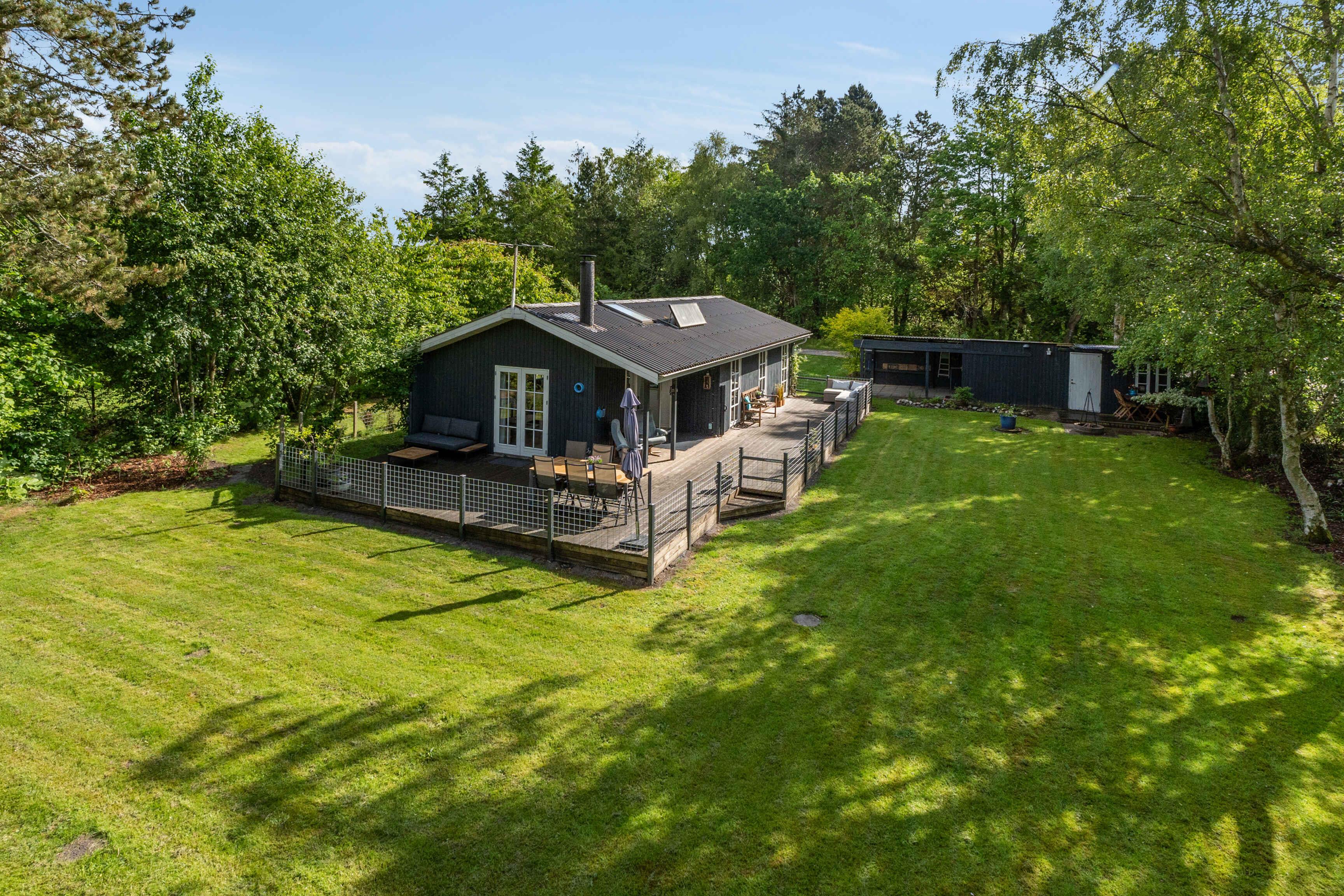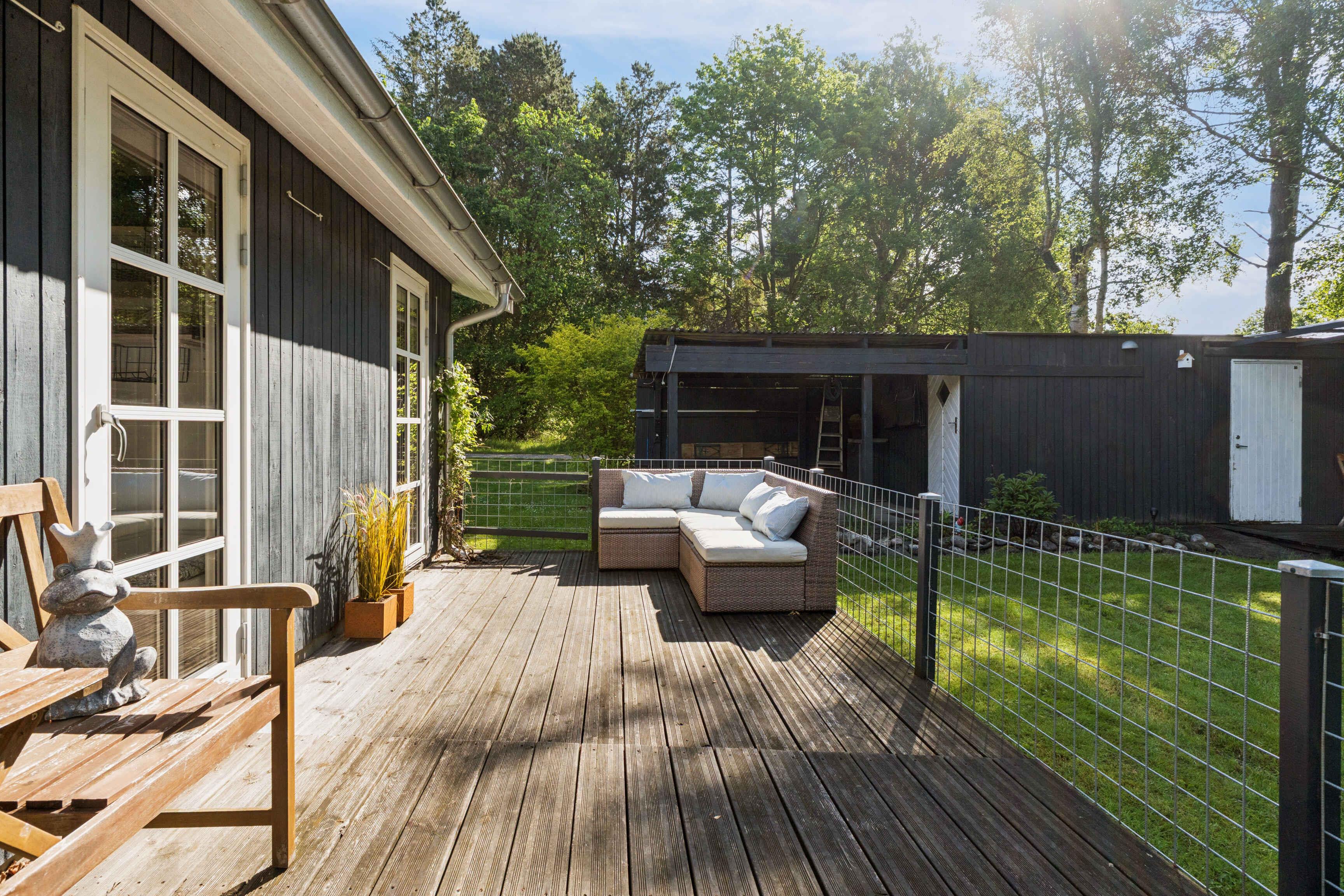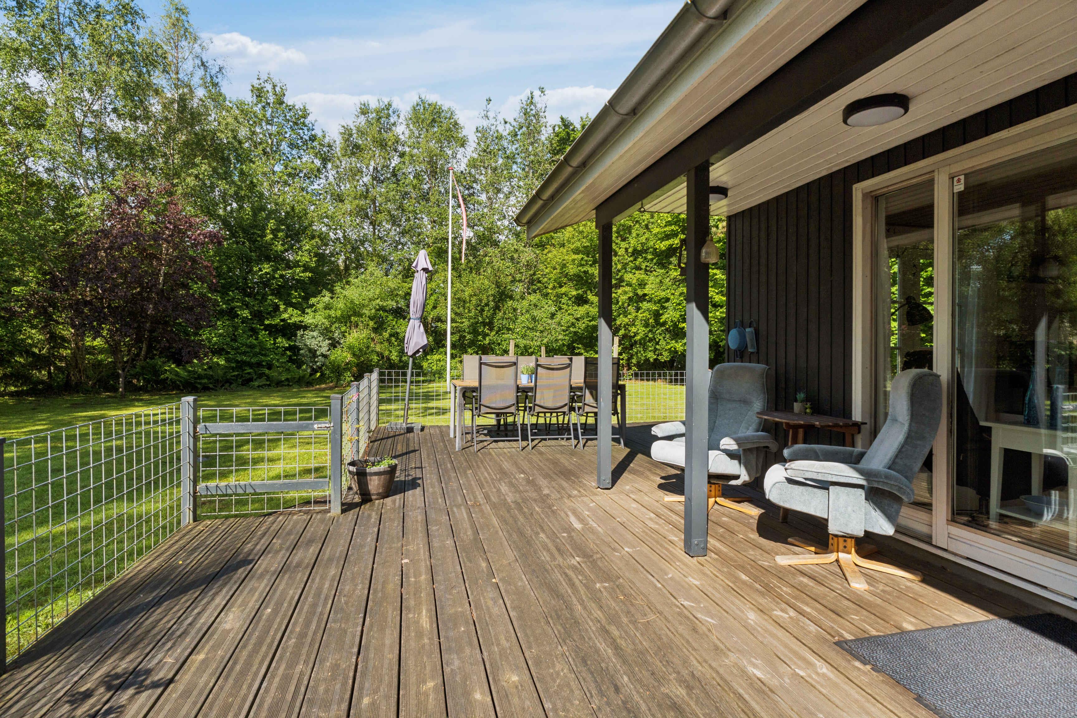 Hyggeligt sommerhus i Hadsund med ro, natur og indhegnet terrasse, perfekt til ferie med hund og nærhed til strand og skov.