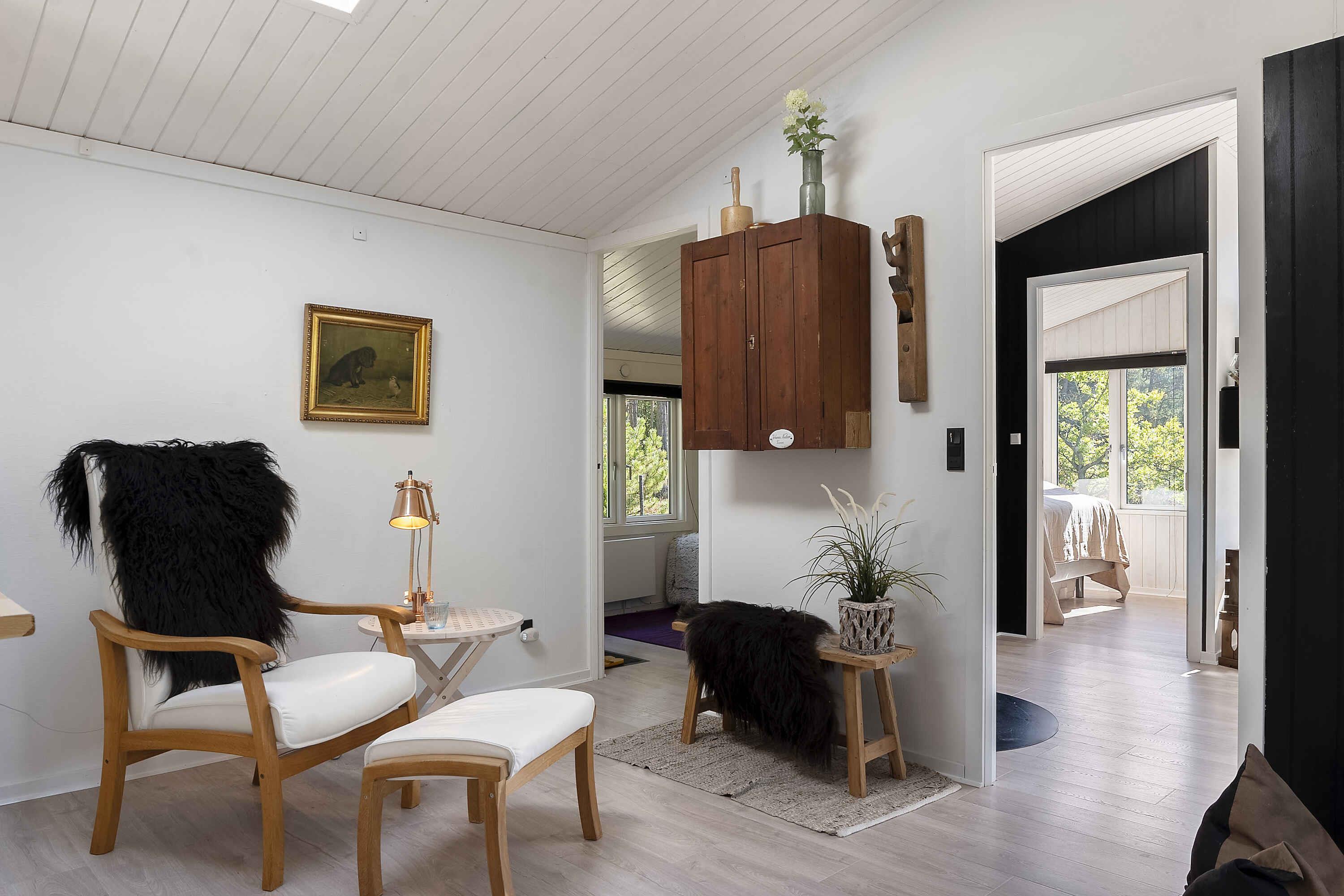 Dejligt sommerhus til 6 personer på kæmpe stor naturgrund (4300m2). Sæt dig i stuen eller på terrassen og slap af, imens du nyder udsigten over den store naturgrund, hvor lyngen blomstrer, fuglene synger og et rådyr eller en hare kigger forbi.