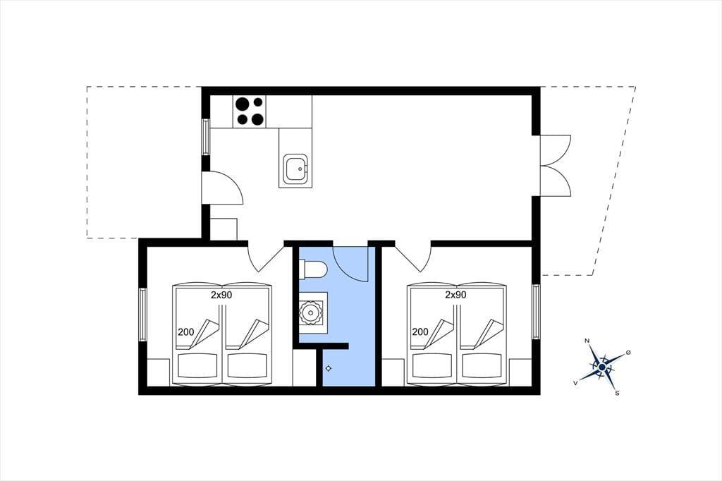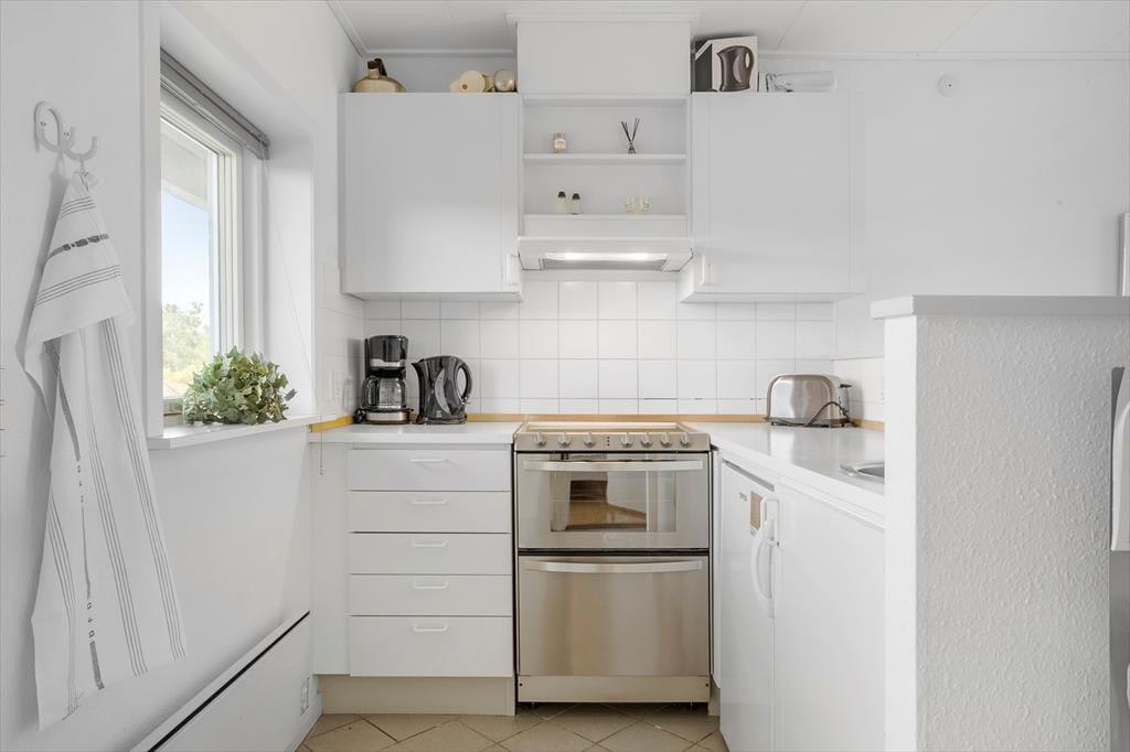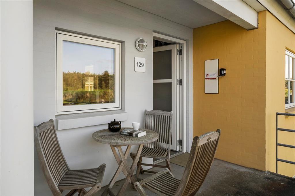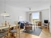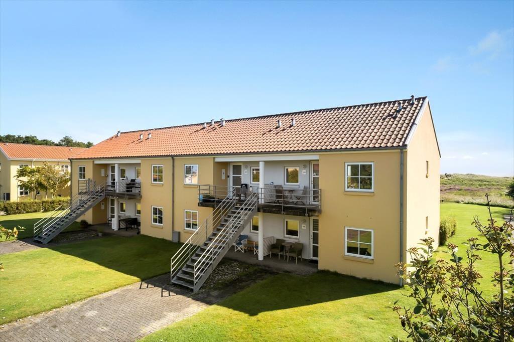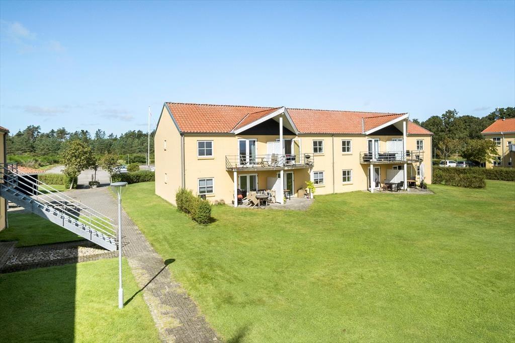 Inden døre i lejligheden er atmosfæren let og luftig. I opholdsrummet, som består af stue og køkken i åben forbindelse, er der gennemstrømmende lysindfald, og det nøje udvalgte møblement passer godt til den afslappede ferieboligatmosfære. Mod øst sørger den brede altandør for den uhindrede havudsigt, der som før nævnt også kan nydes fra det ene soveværelse. Udsigten fra lejlighedens andet soveværelse fejler bestemt heller ikke noget, for her kan I kigge ud på de skovklædte omgivelser. Planløsningen byder desuden også på et badeværelse, der ligesom resten af lejligheden fremstår pænt og velholdt.