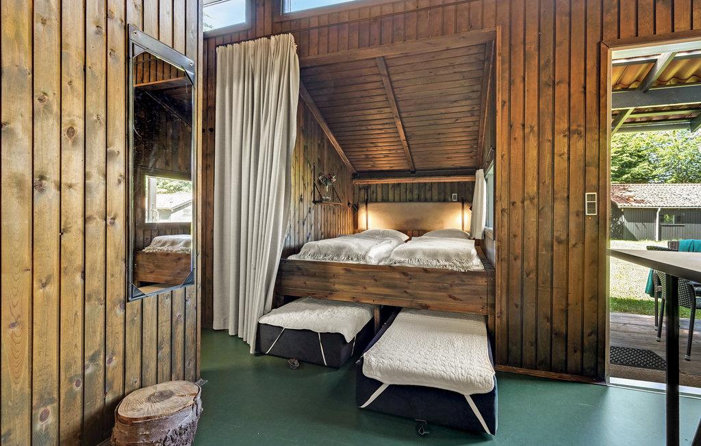 Tag familien med til dette enestående sommerhus, som er indrettet i flotte, gedigne materialer og hold en skøn ferie i naturskønne rammer. Huset ligger omgivet af skov og er tæt på en smuk badesø. Her kan I slappe af og nyde freden og roen med en lille familie eller vennegruppe. Huset består af et køkken med alle de nødvendige faciliteter samt sovepladser. På campingpladsen er der en lang række andre tilbud, som I kan få glæde af.