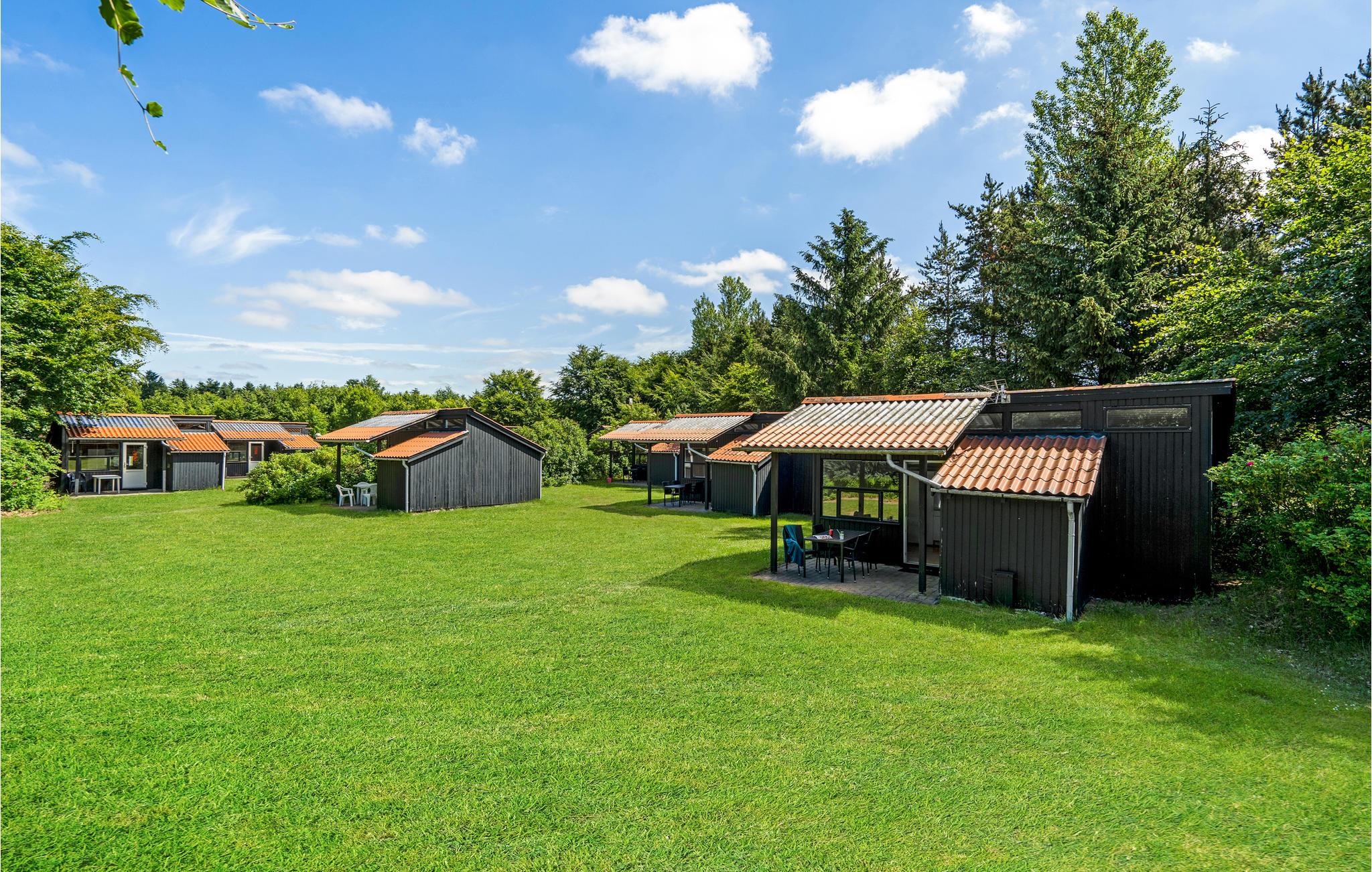 Den indbydende hytte giver jer en velindrettet base, hvor pladsen er godt udnyttet, så I kommer ikke til at mangle noget. Terrassen udvider jeres opholdsrum, så her kan I sætte jer med dagens måltider og tænde op i grillen på de lune sommerdage. Det kan være, at I falder i snak med gæsterne i nabohusene, når I krydser hinanden i fællesarealet, hvor der også er legeplads og vaskerum.