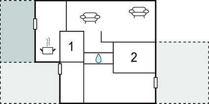 Opholdsstue/køkken - 2 Sovepladser. (Sofa, madras eller lignende).