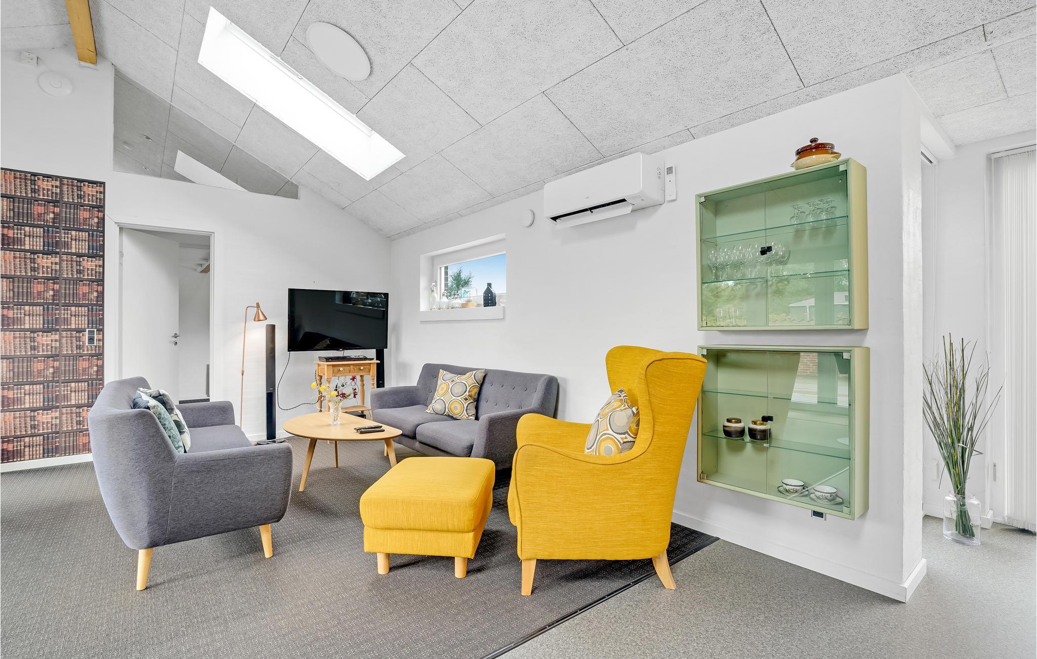Dette rummelige og moderne indrettede sommerhus nær fjorden byder op til ti gæster velkommen. Sommerhuset inviterer jer til at slappe af både inde og ude. Her finder I to fjernsyn med DVD-afspillere og et bordfodboldbord. I kan slappe af i de komfortable havemøbler på de delvist overdækkede terrasser, som også er oplagte steder at spise jeres morgenmad og senere afslutte dagen med et glas vin. En grill er til rådighed til hyggelige grillaftener. I kan slappe af i den skønne sauna i haven og derefter hoppe i det opvarmede finske vildmarksbad. Der er masser af plads til at lege i den store have.