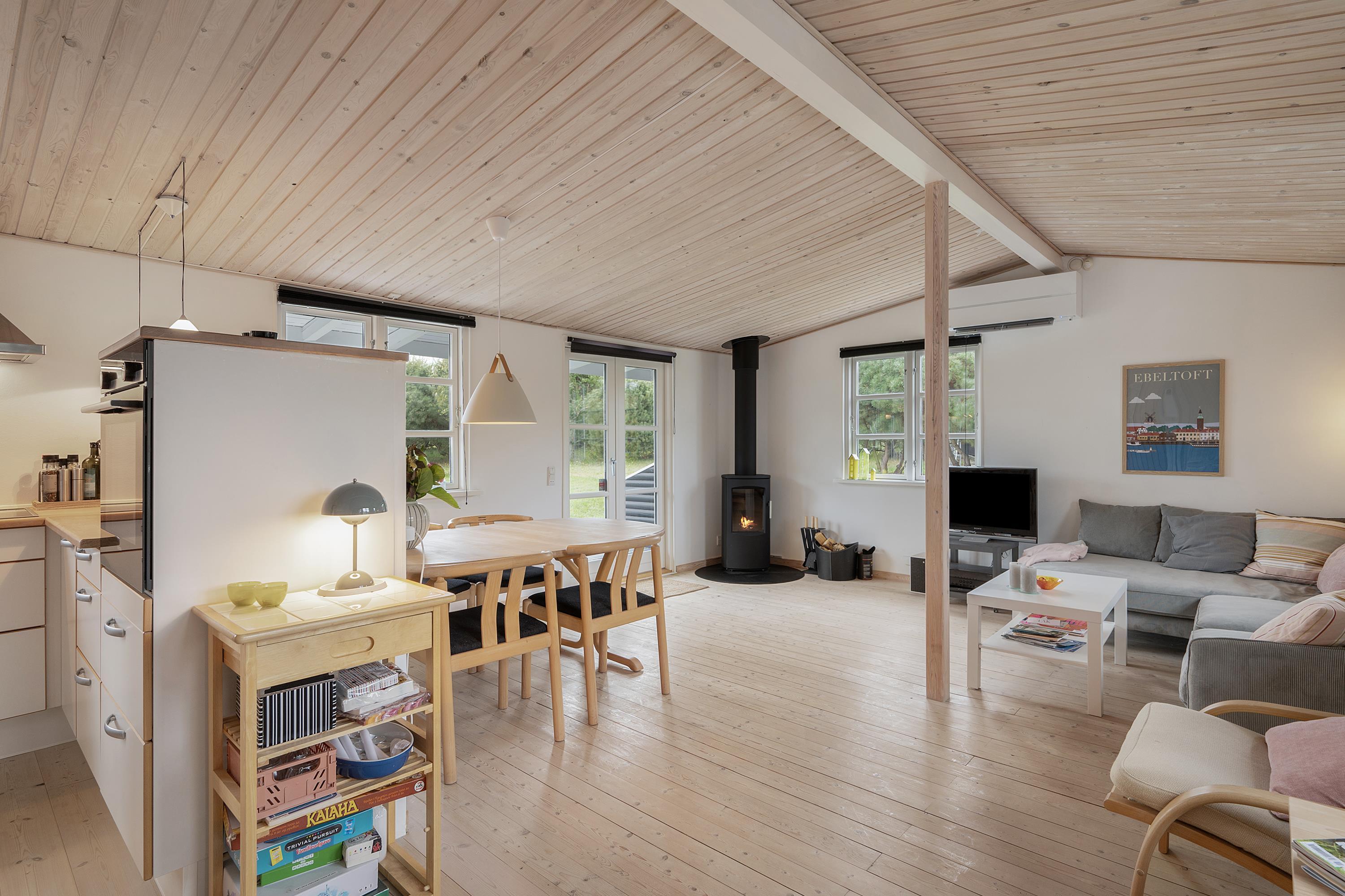 Tæt på Ebeltoft finder man dette særdeles hyggelige, velholdte og nyrenoverede hus. Huset indeholder en flot lys stue, møbleret med lækre og gode møbler, brændeovn og varmepumpe. I forbindelse med stuen finder man den skønne køkkenafdeling med b.la. opvaskemaskine og stort køle/-fryseskab. Skønt badeværelse med bruseniche og gulvvarme. Husets sengepladser finder man i to gode værelser med dobbeltsenge samt et hyggeligt anneks med en dobbeltseng. Tv foregår via chromecast.