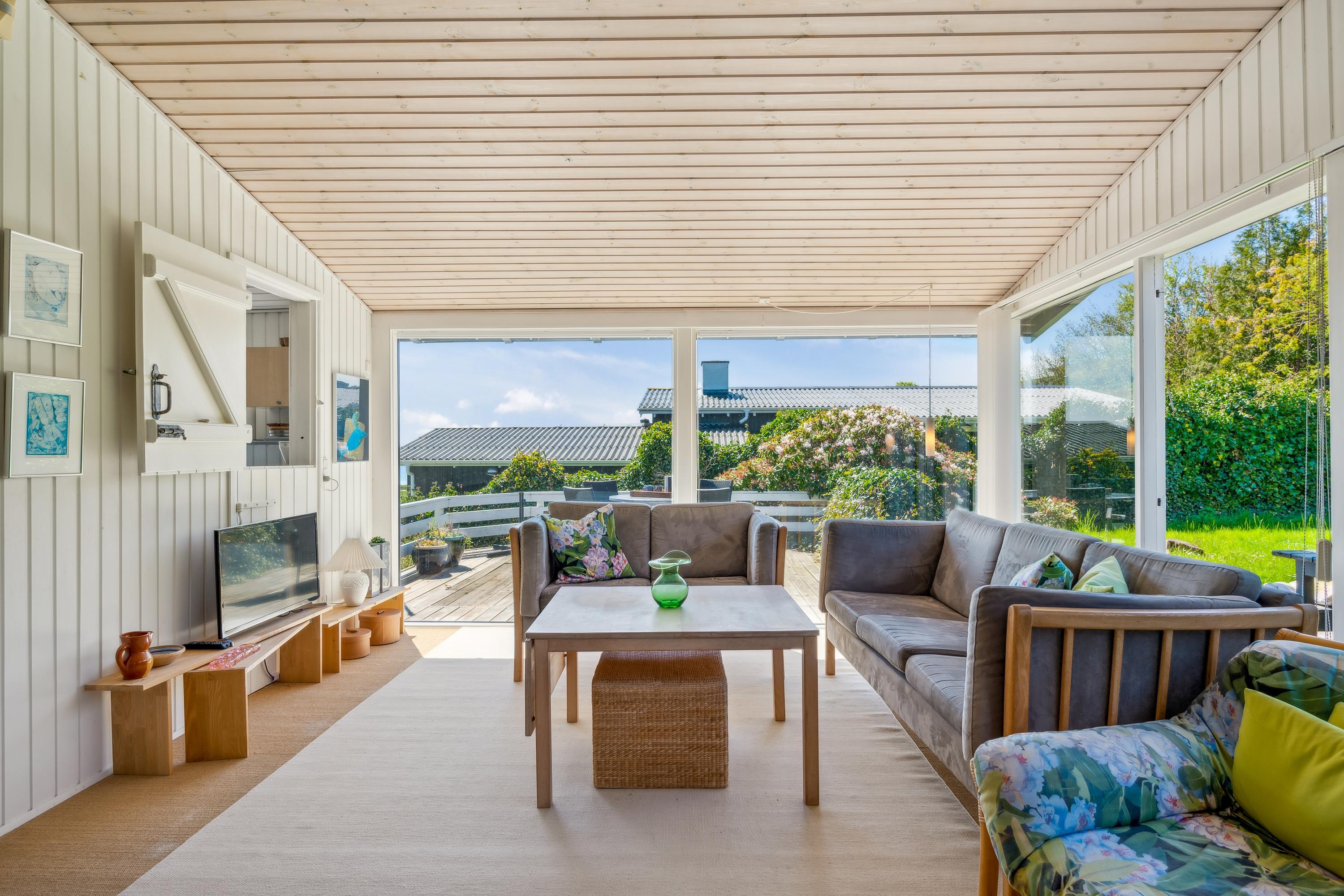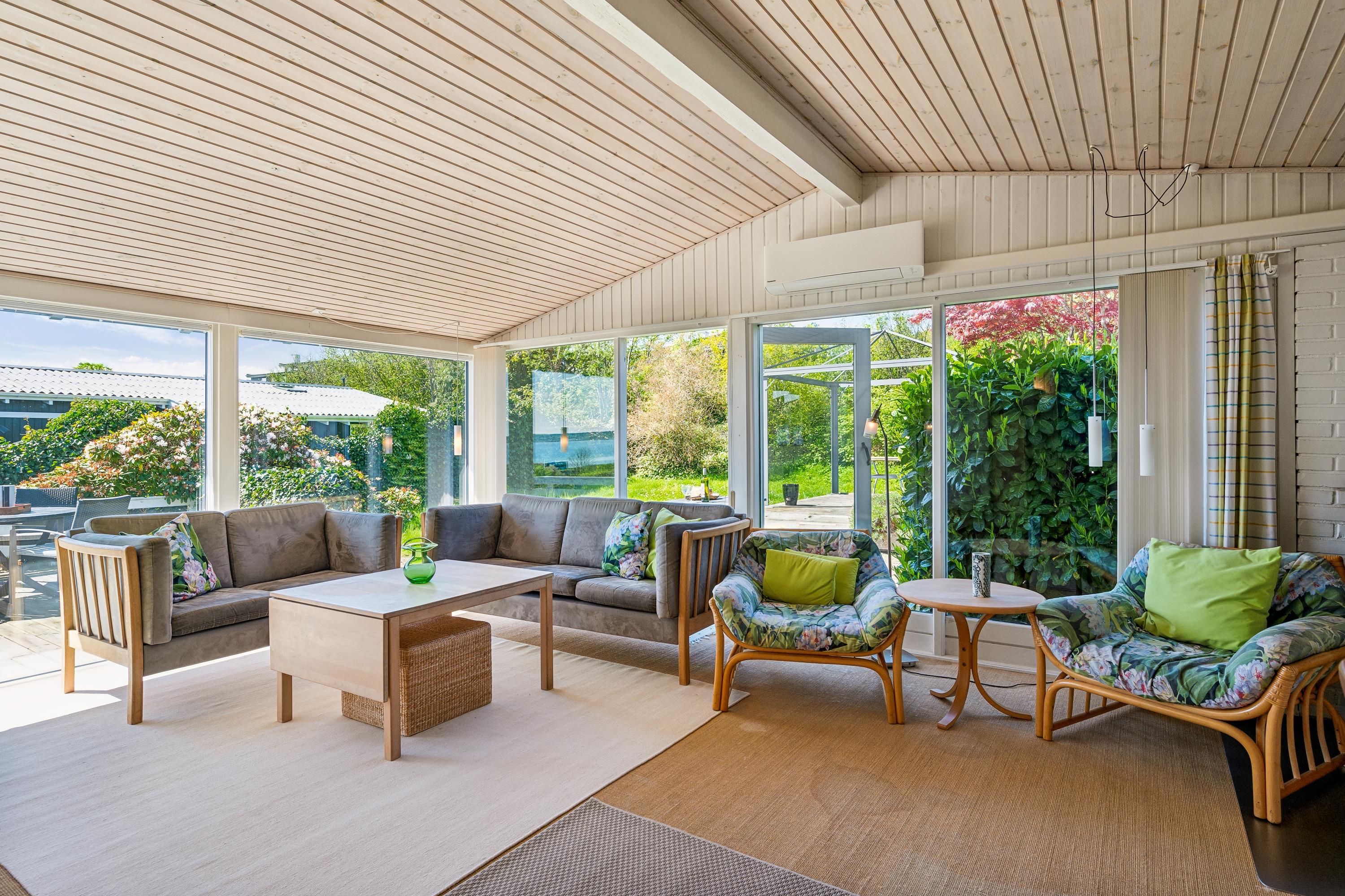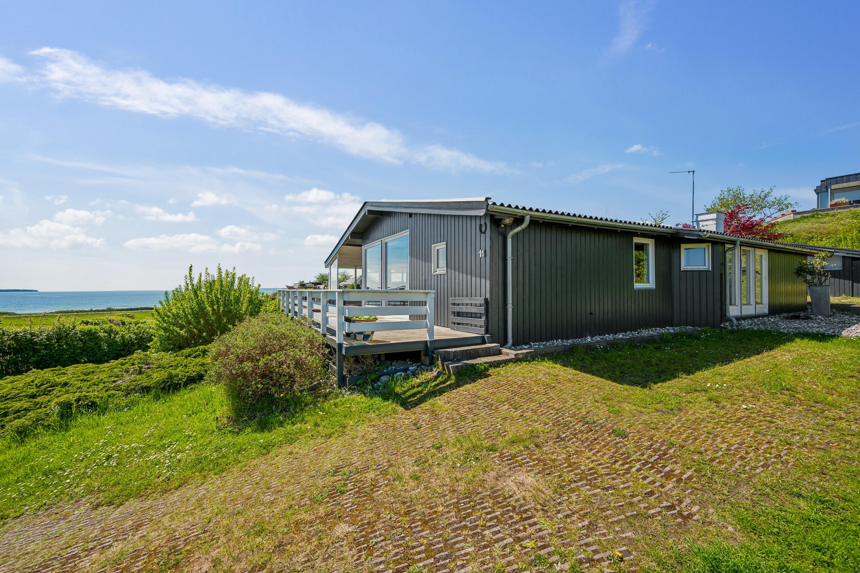 Med den mest fantastiske beliggenhed finder man dette skønne feriehus, som er højtbeliggende på en skrående grund. Såvel fra grunden som fra huset har man en storslået udsigt over vandet. Her finder man en skøn stue, hyggeligt møbleret med gode møbler, brændeovn og varmepumpe samt udgang til en af husets terrasser med havemøbler. Dejligt køkken med b.la. opvaskemaskine. Husets sovepladser finder man i tre gode værelser, heraf et værelse med en dobbeltseng, et værelse med en køjeseng og et værelse med to enkelt senge. To dejlige badeværelser, begge med bruseniche. Desuden er der et lille bryggers med vask og vaskemaskine. Hyggelig integreret havestue med spiseplads og hvorfra der er udgang til overdækket terrasse. Til de små feriegæster er der en høj barnestol, en barneseng og et babybadekar. Der chromecast samt stor Boxer tv pakke med tyske og nordiske kanaler. Ved huset er der flere dejlige terrassearealer med gode havemøbler og gasgrill.