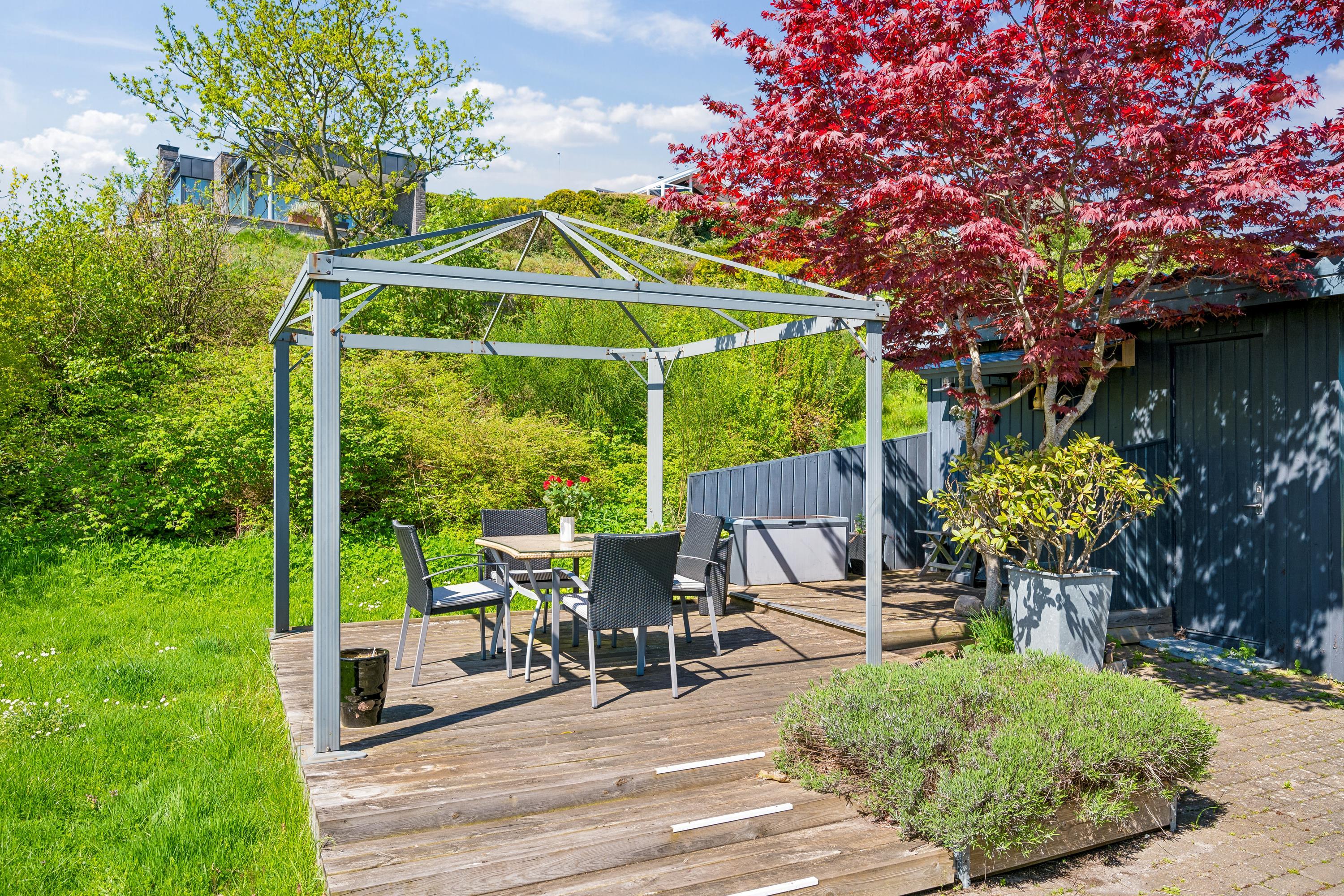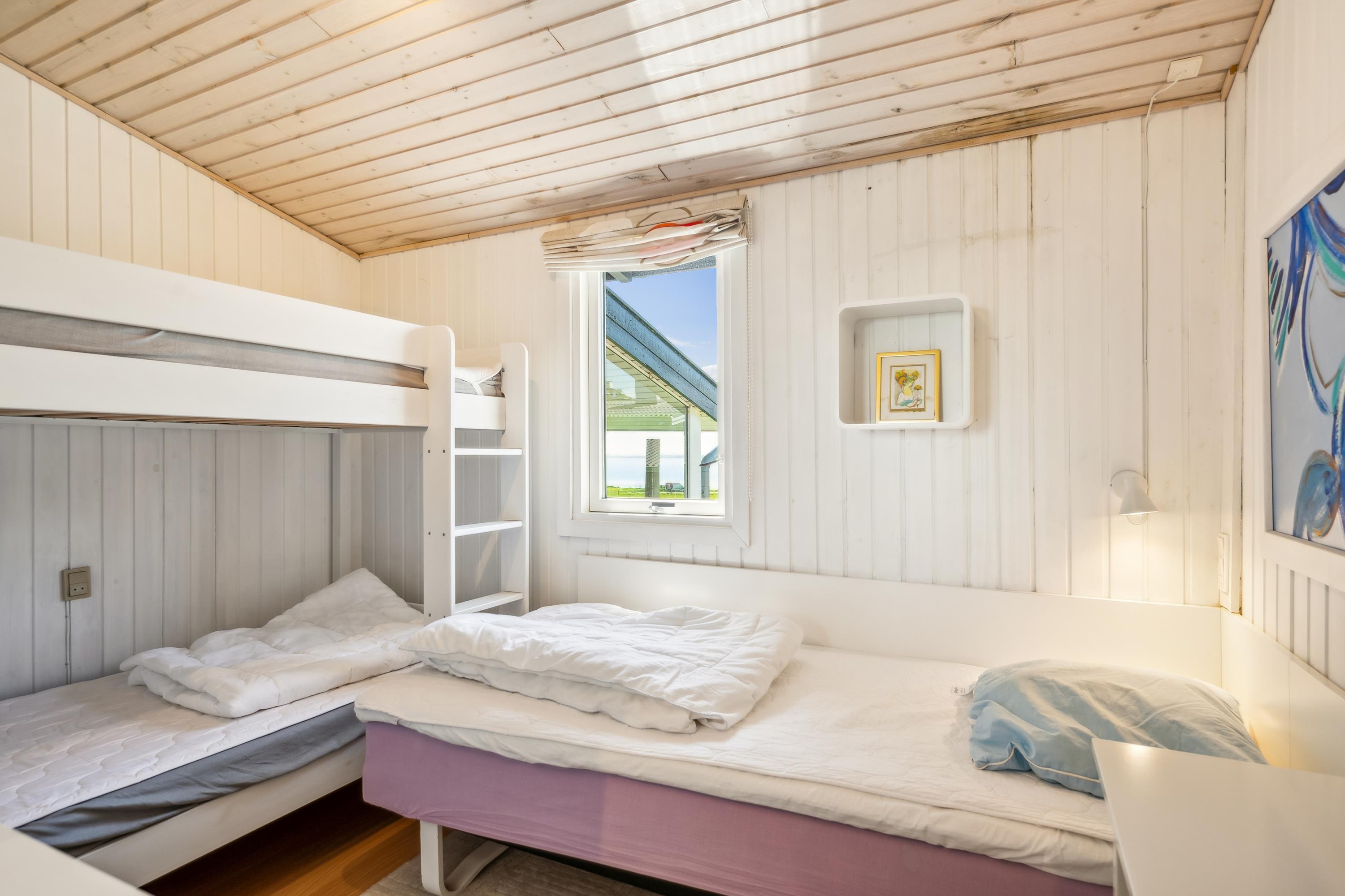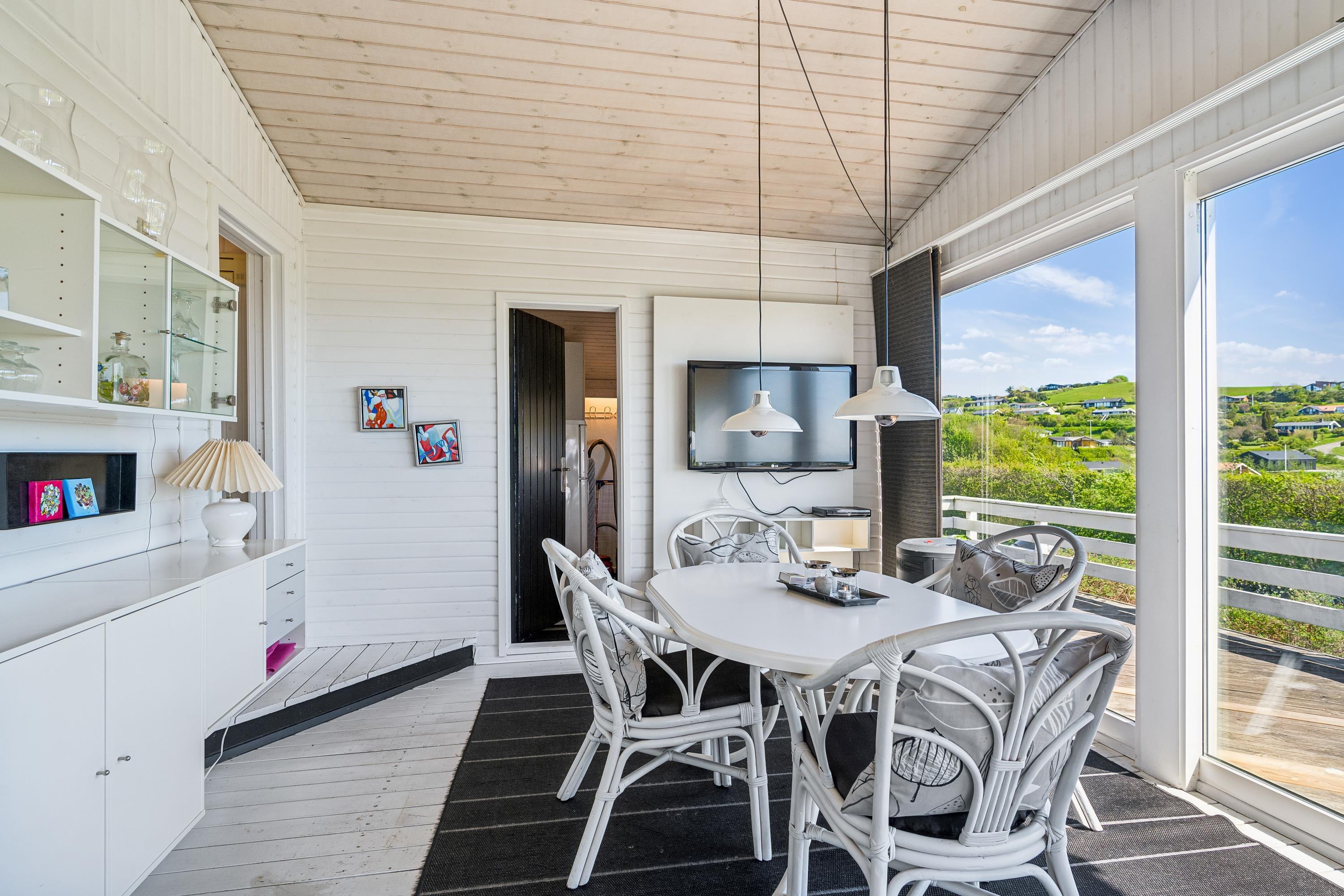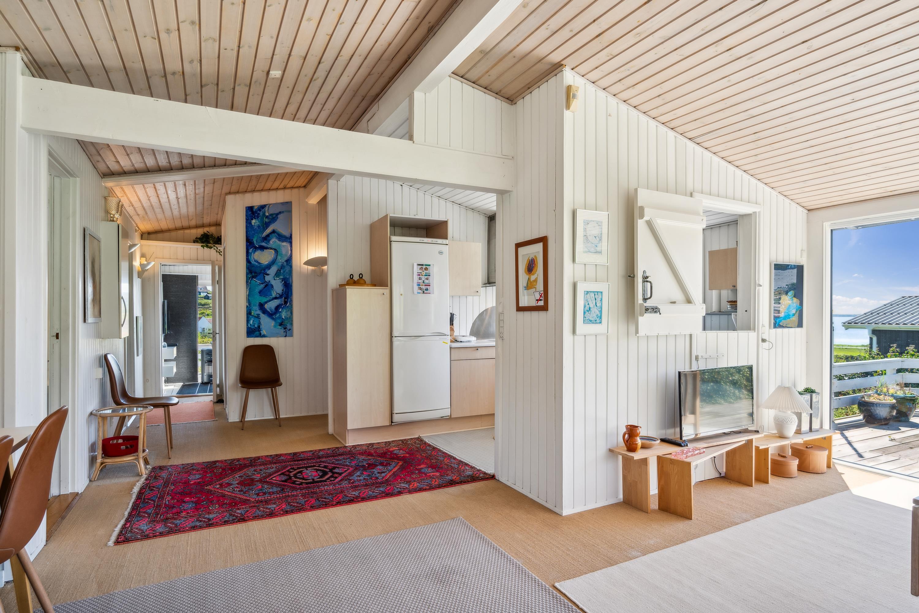 Med den mest fantastiske beliggenhed finder man dette skønne feriehus, som er højtbeliggende på en skrående grund. Såvel fra grunden som fra huset har man en storslået udsigt over vandet. Her finder man en skøn stue, hyggeligt møbleret med gode møbler, brændeovn og varmepumpe samt udgang til en af husets terrasser med havemøbler. Dejligt køkken med b.la. opvaskemaskine. Husets sovepladser finder man i tre gode værelser, heraf et værelse med en dobbeltseng, et værelse med en køjeseng og et værelse med to enkelt senge. To dejlige badeværelser, begge med bruseniche. Desuden er der et lille bryggers med vask og vaskemaskine. Hyggelig integreret havestue med spiseplads og hvorfra der er udgang til overdækket terrasse. Til de små feriegæster er der en høj barnestol, en barneseng og et babybadekar. Der chromecast samt stor Boxer tv pakke med tyske og nordiske kanaler. Ved huset er der flere dejlige terrassearealer med gode havemøbler og gasgrill.