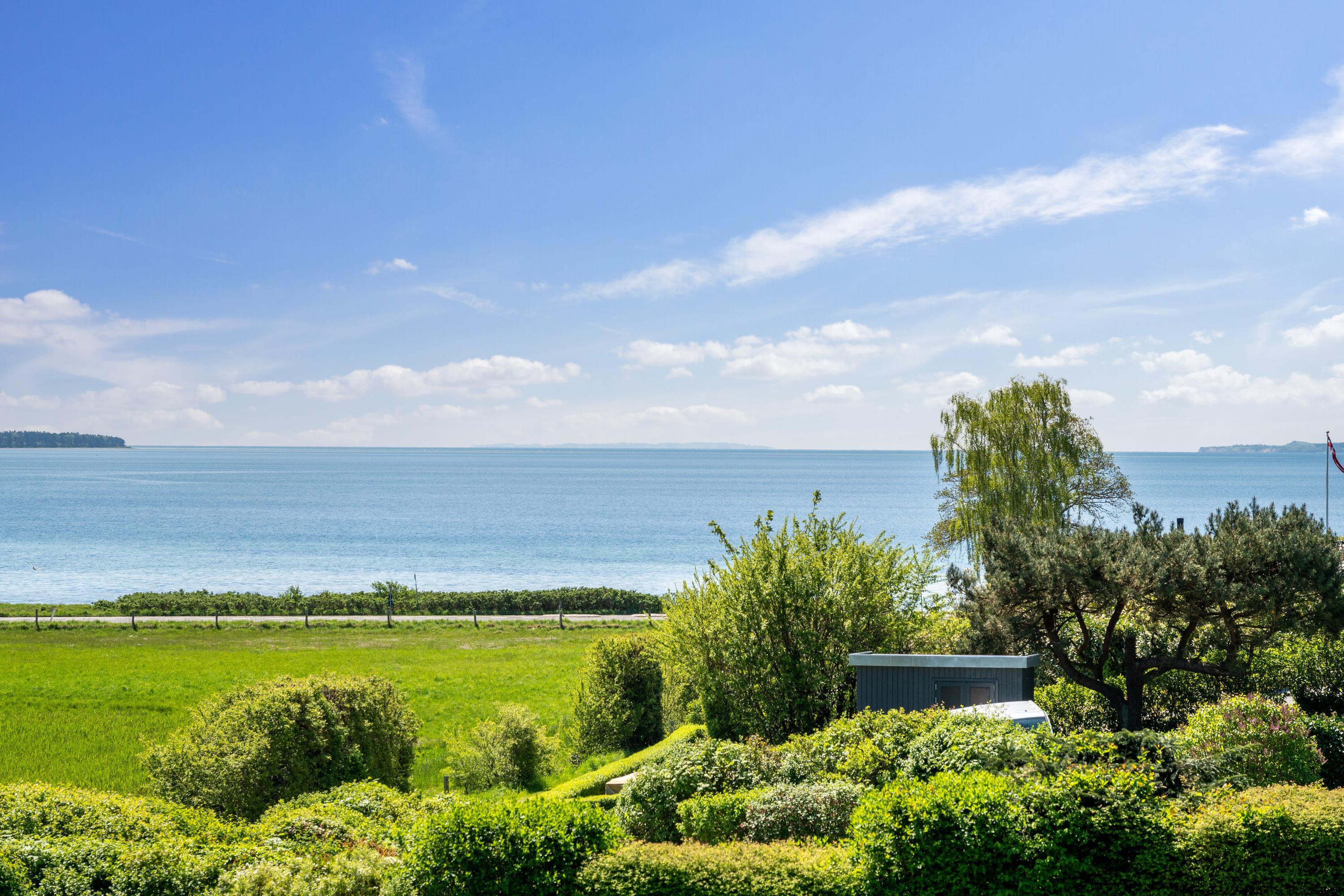 Nyd et højtbeliggende feriehus med fantastisk udsigt over vandet ved Handrup Strand og tæt på Mols Bjerge.