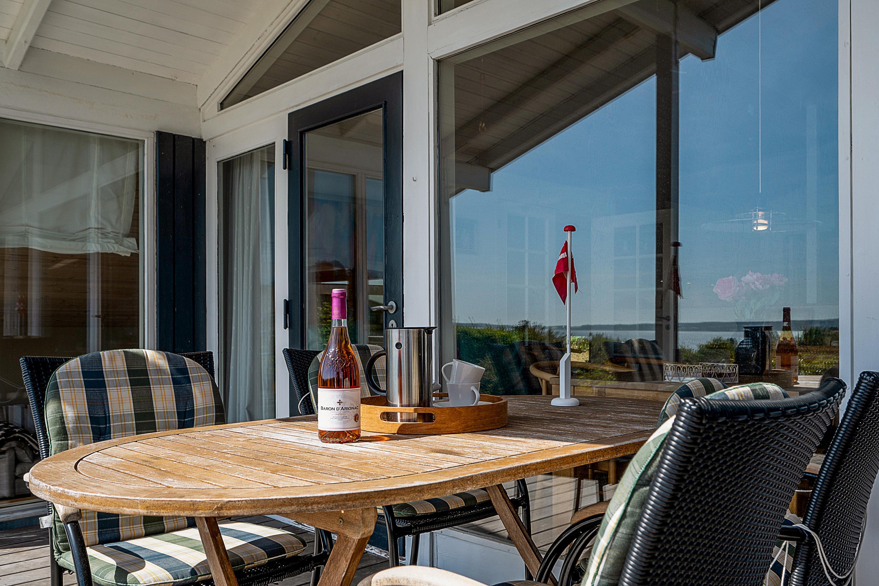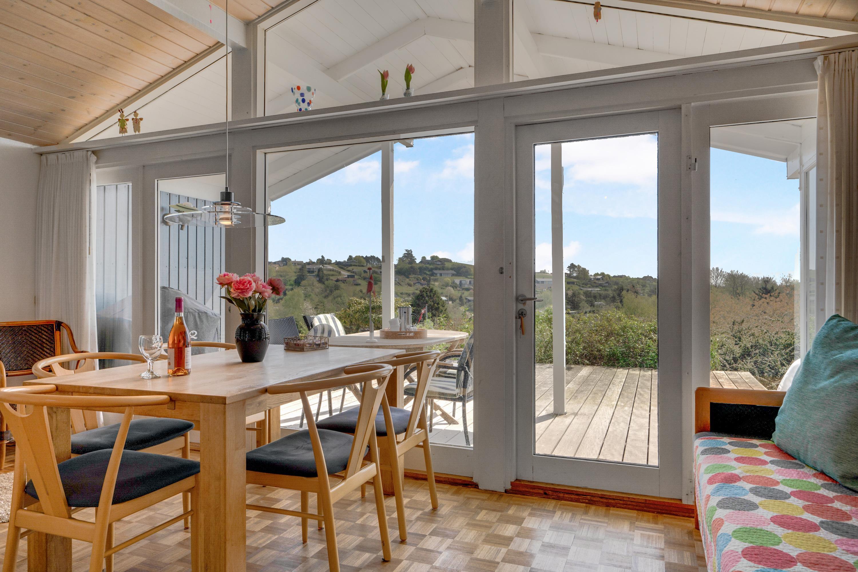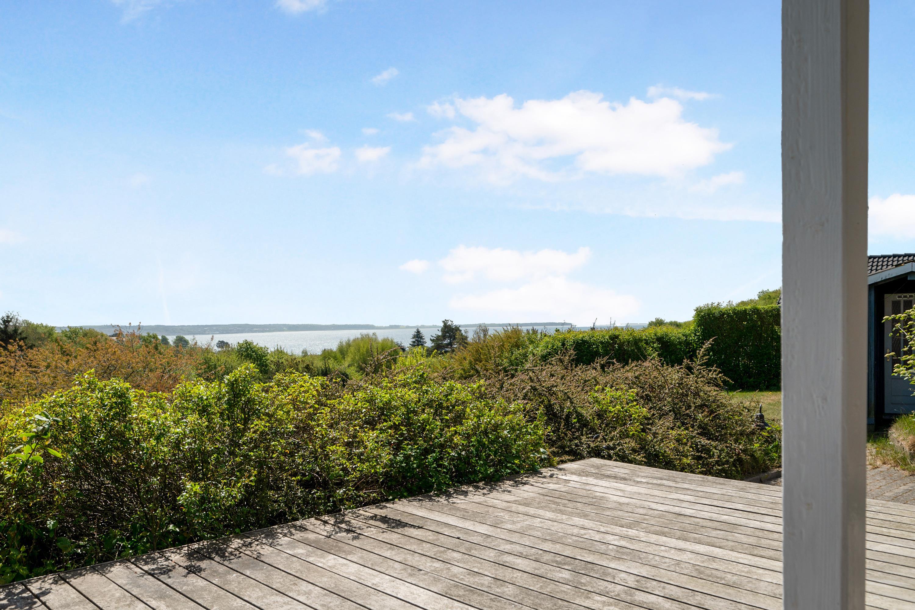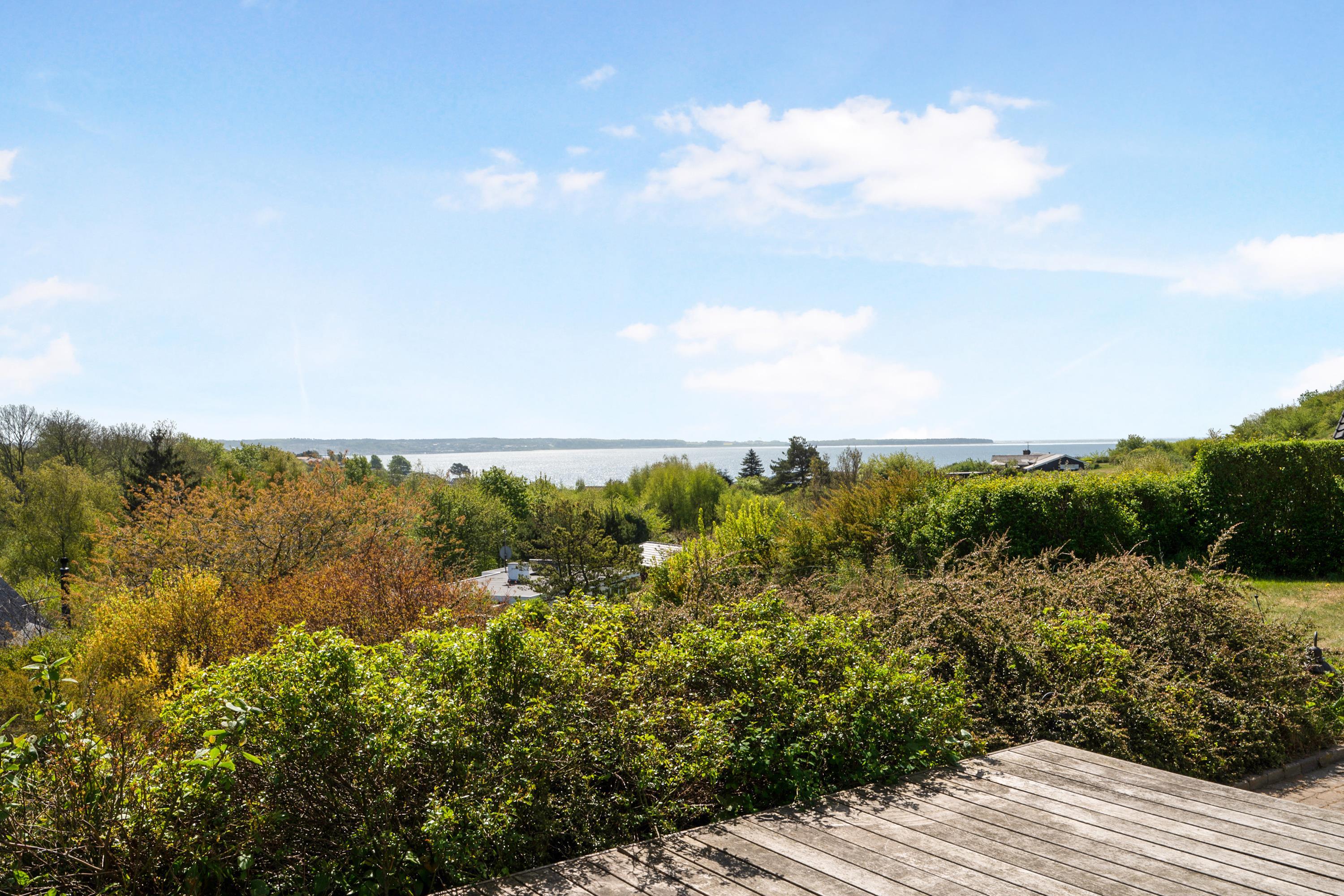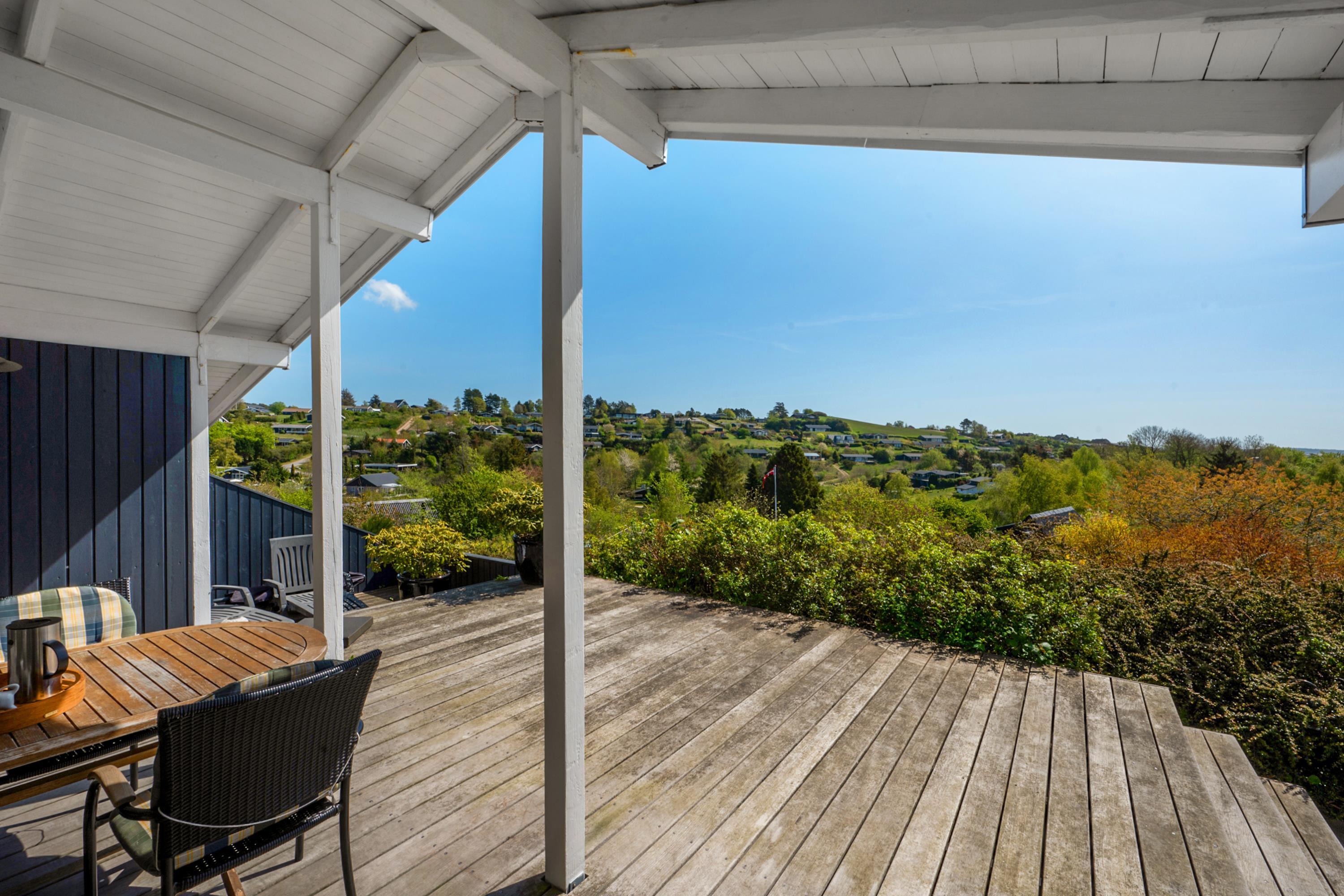 Hyggeligt sommerhus med fantastisk udsigt over Ebeltoft Vig og dejlige terrasser til afslapning.
