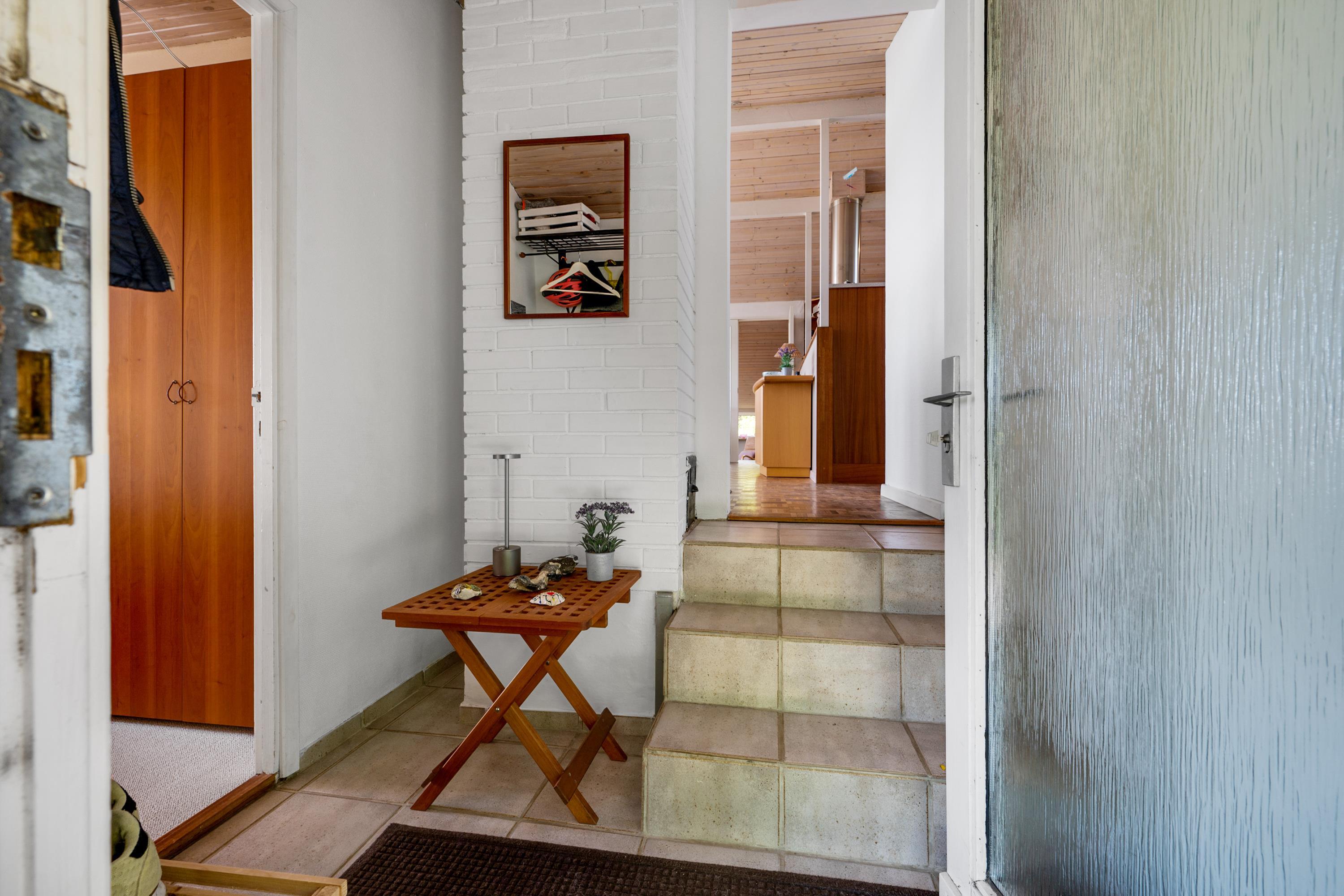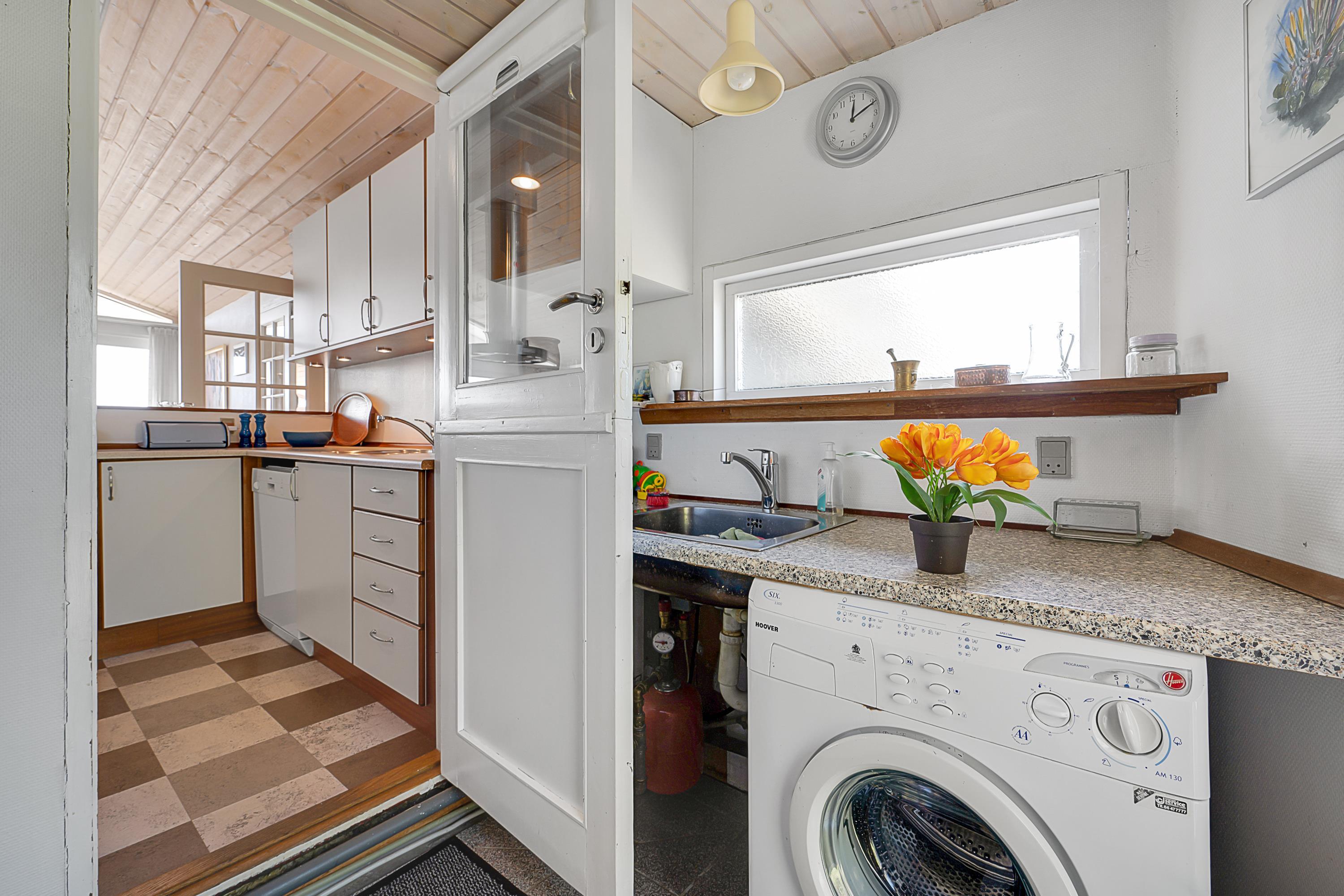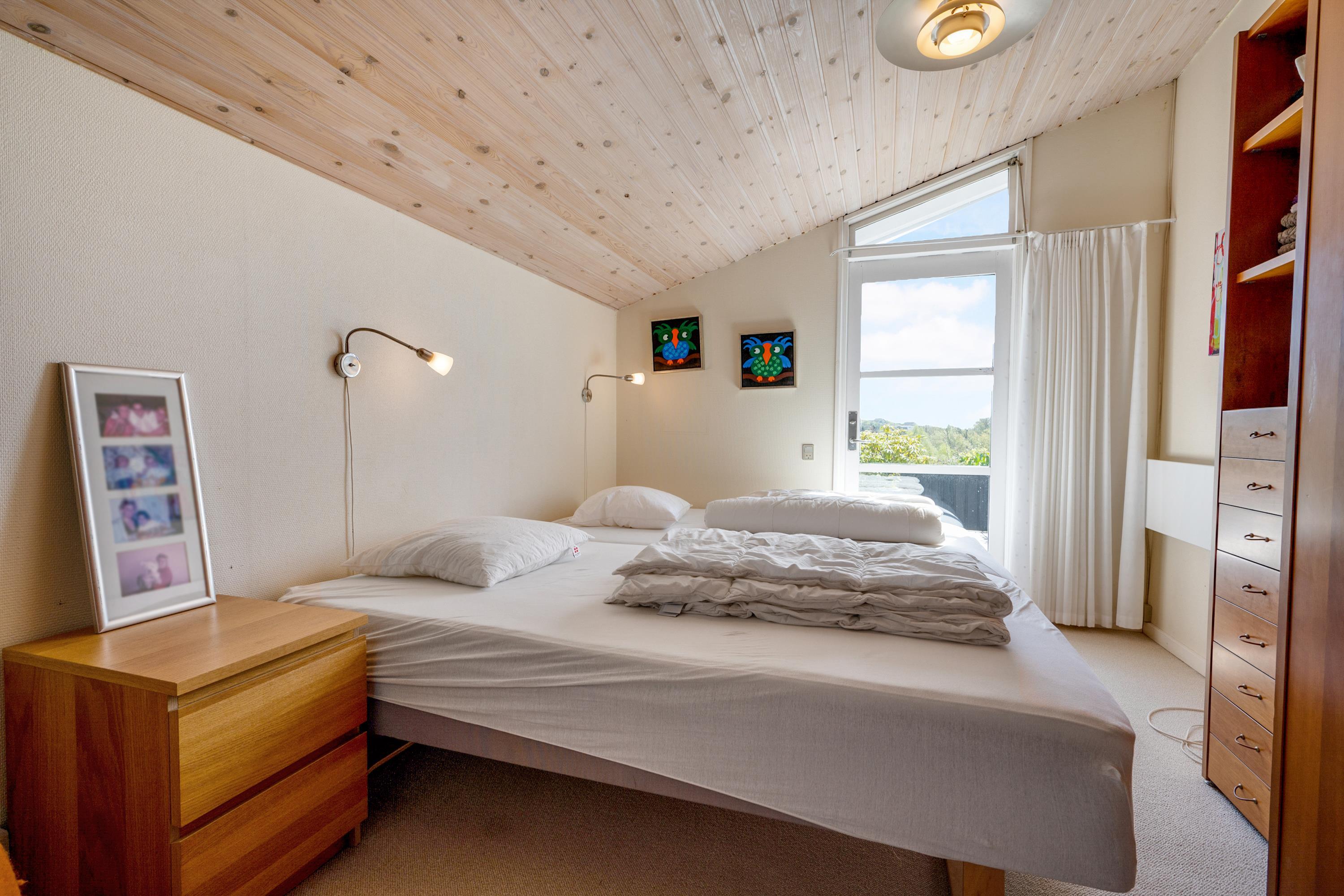 Fra entréen kommer man ind i stor, lys opholdsstue/alrum med lofter til kip ligesom i resten af huset og med udgang til terrasse, spiseplads til 7 personer og brændeovn. Det veludstyrede, dejlige køkken med god arbejdsplads ligger i åben forbindelse med alrum og har keramiske kogeplader, indbygningsovn, køle-/fryseskab, opvaskemaskine samt mikrobølgeovn. En lille trappe fører fra alrummet ned til opholdsstuen, som også har udgang til terrasse samt sofamøblement og fladskærms-TV med chromecaster – bemærk, at der ingen kanaler er tilkoblet, alt indhold skal streames fra PC eller andet medie. Lækkert og rummeligt badeværelse med gulvvarme, bruseniche og skabsarrangement, og i bryggerset er der desuden vaskemaskine, strygebrædt og strygejern. De 7 sovepladser fordeler sig på 2 lyse og gode soveværelser med dobbeltseng, 1 dobbelt sovesofa i alrummet samt 1 enkeltseng i et hjørne af opholdsstuen. Internetadgang.