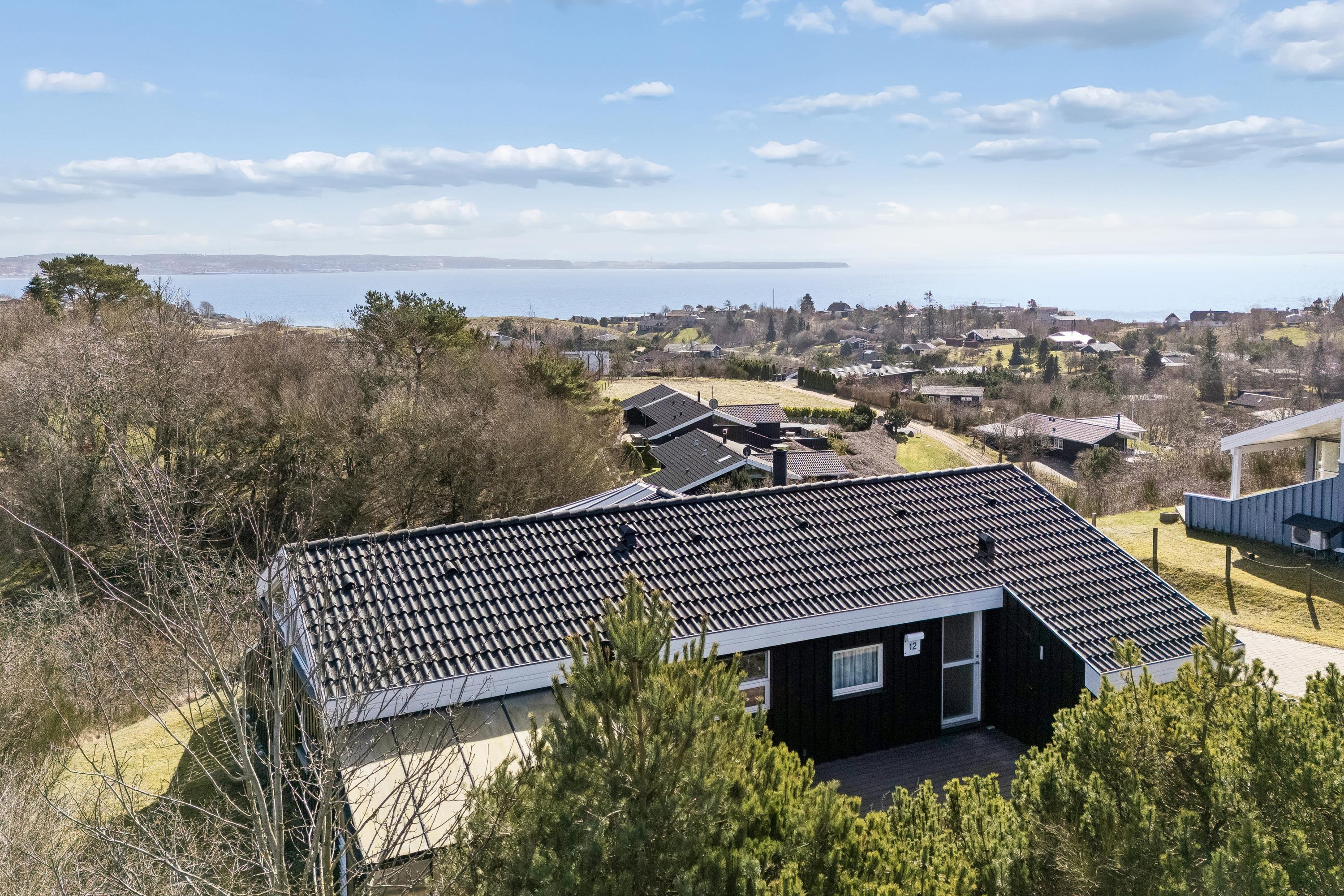 Blot 10 minutters kørsel fra Ebeltoft finder man dette hyggelige feriehus med fantastisk udsigt over Ebeltoft Vig. Huset ligger på en skrående grund og er bygget i forskudt plan, hvilket giver en åben og rummelig indretning.