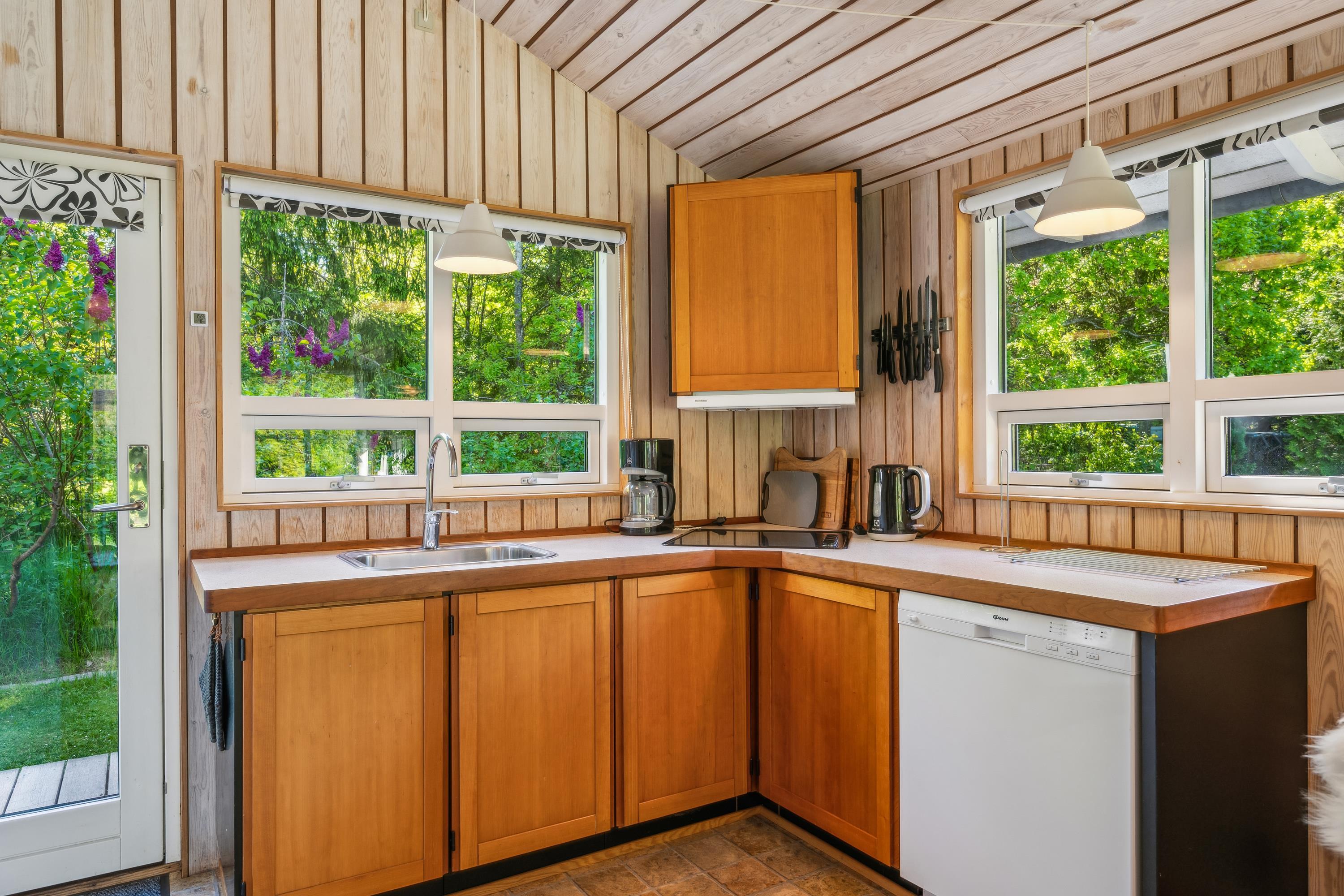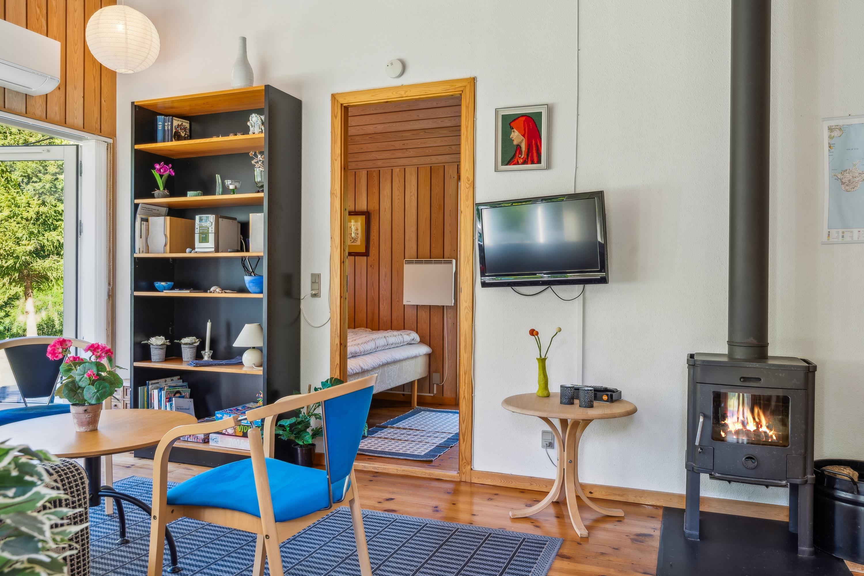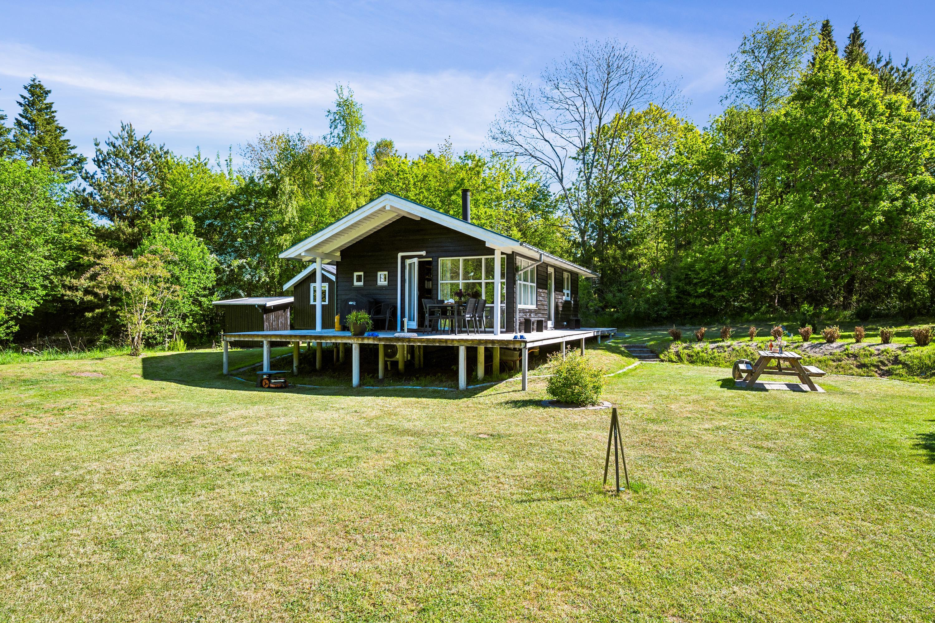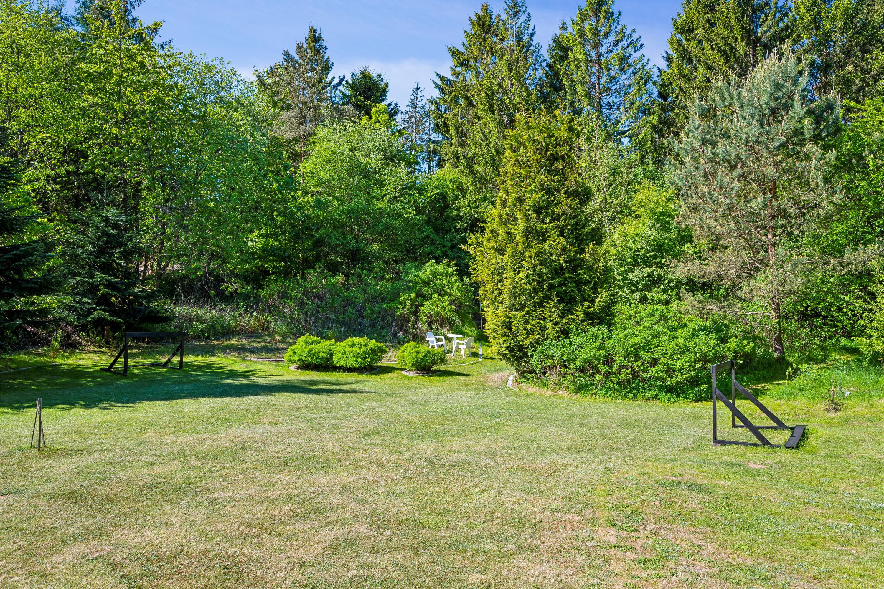 Hyggeligt sommerhus i Handrup Bakker med naturgrund, terrasse, brændeovn og moderne faciliteter.