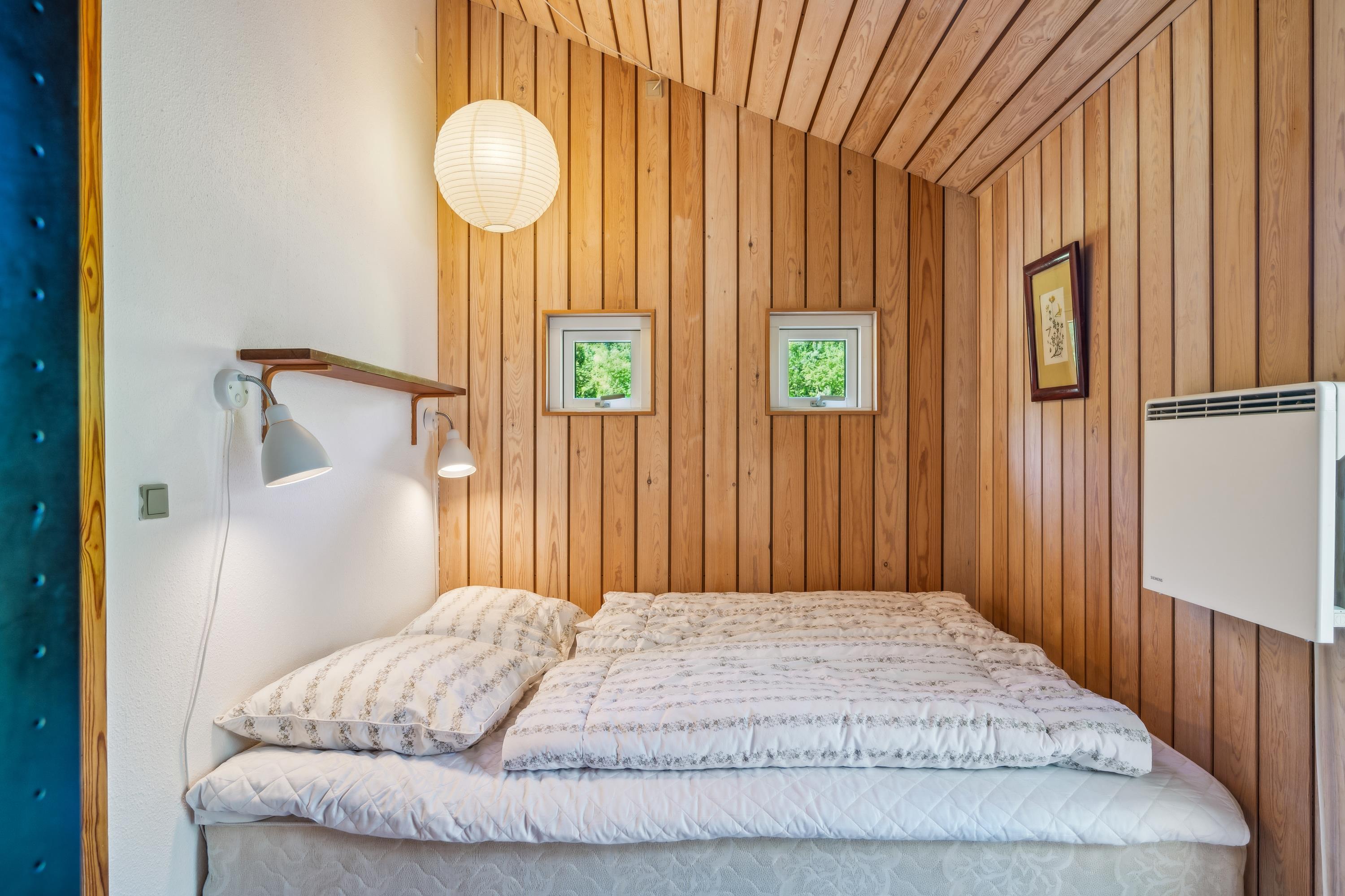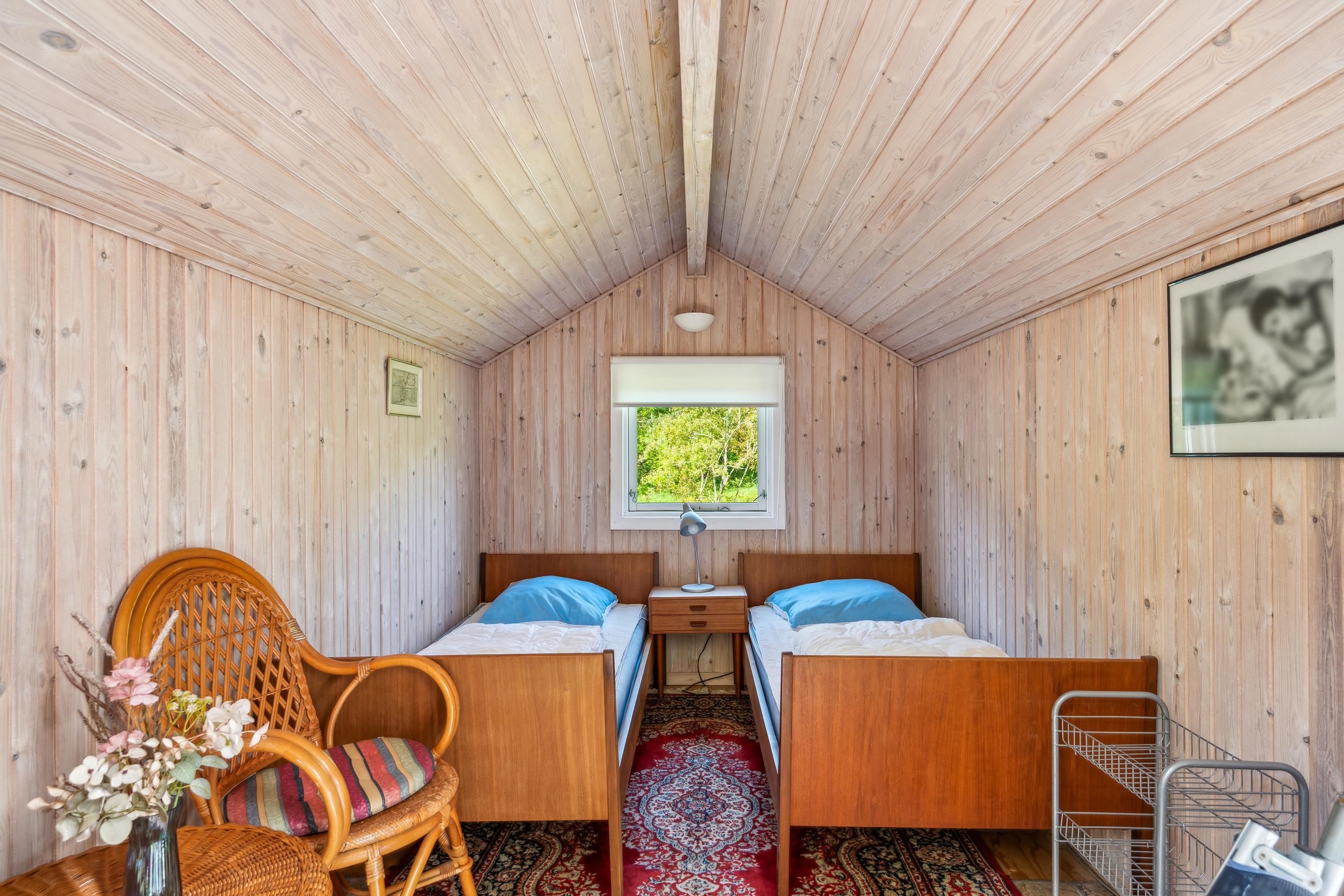Virkelig skønt, velholdt og hyggeligt sommerhus beliggende på en kuperet, ugeneret, stor og flot naturgrund i Handrup Bakker. Gode terrasseforhold med havemøbler og grill. Indvendigt fremstår huset lyst og venligt med store vinduespartier. Hyggelig opholdsstue med brændeovn, TV, DVD, stereoanlæg med CD-afspiller samt udgang til terrasse. Åbent køkken i forbindelse med dejlig spiseafdeling med keramisk kogeplade, køleskab med fryser, kombi-/mikroovn og opvaskemaskine. Lille badeværelse med adgang fra stuen og soveværelset, vaskemaskine. Husets sovepladser fordeler sig på 2 gode soveværelser: 1 med dobbeltseng, 1 med 2 køjeseng. I annekset findes 2 sovepladser (enkeltsenge) mere. En fin bålplads og stor græsplæne indbyder til udendørsaktiviteter.